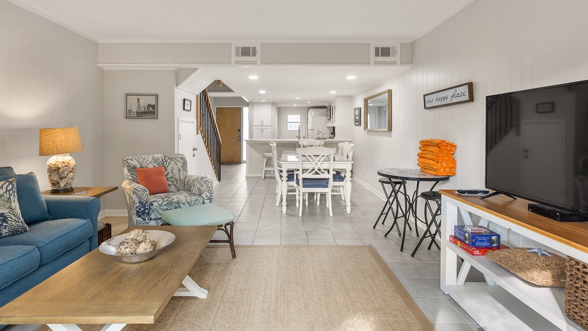 The property was very clean and updated. The washer and dryer were new and worked very well! The kitchen was stocked with all the necessities. There was even a starter pack of laundry detergent, dishwasher detergent, dish soap, hand soap, paper towels and toilet paper. The check-in process was easy and we had no issues at all. The hosts contacted us via text weeks before our arrival to confirm our information. They also texted us with the option of early check-in. We received a text once housekeeping was finished indicating that we were able to check-in early. The app used was a great reference for the property information and we used it frequently prior to and during the arrival process. We would stay here again. However, there were a few things that should be noted. The air-conditioning vents upstairs should be evaluated and the routing of the air changed. We had to move few pieces of furniture to improve the airflow. The air-conditioning does work very well though especially during the summer! Another issue is that the pool is very small for the amount of units in the area. It was always packed with people to the point that we couldn't go. We spent most of our time at the beach (a very close walk!) so this wasn't a big issue but our children wanted to play in the pool and there wasn't much space for them. We highly recommend Host2Coast management and this property for your stay. I have no doubt that if we had any issues the management team would have been able to assist us.Angela F - Posted: