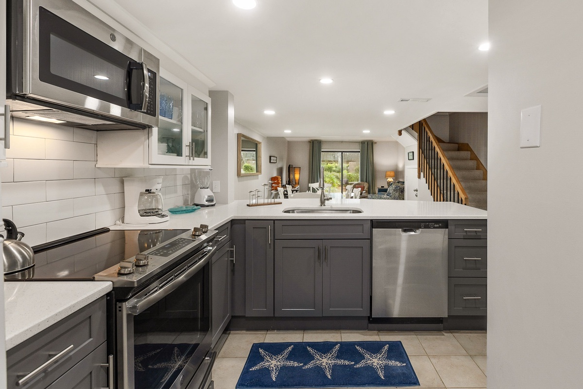 Arouse your inner chef while preparing mouthwatering delights in the fully appointed kitchen. Serve your guests in the dining room. Butter the popcorn and have family movie night in the living area. Pack a picnic basket with goodies to enjoy an evening on the beach, watching the sky darken and the brilliant stars pop out. Bring the steaks for a cook-out on the gas grill outside!