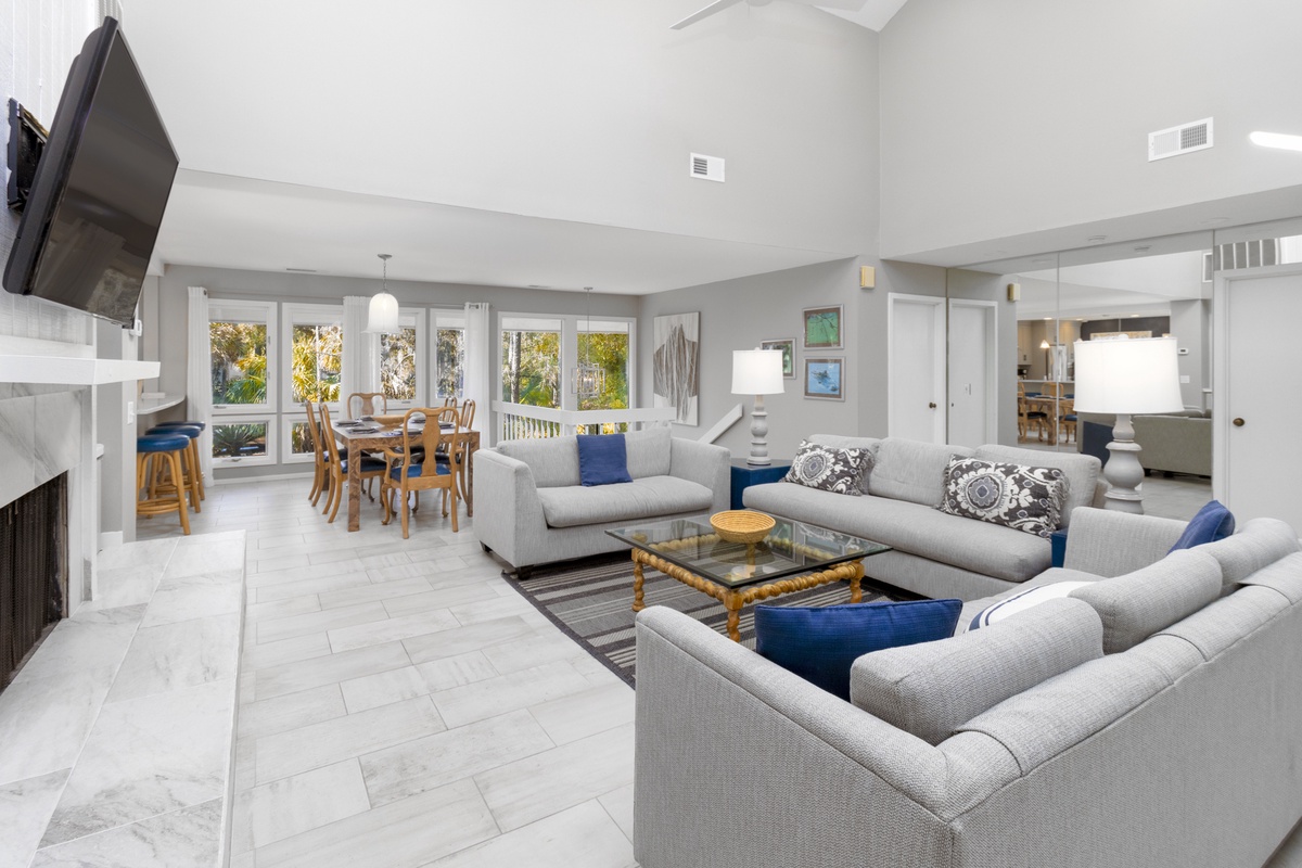 Inside, you'll find a spacious living area with vaulted ceiling - just right for relaxing after a day of seaside adventures. The fully equipped kitchen, complete with granite countertops and stainless steel appliances, is perfect for gathering and creating memorable meals for family and friends.