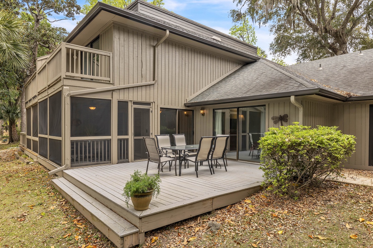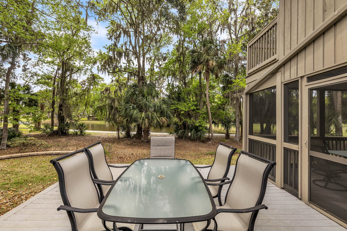 First, this property is in an excellent location... slightly northeast of Coligny Square area, in a gated community, with tons of biking paths. This property is larger than it looks in the pictures. The screened-in-porch and deck overlooking the golf course made for a great place to enjoy a glass of wine in the evenings and listen to the frogs. Kitchen is well stocked... nothing missing at all that we needed... other than a beach umbrella... which it now has because we left the one we bought there (no need for it in Indiana!). Appreciated the ample supply of towels. The big bonus for the kids was the abundance of alligator sightings in the ponds nearby! We would search out this house again for a return trip (haven't felt that way about any other house we've stayed at in Hilton Head over the years).Linda F. - Posted: 7/9/2020
