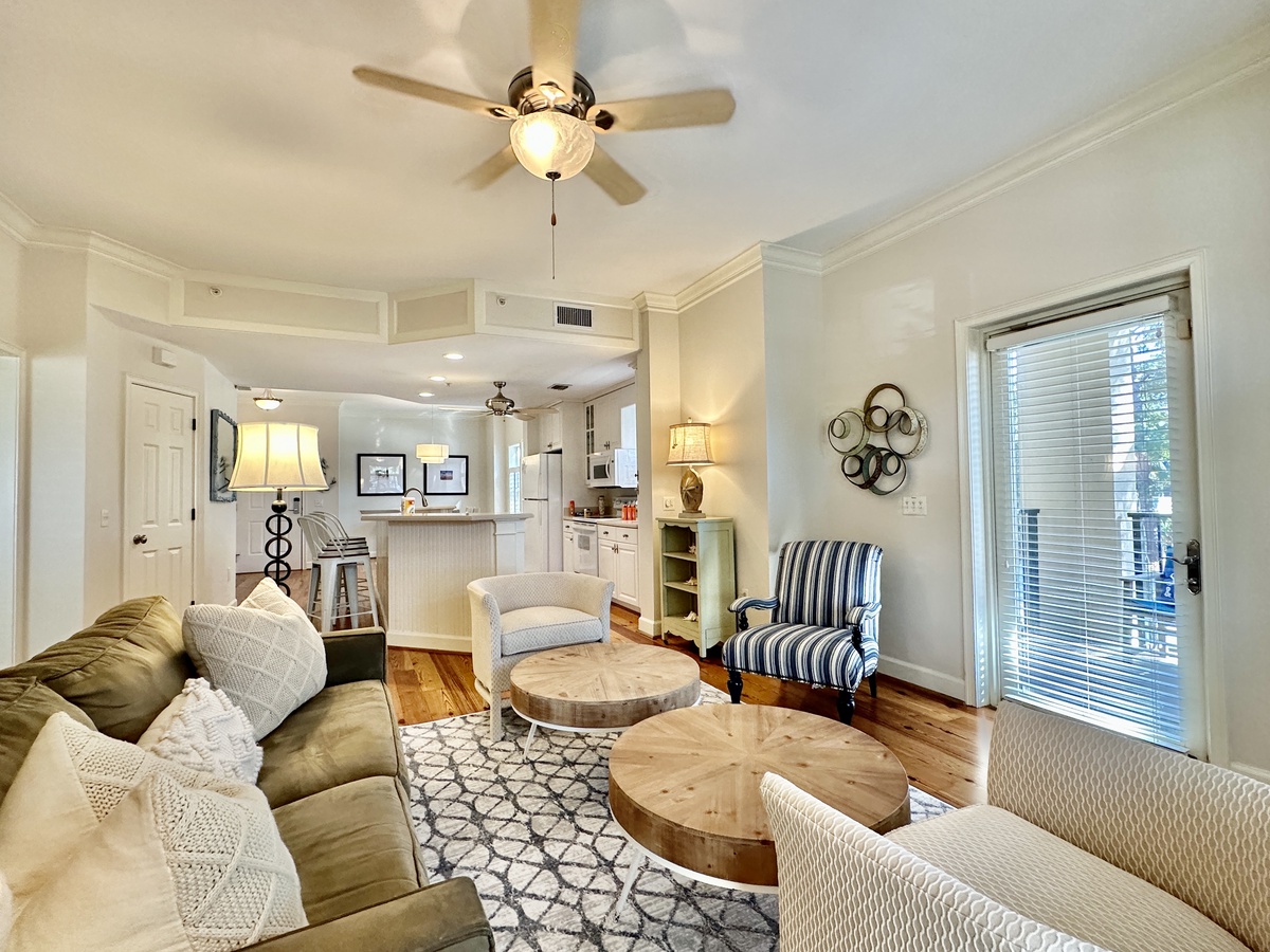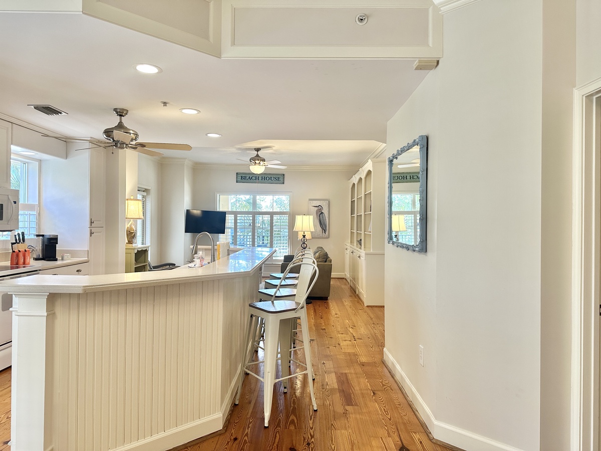 This was my first stay on Hilton Head Island. I looked at numerous options for location and amenities. This villa was exactly what I was looking for. The unit was beautifully decorated and comfortable. The large deck with rocking chairs provided a nice respite after a day on the beach. With a grocery store, restaurants and shopping right outside the door, there was plenty to do nearby. We did not have a car, which was not an issue. We walked or biked everywhere we went. The unit also had two beach chairs which we used every day. The beach was one block away and easy access for sunrise walks and beach time. I would definitely stay at this exact property again. Checkin was simple with automated codes. The kitchen was not only well stocked with supplies, it was gorgeous. Overall a perfect location and stay. I would highly recommend this property.Leslie P. - Posted: 8/15/2017