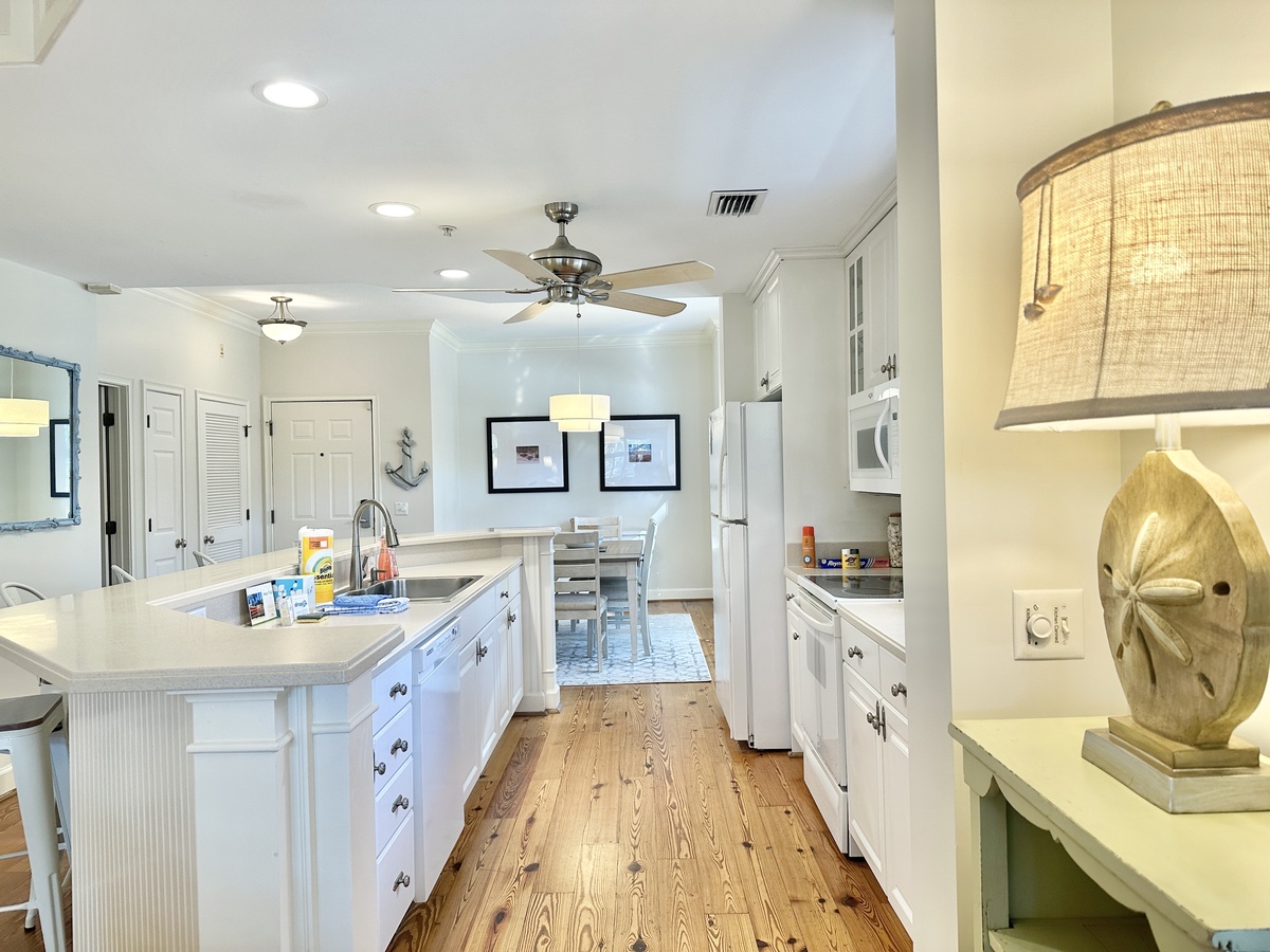 This condo is incredibly warm and inviting from the inside and right next to lots of action in location. We stayed here with our 3 elementary aged boys and I was 6 months pregnant. The walk to the beach is just a block away, there are convenient outdoor showers and hoses for getting sand off at the complex. We also were able to walk to lots of shop and restaurants. The piggly wiggly grocery is also walking distance. Heads up: We missed our Vayk rental credit deadline (expires a day after check in) because we booked this place very last minute and missed the email. But we had plenty to do without it! Our only complaints or extra needs in the condo were the comfort of the living room chairs were not great (couch was fine) and we had to get some of our own cleaning supplies for messes we made. We enjoyed the pools but the security personnel was not well identified and would ask specific questions while you were there. They would ask your for your room, name and email which, because they were not well marked or didn’t introduce who they were, made us nervous to give that information out. All in all we had a great stay and would definitely return!Jaime B. - Posted: 8/28/2020