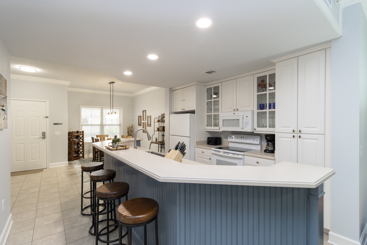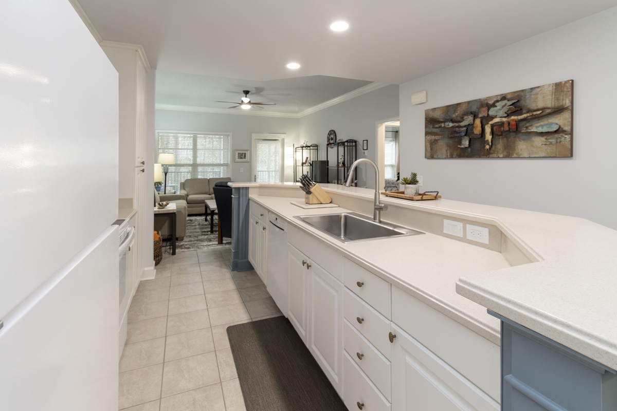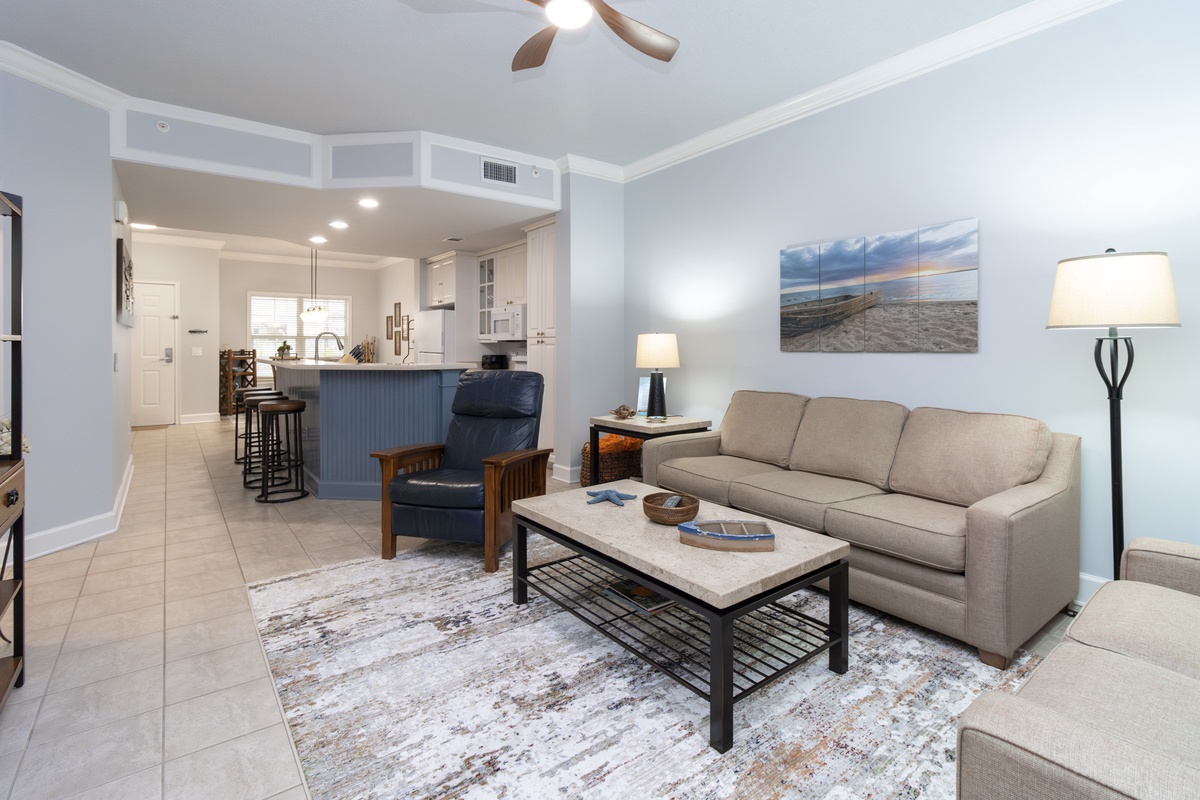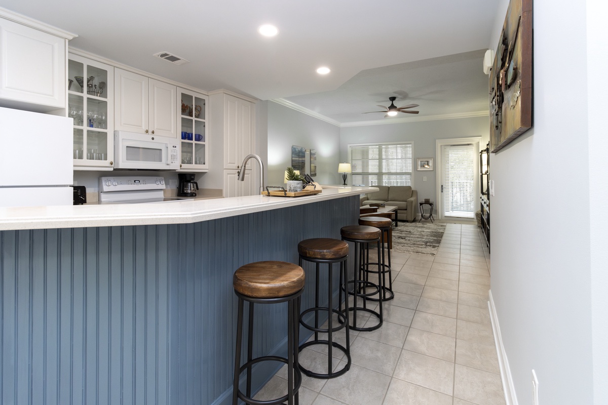 This villa offers the convenience of a first-floor villa while being elevated above the parking garage, giving you the comfort of easy access with the added benefit of extra privacy from the second-story level.