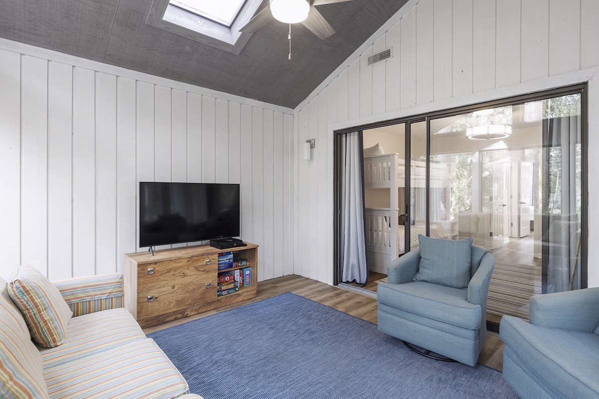 What a comfortable place. Spotlessly clean. Easy to get around for older family. Kitchen and appliances was very nicely appointed and very comfortable to just hang out in in the morning over coffee. The modern TVs were very much appreciated and the large family room was great for viewing together. Beds were comfy. My teens loved the bunks and the adjoining back TV room. Overall location was very convenient. We loved the bike rides in general and to and from the beach. Owner was very responsive to a missing carafe for the drip coffee maker. Problem solved by next day. We’d gladly stay there again.John B. - Posted: 7/30/2022