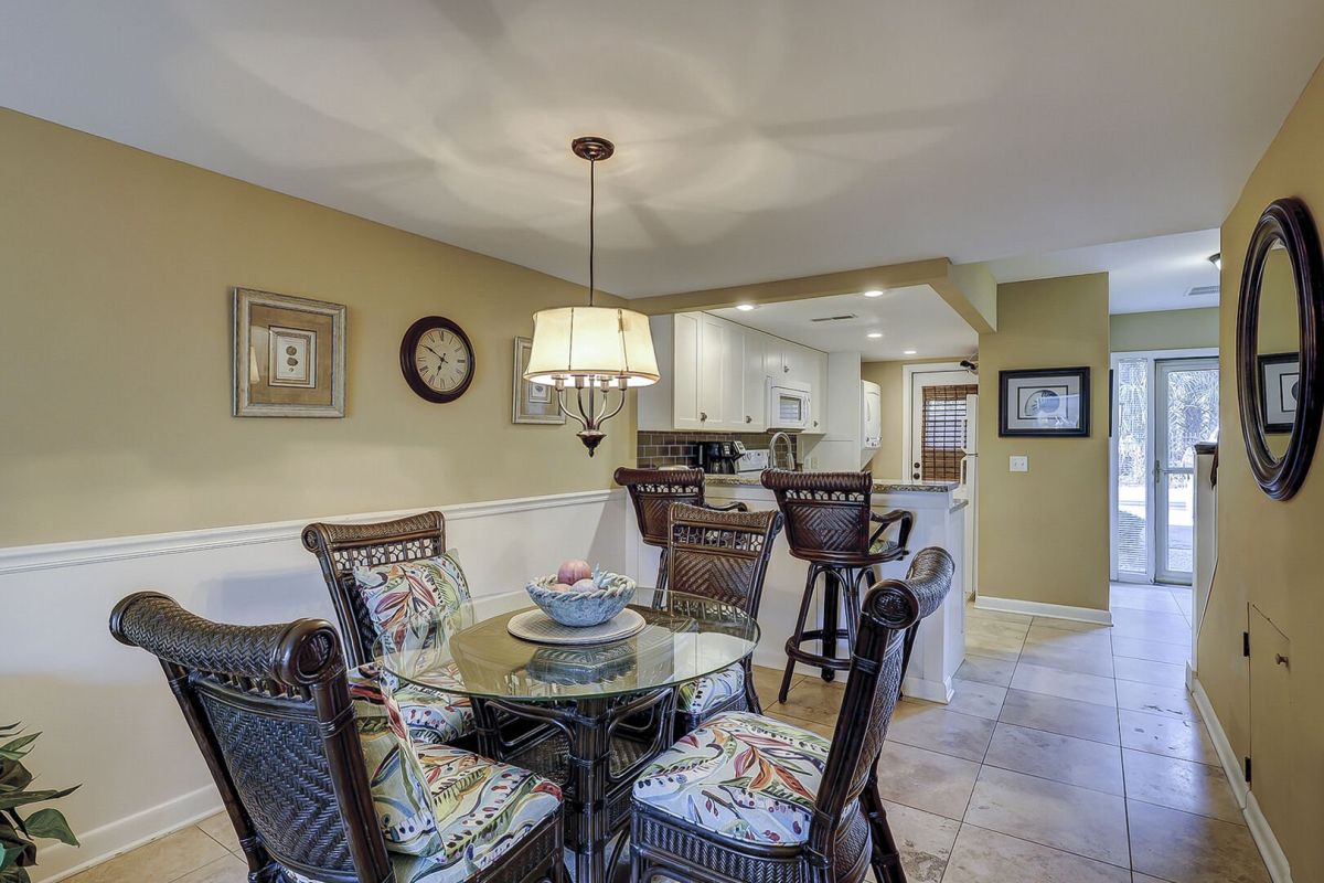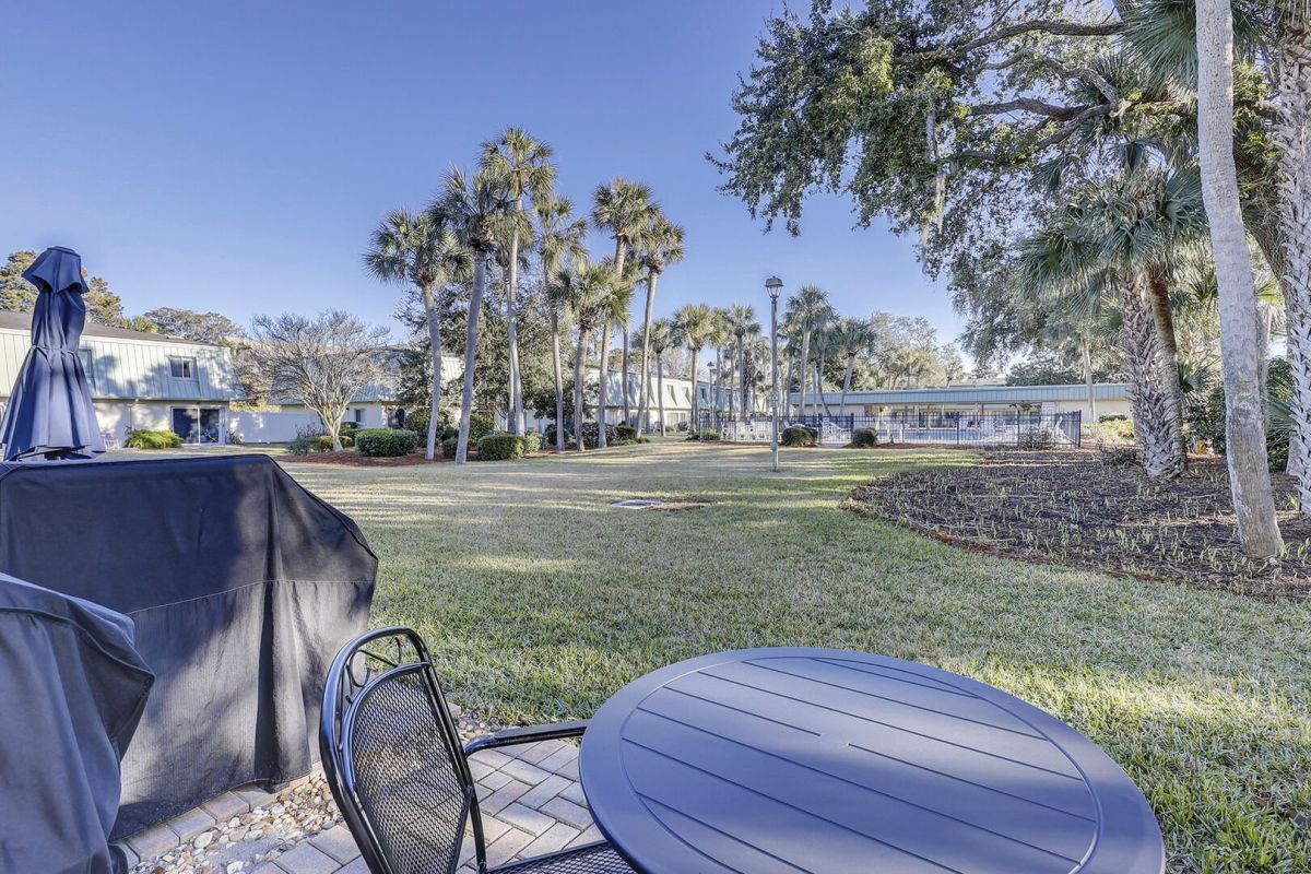 Step out onto your private back patio, where the community pool glistens in the warm Hilton Head sunshine - an ideal spot to enjoy morning coffee or watch the golden hues of the evening fade into twilight. From here, you can stroll along scenic paths, explore the nearby Coligny Plaza with its charming shops and eateries, or rent a bike to tour the island’s famous trails. Every detail has been considered to make your stay seamless - from free WiFi and smart TVs to an in-unit washer and dryer, keyless entry, and the rare privilege of bringing your furry friend along for the fun.