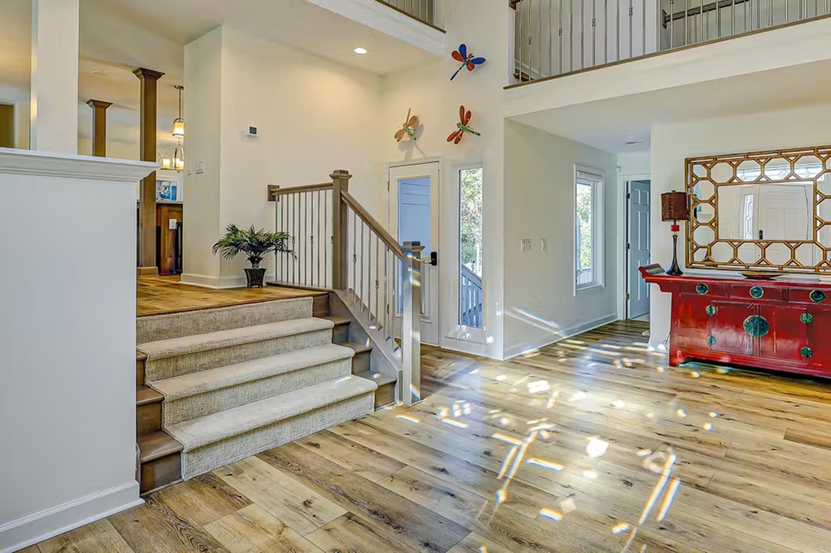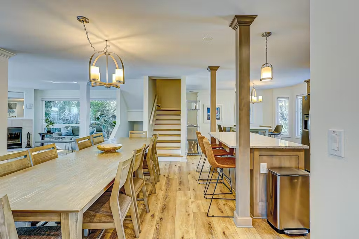 Imagine waking up to the rhythm of the Atlantic and stepping into a world where coastal elegance meets effortless comfort. This beautiful ocean view home in Hilton Head instantly captures your attention with its prime location just two rows from the beach and a private deeded walkway that invites you straight to the shore. Sunlight pours through the windows, highlighting airy interiors and a peekaboo ocean view from the top floor that gently reminds you how close paradise really is. From the moment you arrive, the home sets the tone for a refined beach escape that feels both indulgent and welcoming!