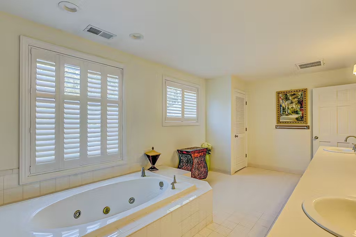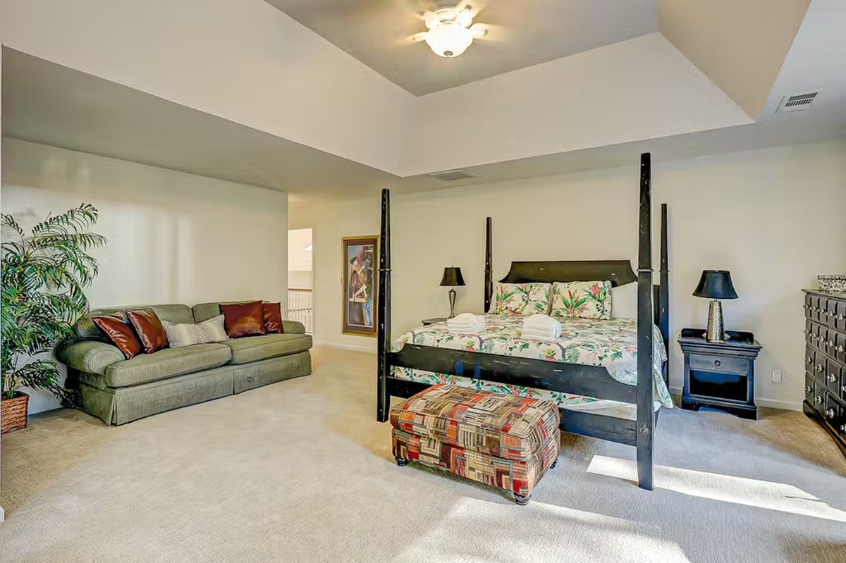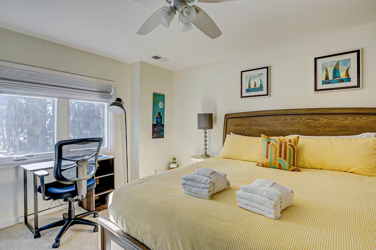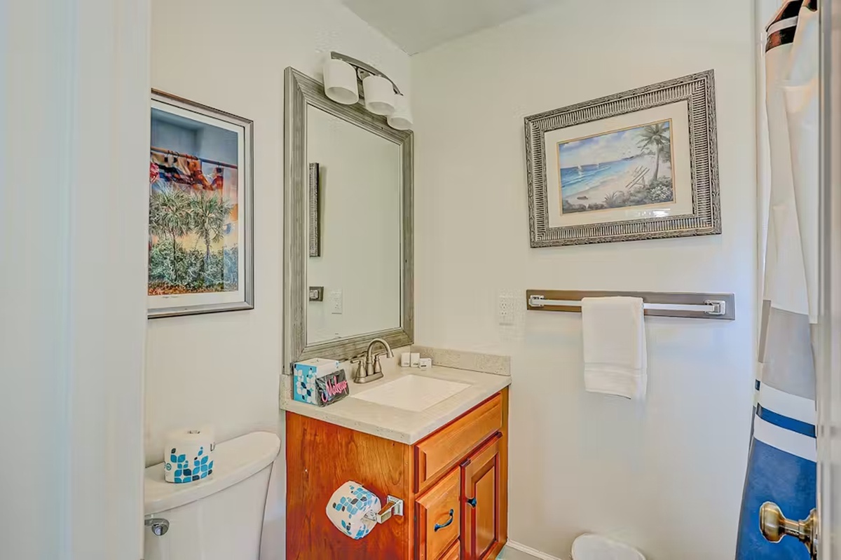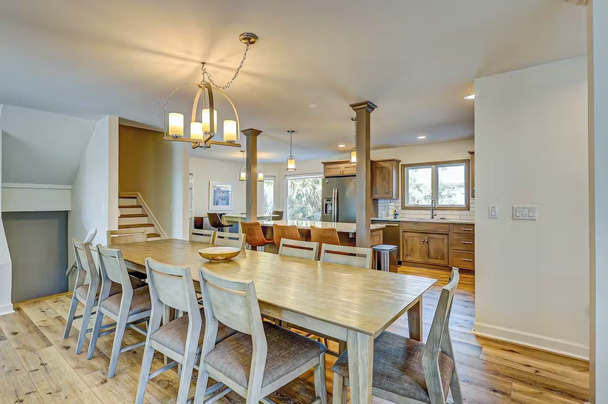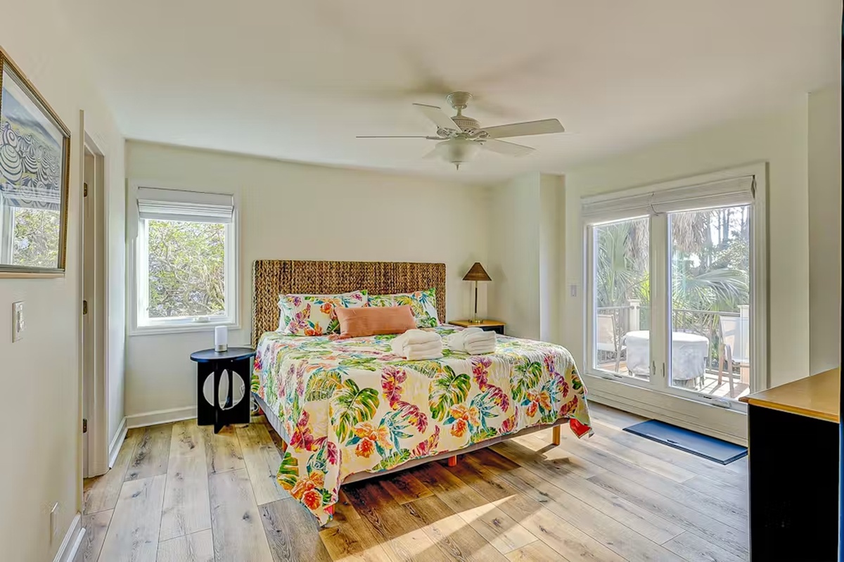 Designed for memorable gatherings, this spacious retreat offers five well appointed bedrooms that comfortably host families and groups of friends. Four bedrooms feature luxurious king beds, while the fifth bedroom includes two queen beds and a rollaway twin for added flexibility, ensuring everyone has their own perfect place to rest. Each bedroom includes a private bathroom, creating a sense of personal space and convenience that elevates the entire stay. The primary suite on the top floor adds even more appeal with a sleeper sofa and serene views, making it an ideal sanctuary after long days in the sun.