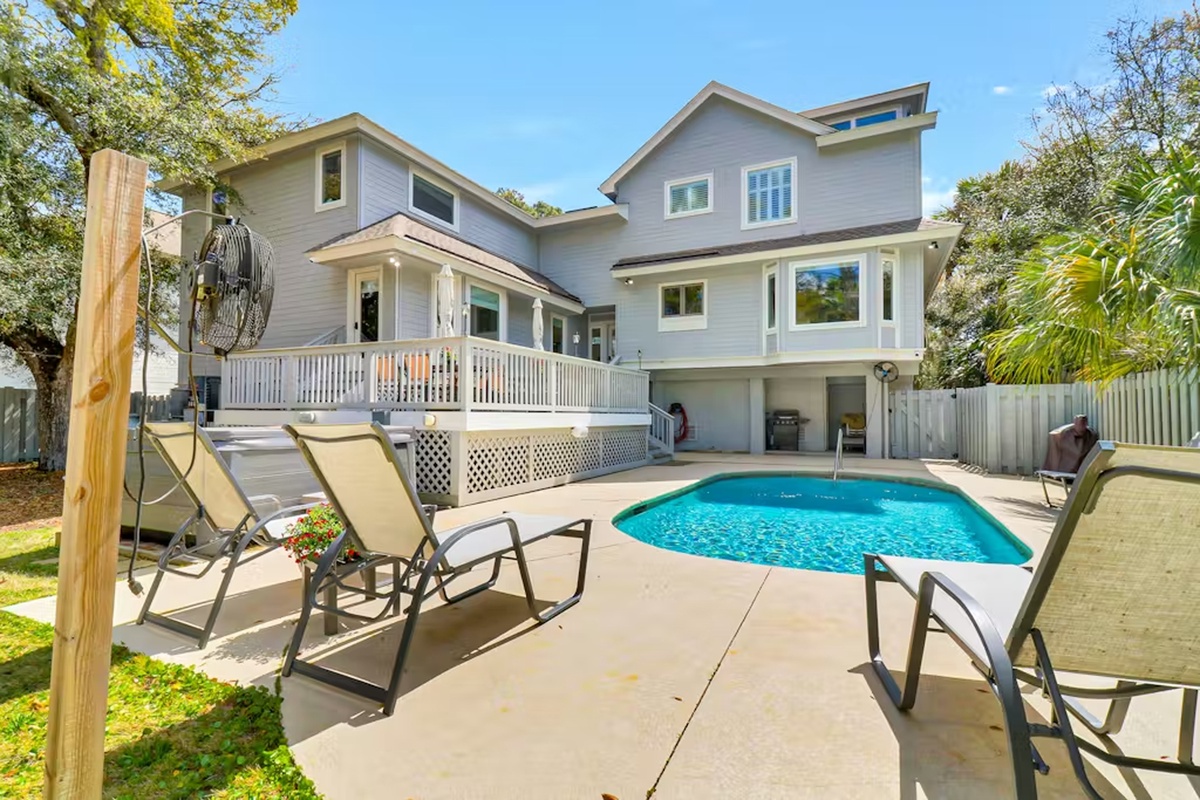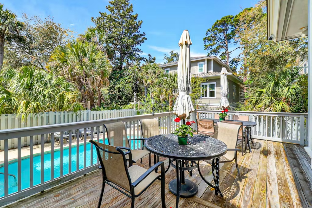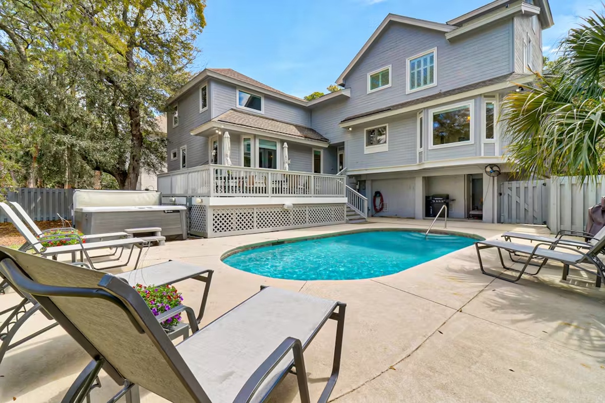 Step outside and discover your own private oasis, complete with a sparkling pool, soothing hot tub, and outdoor spaces designed for relaxation and connection. Whether you are sipping morning coffee on the balcony, enjoying an afternoon breeze on the deck, or unwinding under the stars in the jetted tub, every moment feels thoughtfully curated. Inside, modern comforts such as central air, high speed internet, a washer and dryer, and a fully equipped kitchen make it easy to settle in and feel at home. The peaceful residential setting offers privacy, yet you remain close to grocery stores, world class dining, championship golf courses, and popular destinations like Coligny Plaza and Shelter Cove Towne Centre.