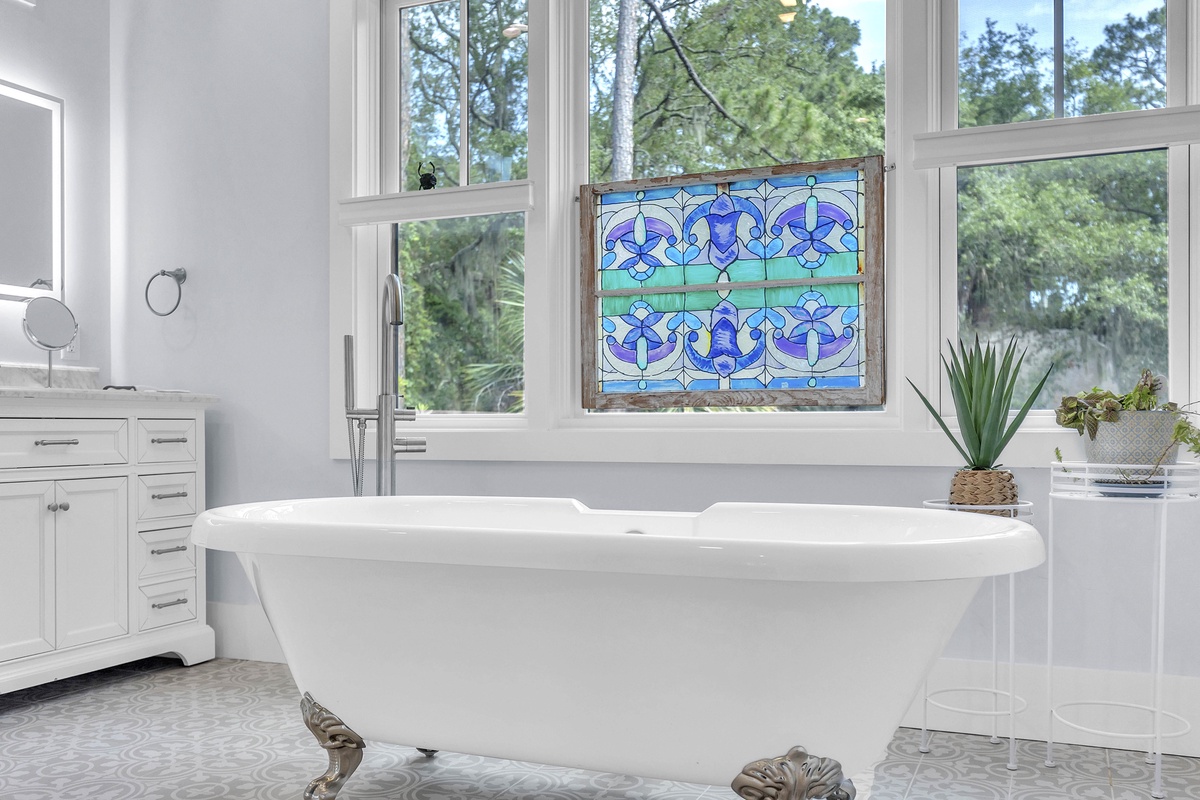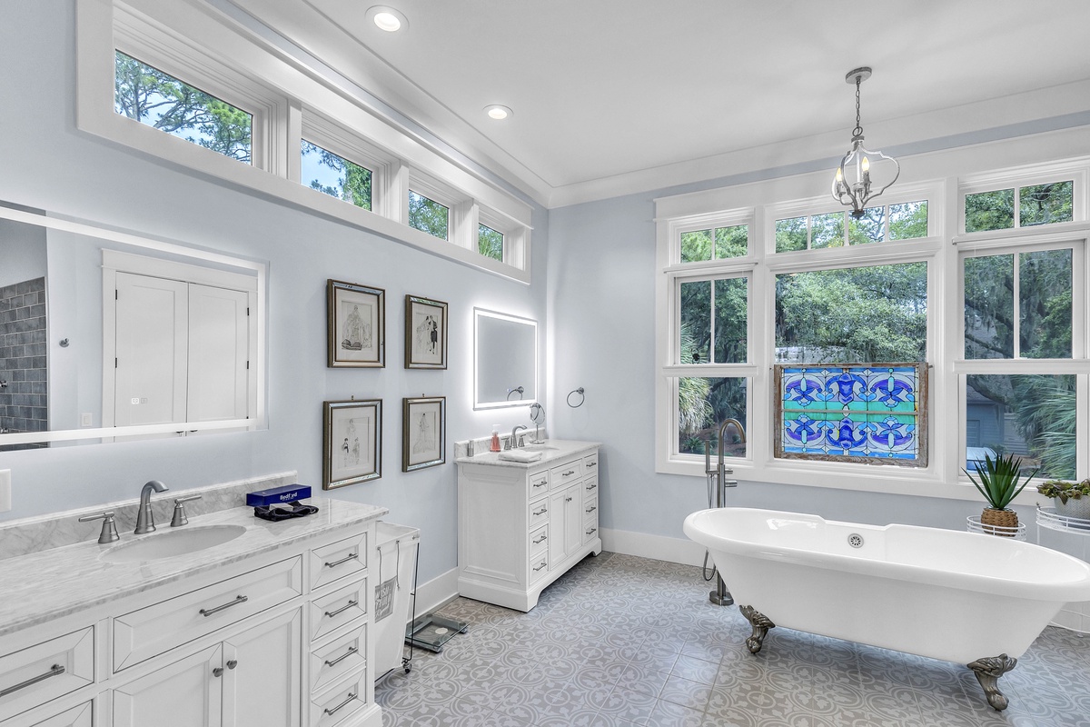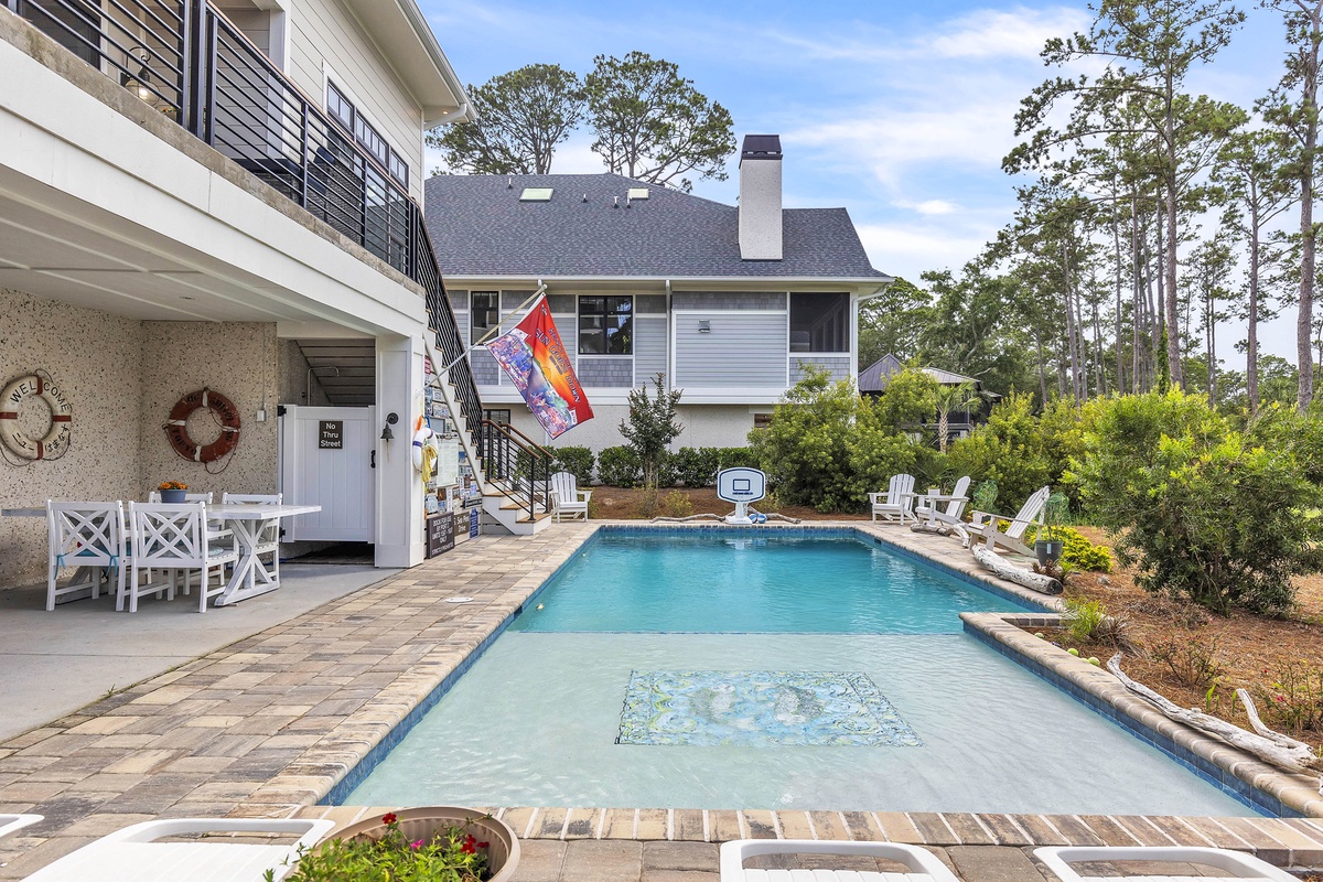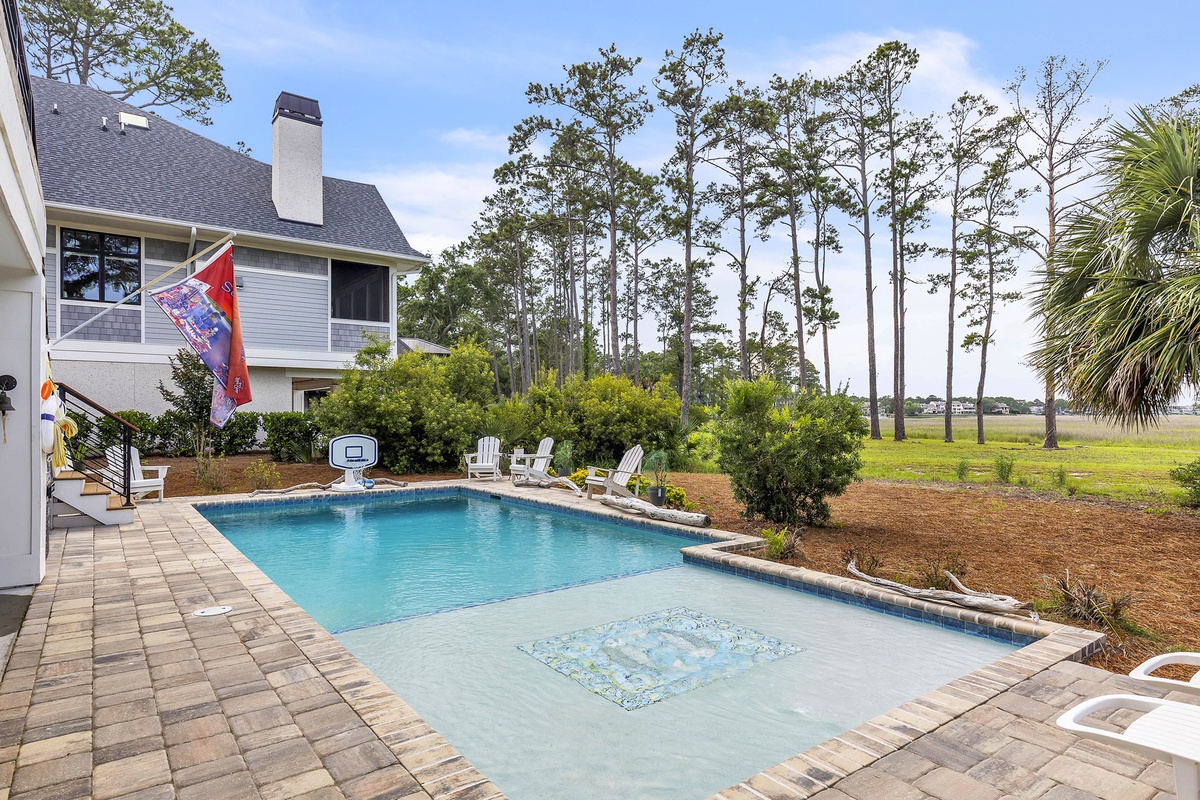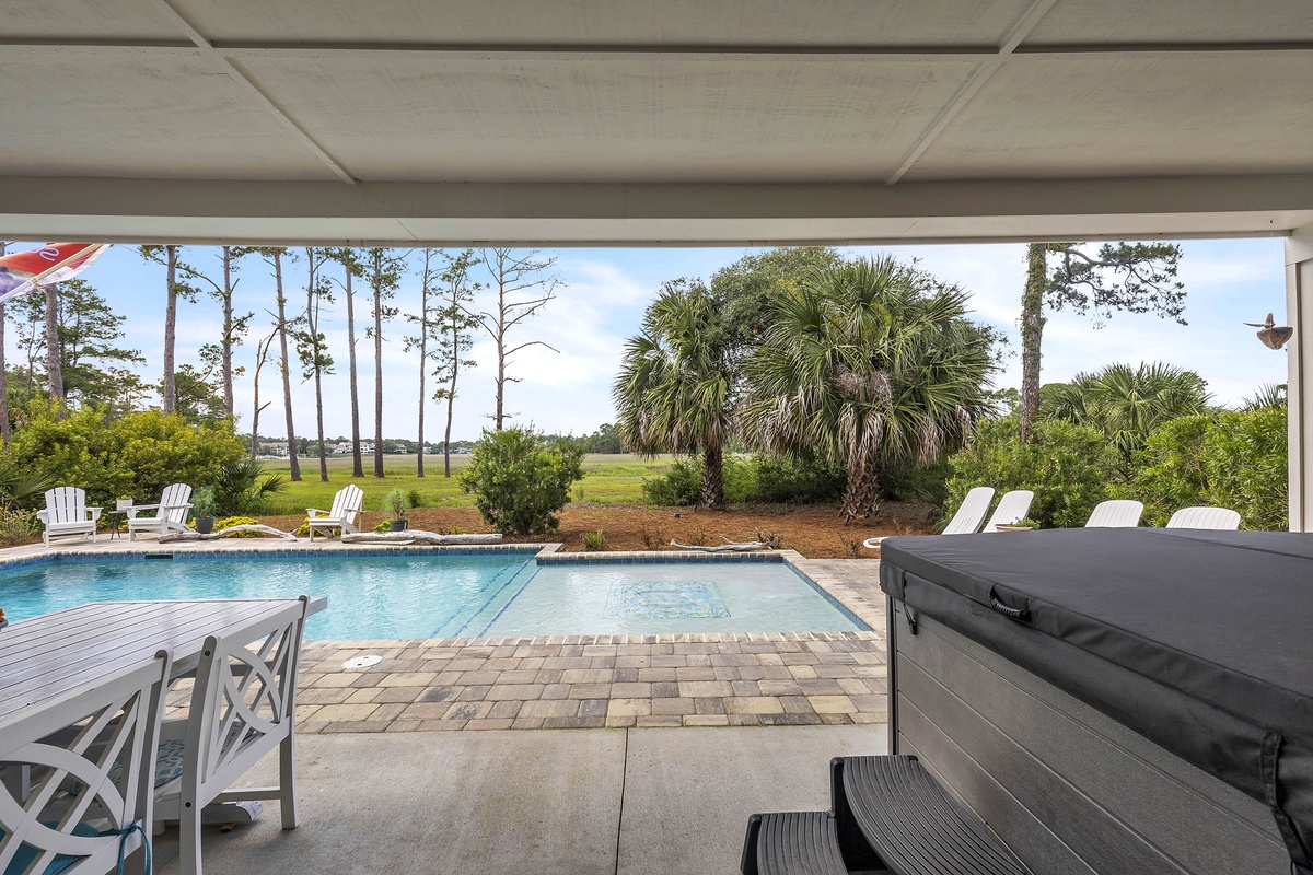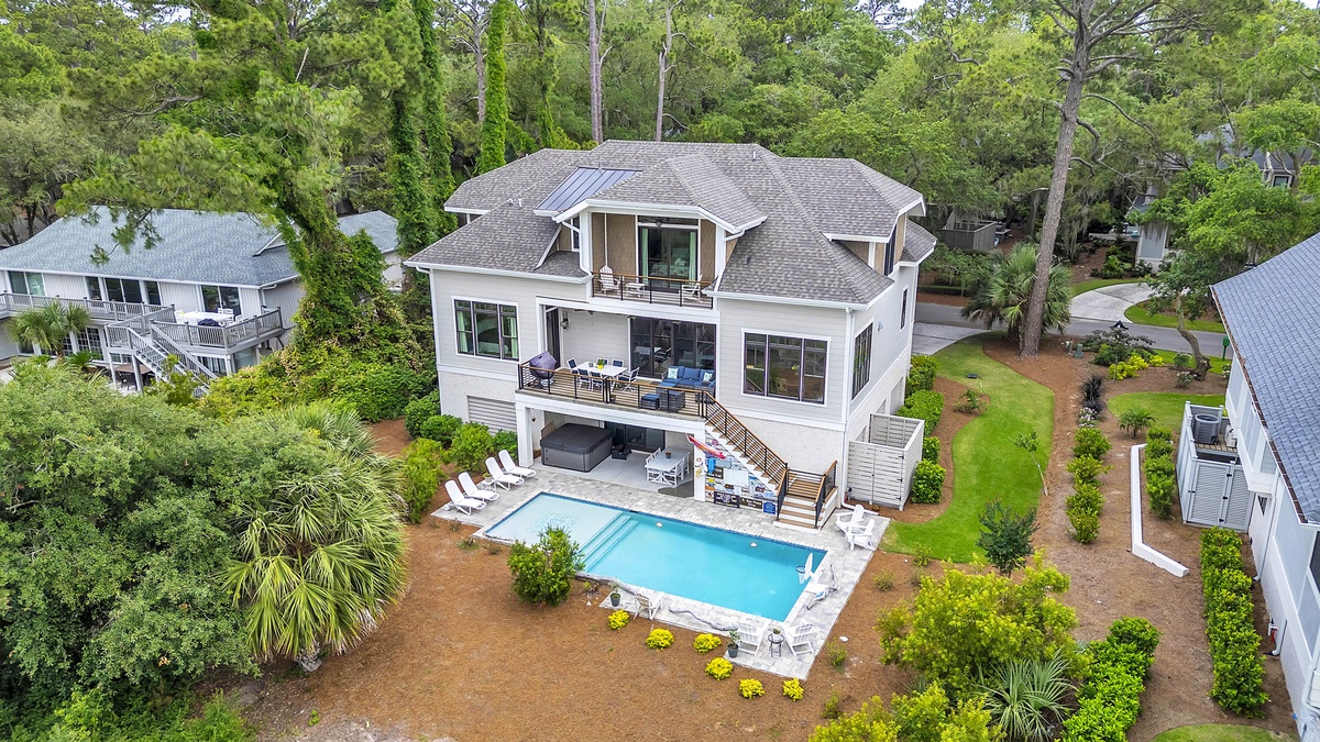 A spectacular outdoor experience is all yours at this home with lush greenery so you can take in the views of the gorgeous marsh and Salty Dog Marina beyond the brand-new pool or separate stand-alone hot tub. At high tide, you can launch a kayak or paddle board in the tidal creek and paddle to Braddock Cove, South Beach Marina, & and Calibogue Sound.