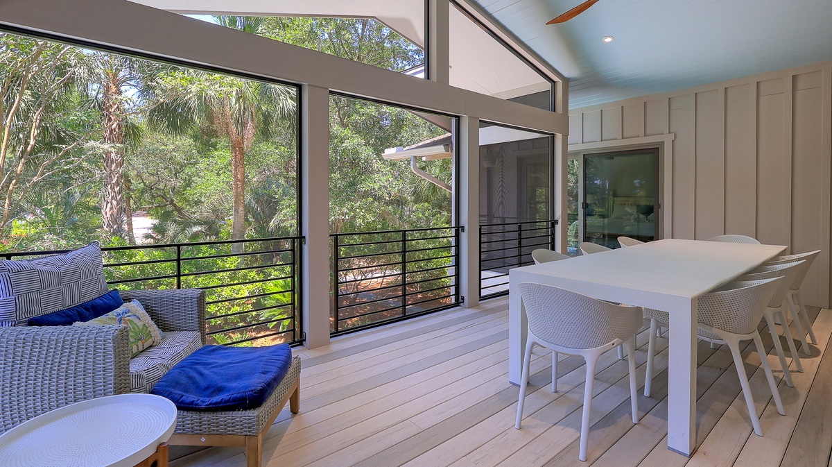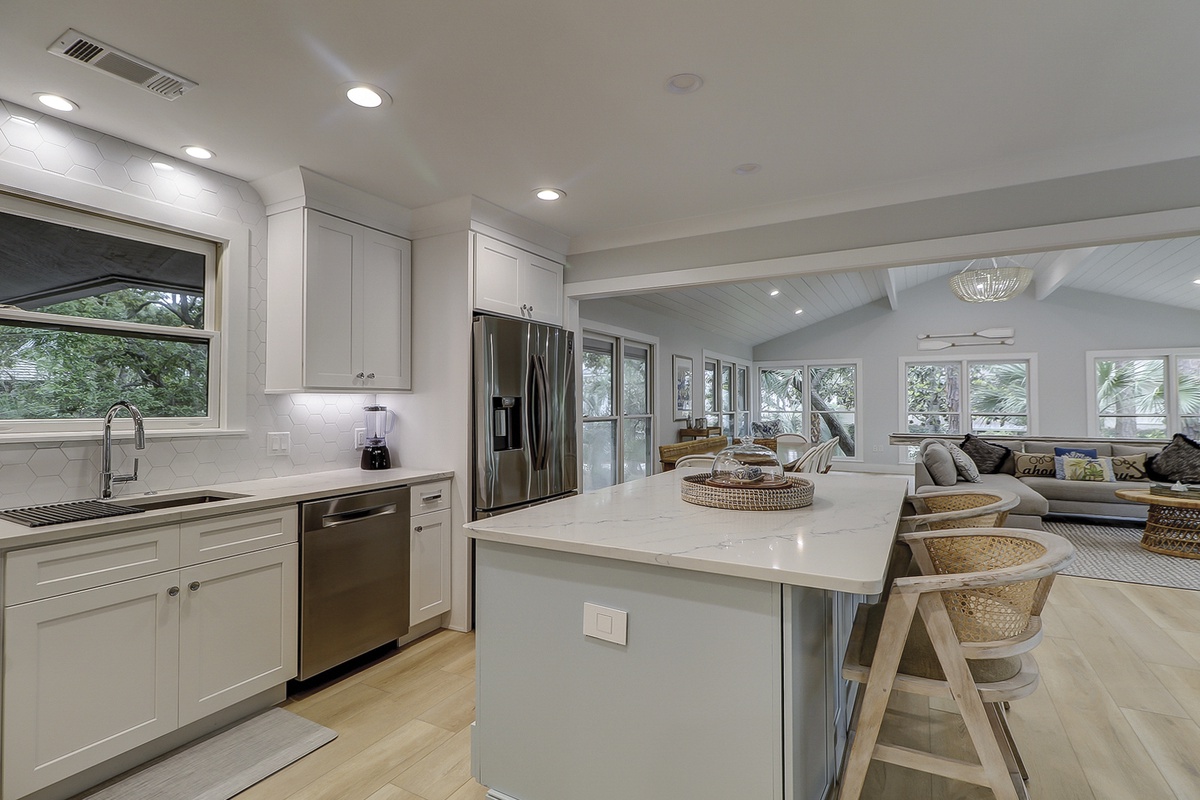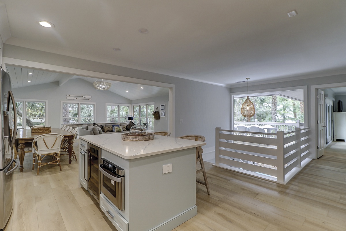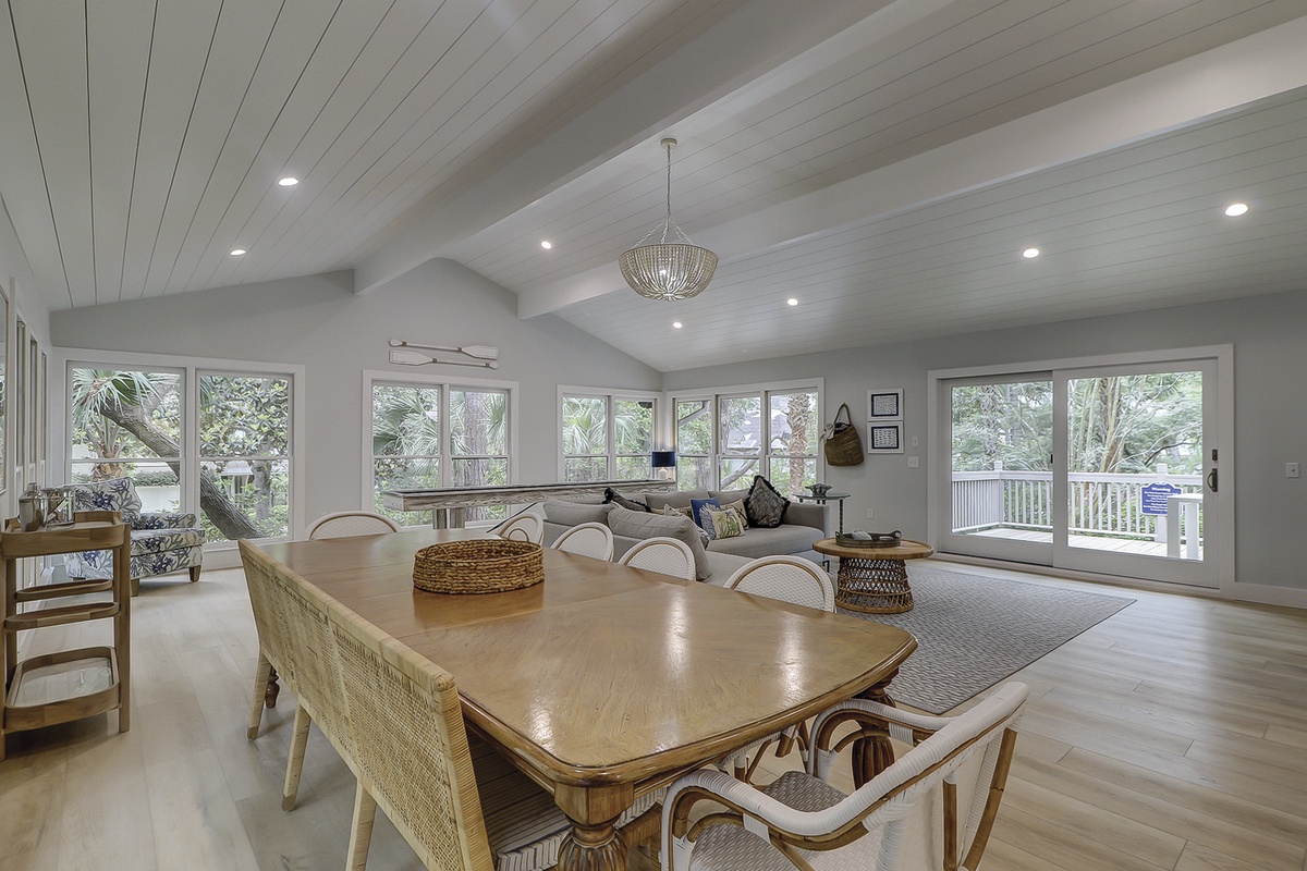 Welcome to your own personal island paradise! This stunning property is located just one street back from the ocean in the peaceful Sea Pines neighborhood. You'll love the spacious two-level house, with its huge living and family room, open kitchen, and high ceilings. It's perfect for relaxing during the day or cooking gourmet meals for the whole family at night.