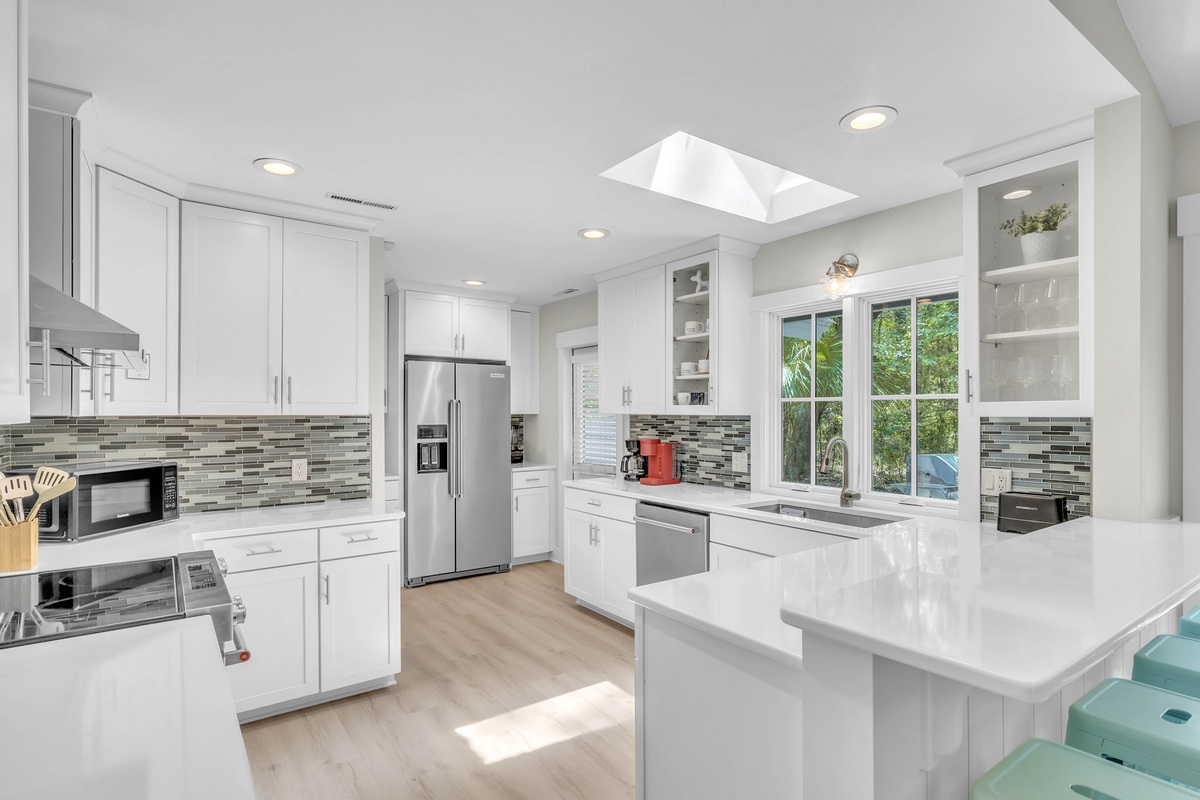 This charming and newly updated home is just a 7–8 minute stroll to the beach, with a convenient location directly on the bike path for morning rides or scenic walks. Step off the back patio towards the trees, find the sand dollar, and hop right onto the bike path! The home's brand-new kitchen appliances and grill make dining in a delight, whether you're whipping up a seaside breakfast or grilling fresh seafood after a day in the sun. Enjoy coffee your way with both a Keurig and a traditional coffee maker, and let our concierge service stock the kitchen with all your favorite items - from fresh pods and cream to snacks and full grocery runs (available for an additional charge).