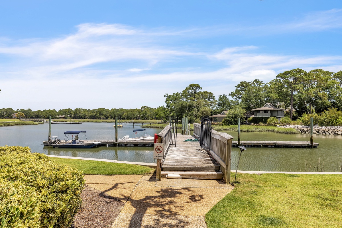 Beyond your villa walls, the outdoors beckons! From the lush green lawn leading to the water’s edge to the private dock stretching into Braddock Cove, the setting is both peaceful and active. Just a short stroll away, South Beach Marina Village awaits with its fishing charters, charming shops, boat rentals, and the world-famous Salty Dog Café. The beach is only five minutes on foot, giving you seamless access to soft sand and crashing waves. For recreation, a complimentary daily hour of tennis at South Beach Marina’s courts keeps your getaway as active as you want it to be. There are Pickleball Courts and bikes just a block away where you can rent court time, take lessons or rent bikes for a couple of hours or for your full stay.