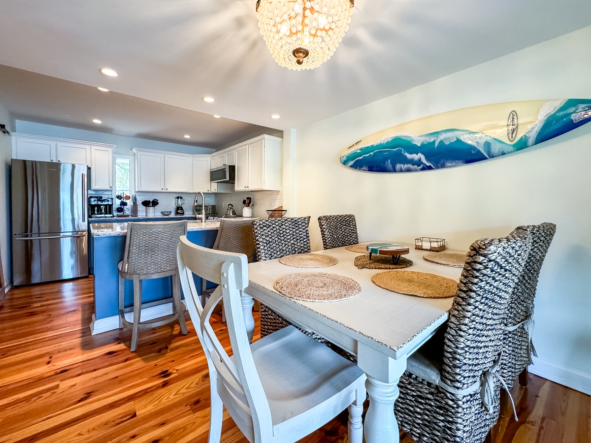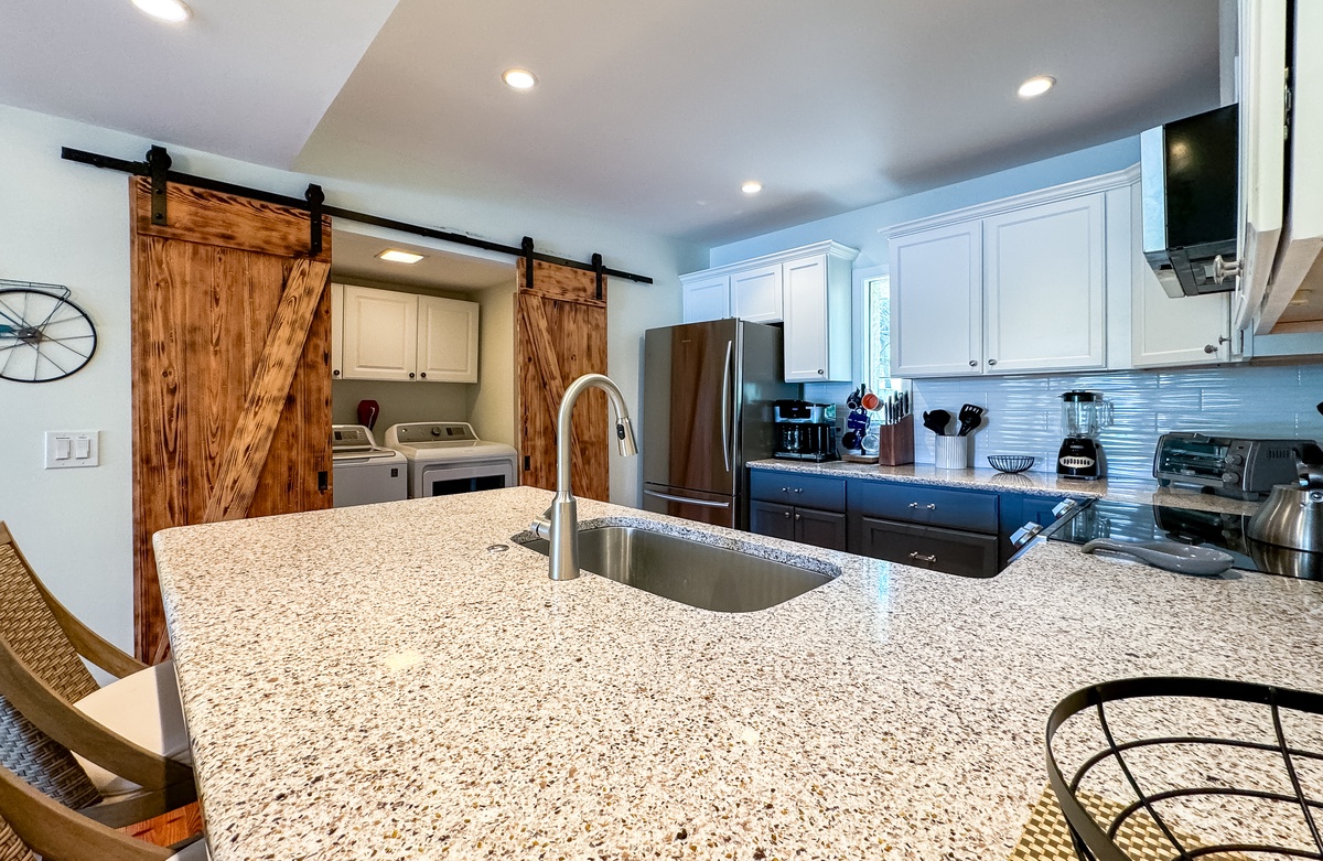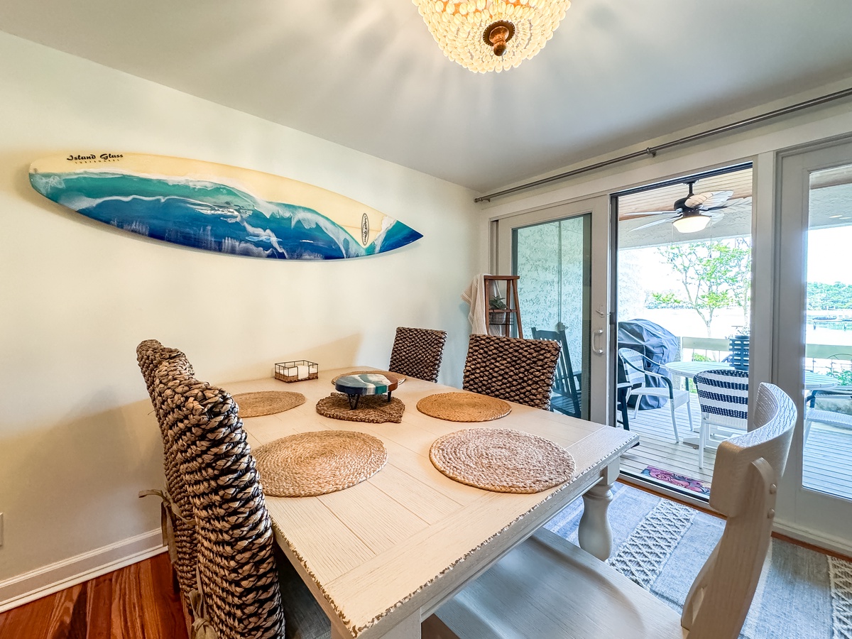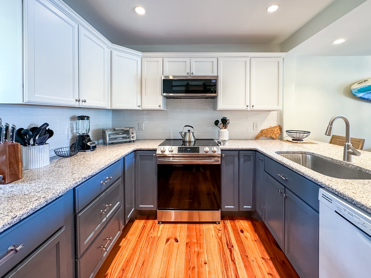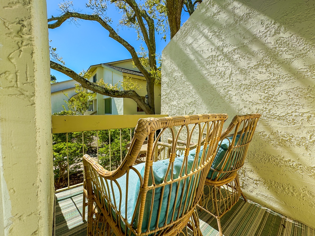 With two bedrooms, a king-size bed in the primary and a second bedroom offering the flexibility of a king or 2-twin bed configuration, ensuite renovated bathrooms in both, and a half bath downstairs, there's plenty of space to relax and unwind after a day of pedaling and paddling around Sea Pines. You’ll find that every detail has been carefully curated to ensure your utmost comfort, from the high-end appliances, well-appointed kitchen, and comfortable furnishings to the fashionable coastal decor.