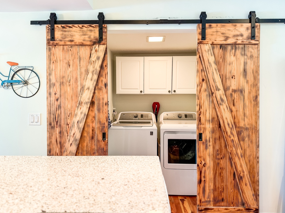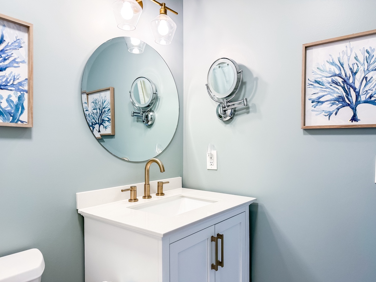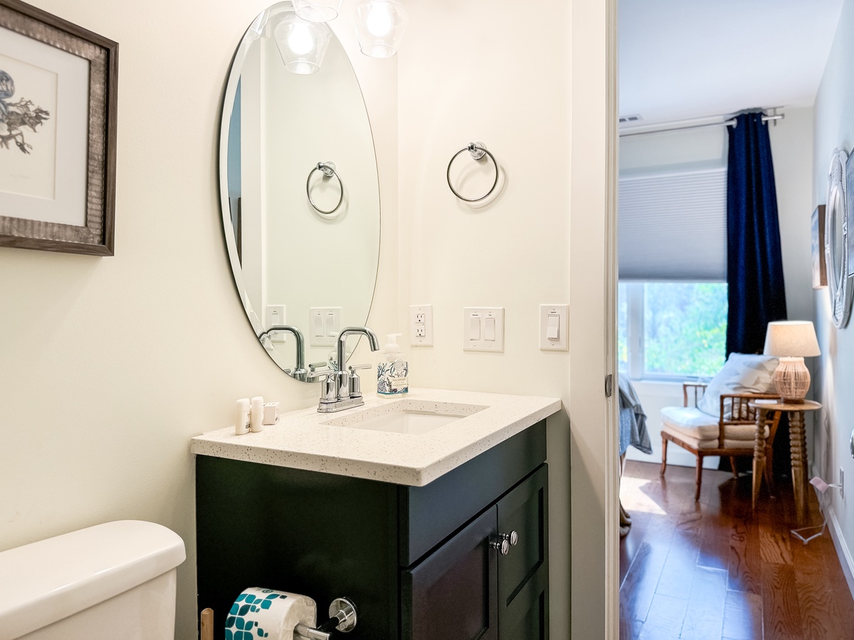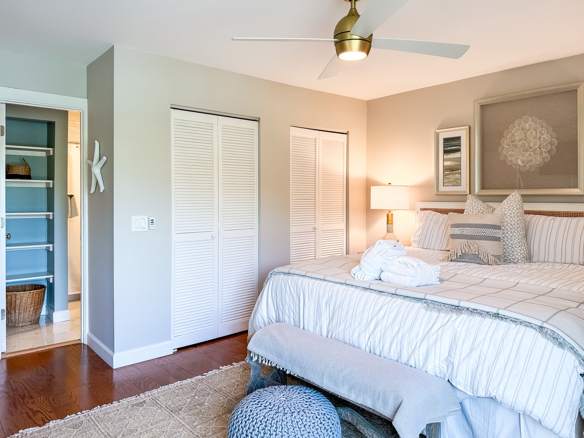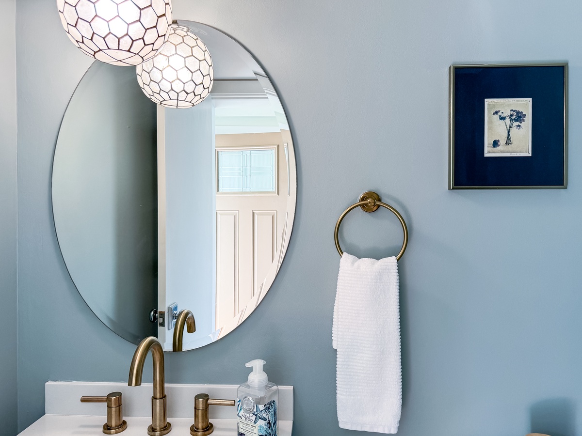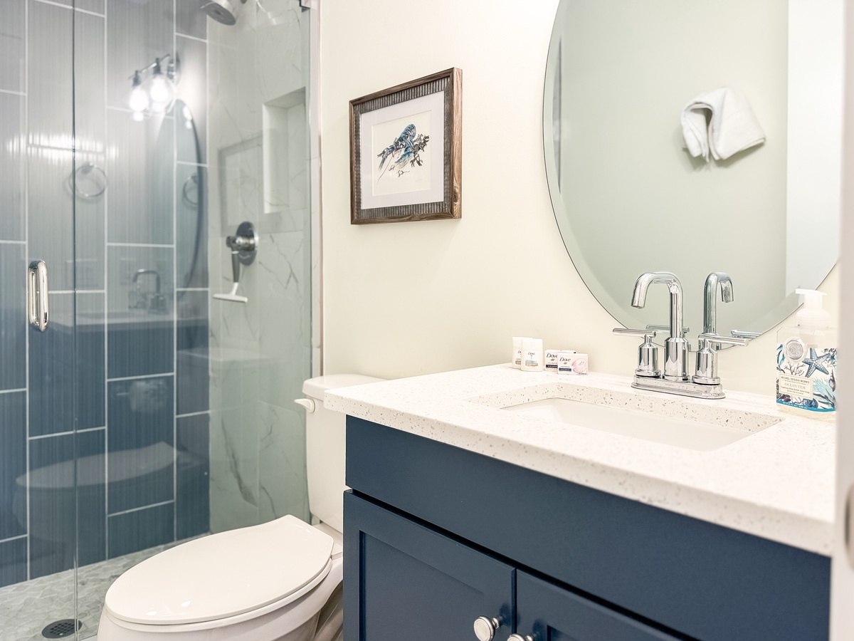 With two bedrooms, a king-size bed in the primary and a second bedroom offering the flexibility of a king or 2-twin bed configuration, ensuite renovated bathrooms in both, and a half bath downstairs, there's plenty of space to relax and unwind after a day of pedaling and paddling around Sea Pines. You’ll find that every detail has been carefully curated to ensure your utmost comfort, from the high-end appliances, well-appointed kitchen, and comfortable furnishings to the fashionable coastal decor.