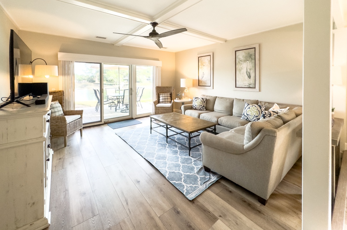 We thoroughly enjoyed our stay. The location is great and the view of the lagoon in backyard was beautiful. The boys enjoyed fishing while we watched from the patio. A lot of attention to detail was appreciated and the unit is very well equipped. The upstairs bunk room was not as adult friendly as we had hoped (our fault) but would be a great spot for younger kids, but we made it work. The unit was a bit hot at night but the rooms were equipped with extra fans which helped a lot. The whole place has been updated and is absolutely beautiful, complete with new appliances. We would definitely stay here again!Julie - Posted: 8/25/2024