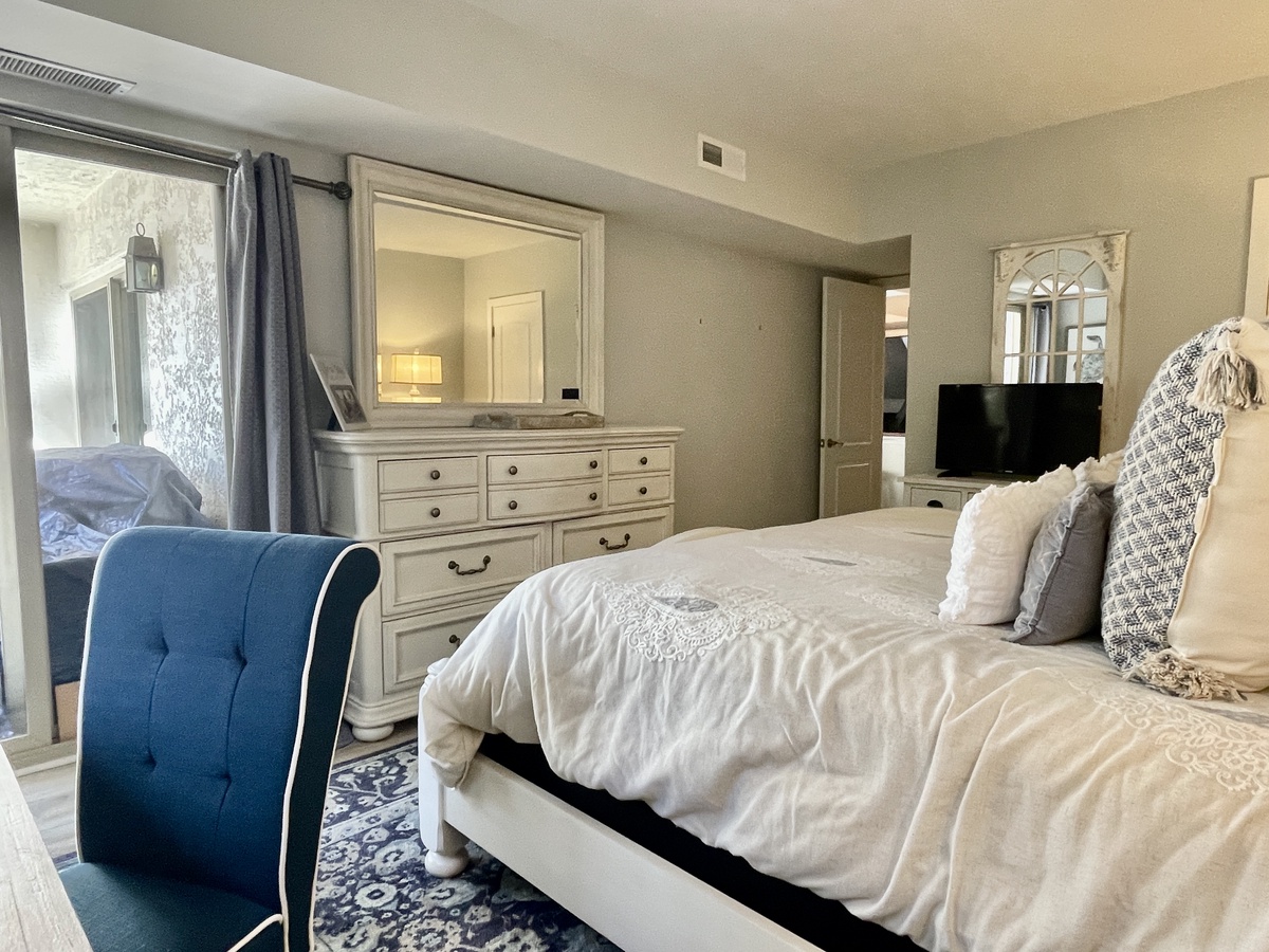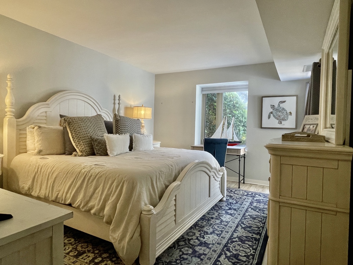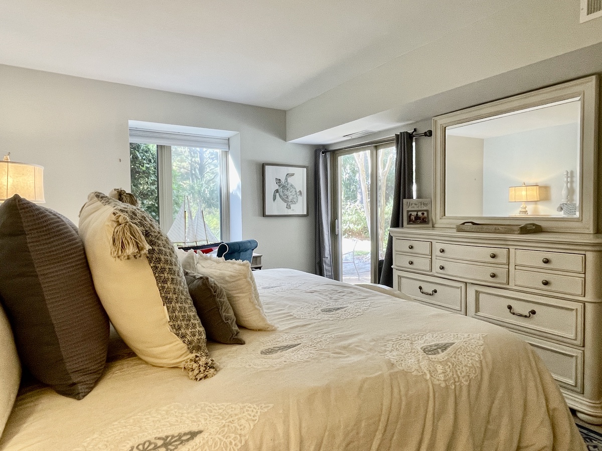 The bedroom is equally amazing, with a mountain of pillows on a king-size bed, tv, and plenty of closet space. There is every bit of luxury in the updated bathroom, as well. This is the perfect getaway in the heart of South Beach Village, just steps from the beach, bike paths, and Salty Dog restaurants and shops. Enjoy a vacation reimagined with host2coast, your trusted Hilton Head Island Property Management partner.