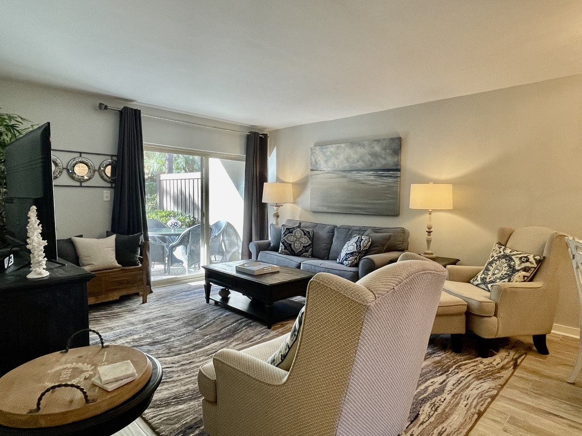 "Best kept secret in South Beach! This charming condo is amazing. My husband and I came to HH for 2 weeks, and it had everything. The beautiful kitchen is completely updated and has all you need for your stay. The walk-in spacious shower and double sink vanity was fabulous, as was the beautiful bedroom with a very comfortable bed. Plenty of closet space. Large tv in the living room with plenty of comfortable seating. The patio has plenty of seating to entertain, a grill, and privacy, surrounded by lush greenery. This Salty Dog is steps from the villa, and has great eats and entertainment. Beach is a 5-minute walk, and the villa has beach chairs. Beautiful beach! It's a 10-minute drive to Harbour Town, with plenty of shops, food, and music, not to mention the Marina and beautiful yachts. Run, don't walk, to 1651. You won't be disappointed!"