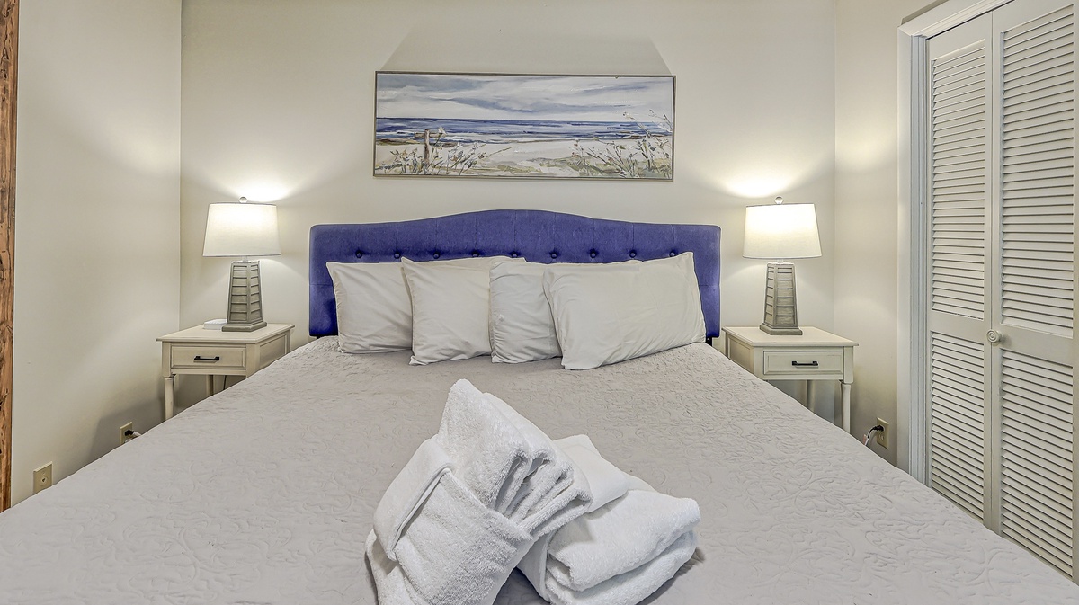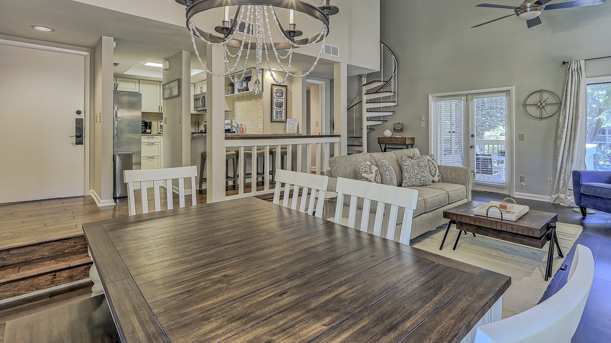 Inside, lofty ceilings, chic furnishings, and oodles of natural light create a cozy yet spacious vibe that's paw-fect for lounging with your pack. Plus, you'll enjoy upgrades in new flooring - ensuring a modern and comfortable stay! After a day of beachcombing and exploring, chill out in the central air-conditioning while your sandy attire gets a refresh in the washer/dryer. And for dinner? Keep it simple with a BBQ feast on one of the shared grills because who needs fancy restaurants when you've got a beachy paradise at your doorstep?