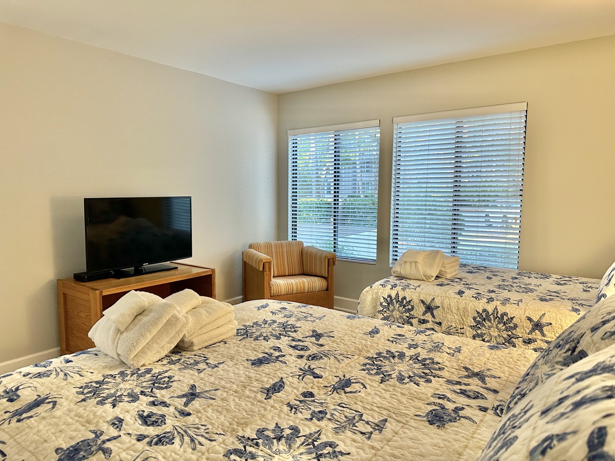 After enjoying your island adventures, you’ll find the spa-like bathrooms and comfy beds to your liking. Bedroom 1 features a king bed. In bedroom 2, you will find a queen and a full bed, and there is also a queen sofabed in the living room. Refresh with a hot shower or relaxing bubble bath and sleep like a baby when you slip into the crisp, clean bed linens.
