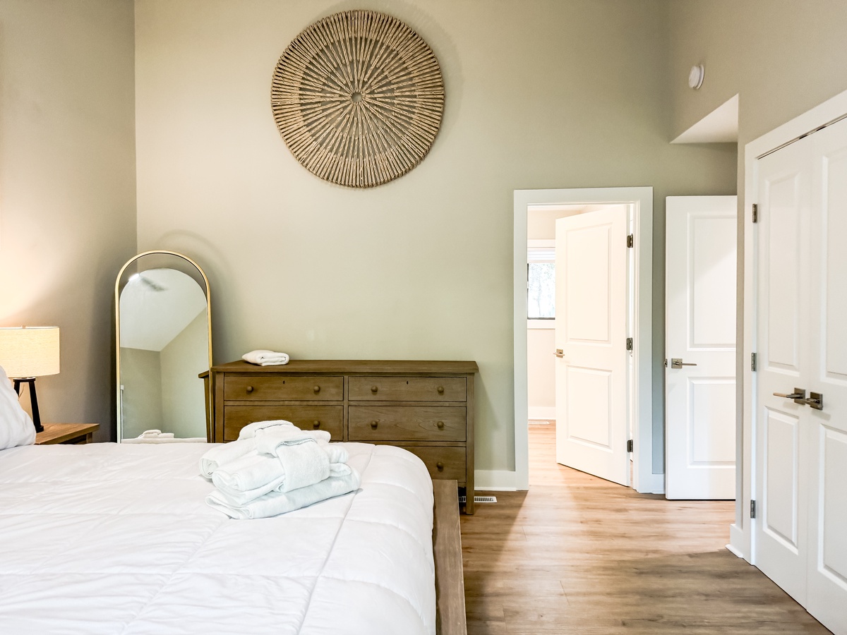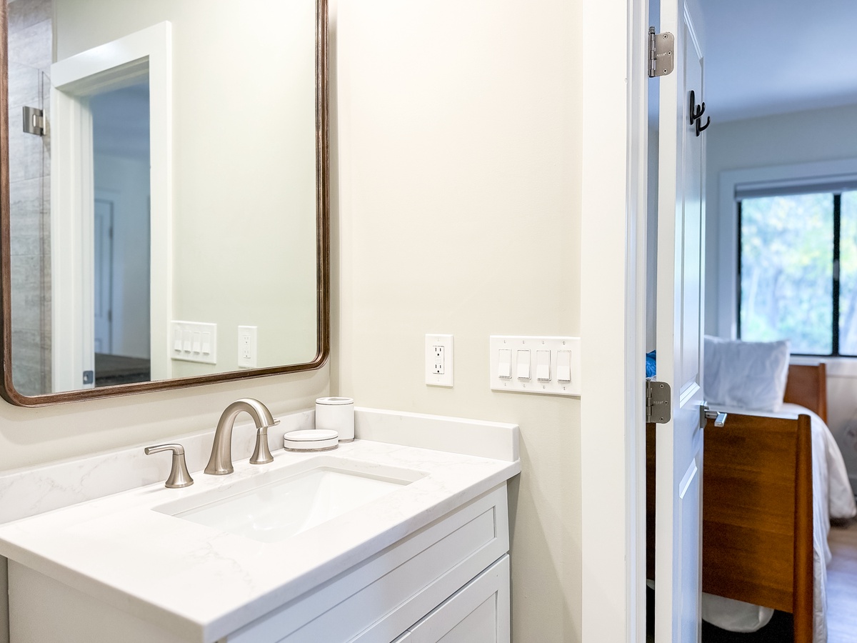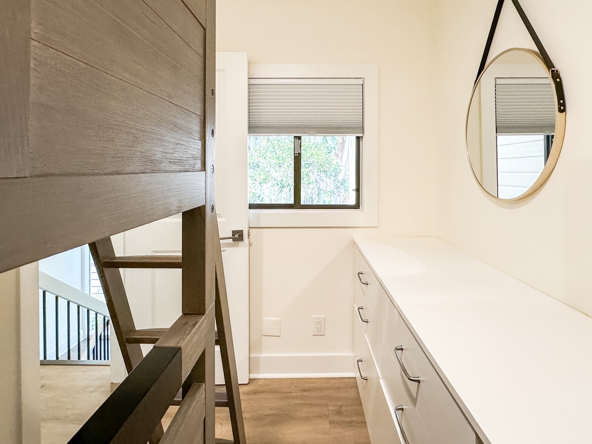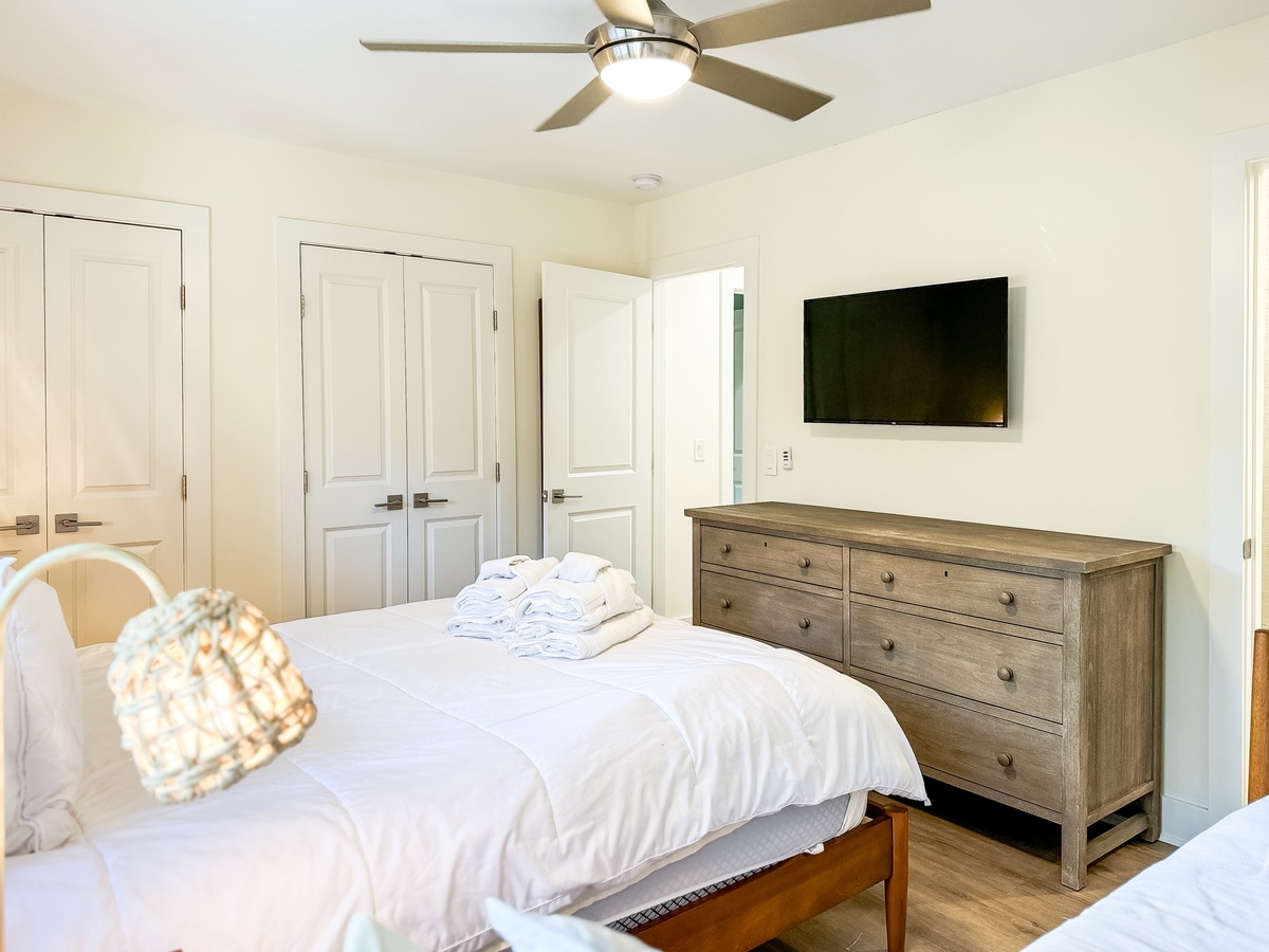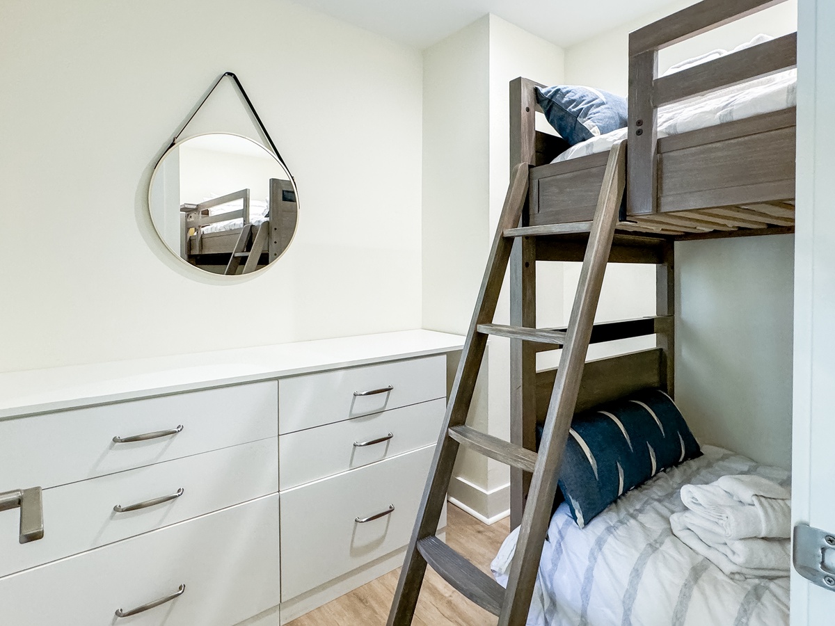 If you feel like catching a nap or curling up with a good book, you can head upstairs, where you will find bedroom 1 with a king bed and full bath, bedroom 2 with a queen bed, a twin daybed and full bath, and a separate sleeping area with a twin bunk bed. Both primary bedrooms have Smart TVs for added convenience.