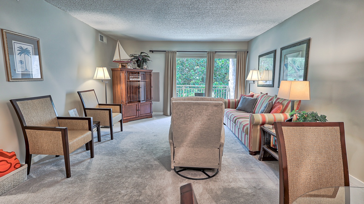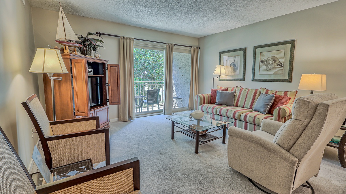 This cozy comfy villa is just across the street from the beach access that overlooks the Calibogue Sound and the always entertaining South Beach Marina Village.