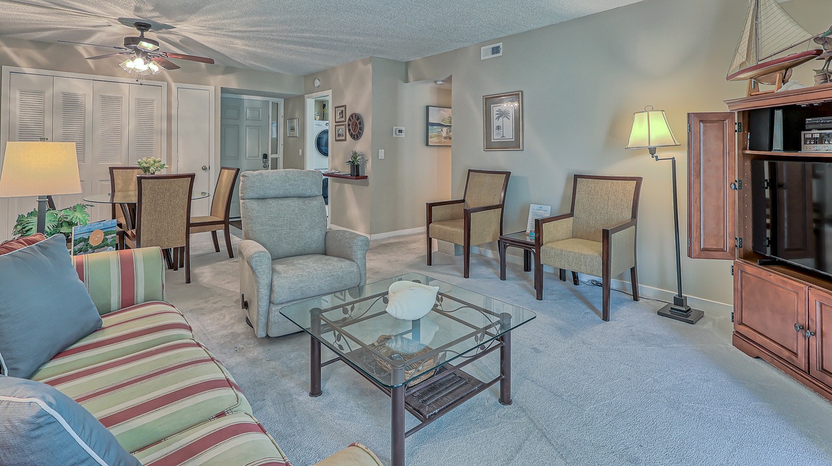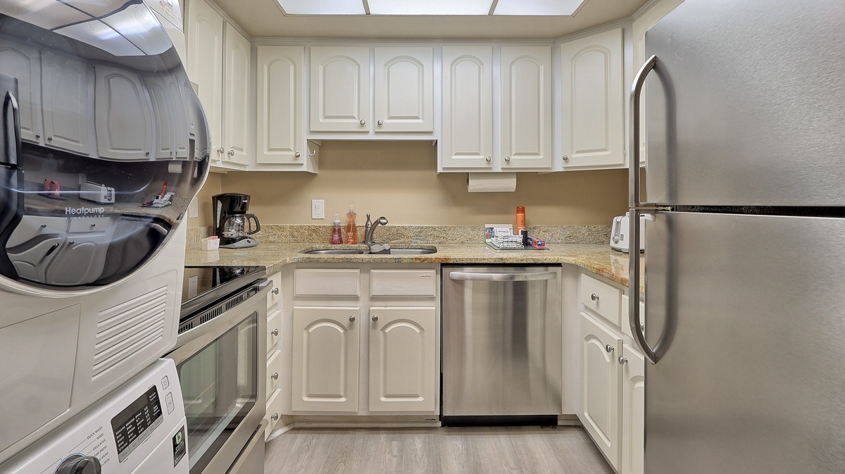 Located on the second floor, you have a lovely balcony from which to enjoy the views, dine outdoors, kick back with a good back, or enjoy wine and cheese! The inside features a primary suite with king bed and an updated full bath. There is a well-equipped kitchen with new wood flooring, stainless steel appliances, and granite countertops. Take time to relax or host game or movie night in the spacious living room that includes a queen sleeper sofa.