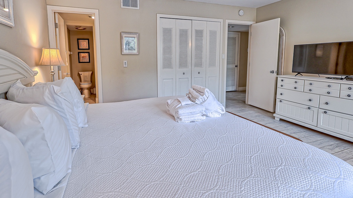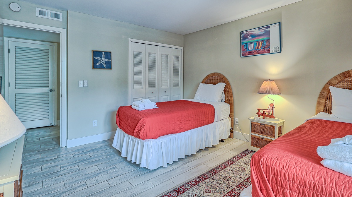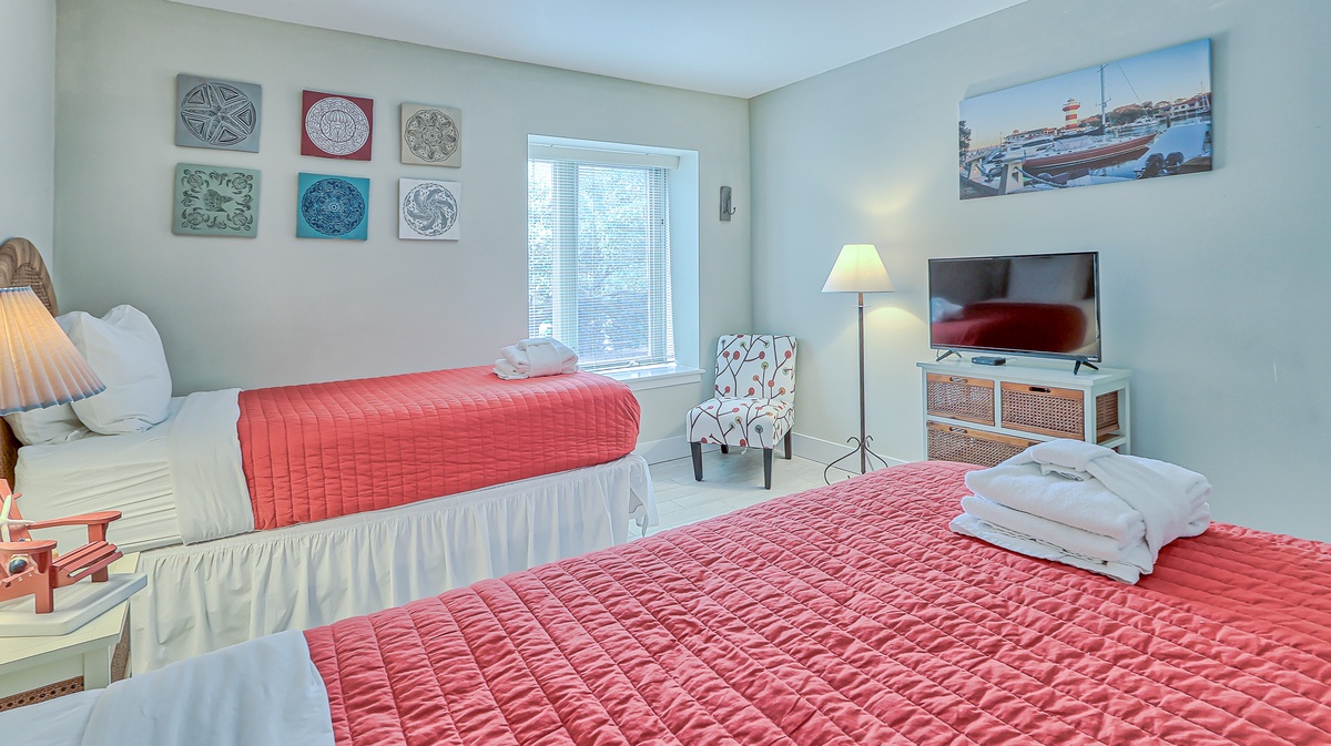 After a day at the beach or exploring the Island, you'll love having comfy cozy sleeping accommodations. Each bed is fitted with crisp and clean linens so you can tuck yourself in for a good night's rest and awake ready to enjoy the new day. The primary suite has a king bed, and bedroom 2 features two twin beds. Enjoy a vacation reimagined with host2coast, your trusted Hilton Head Island Property Management partner.