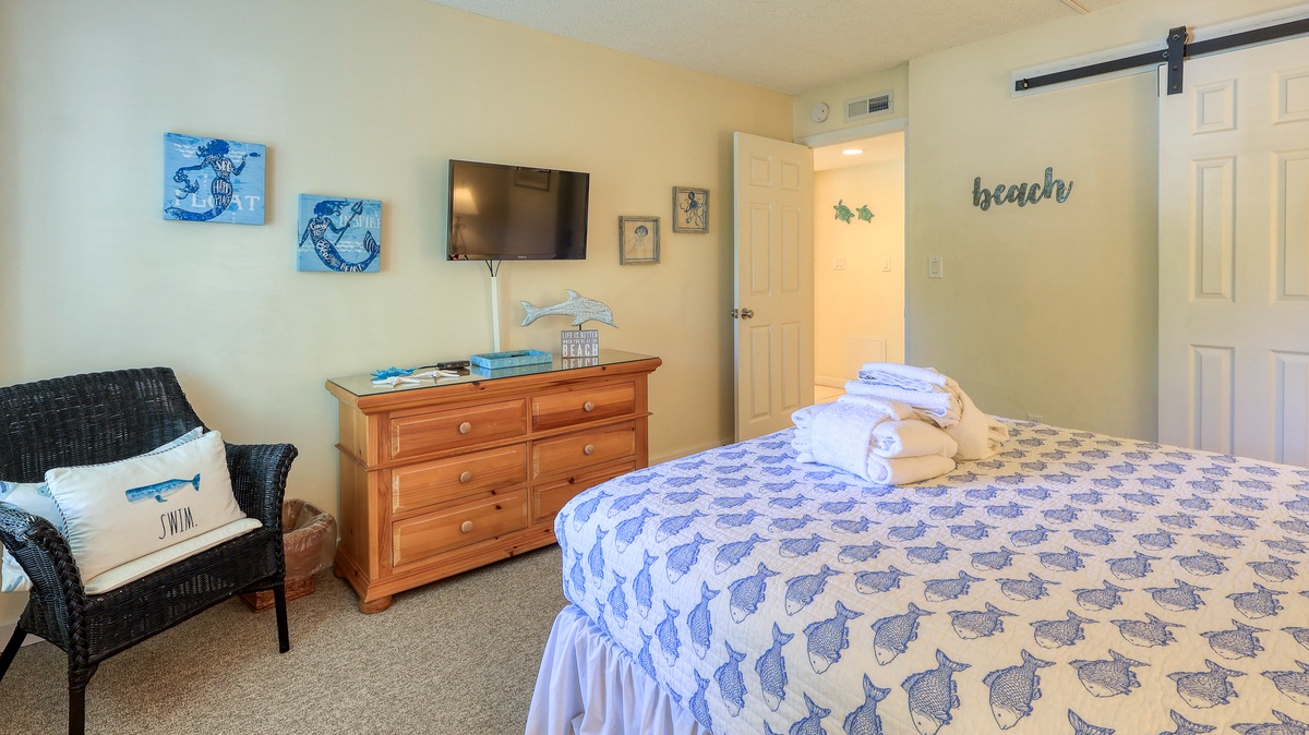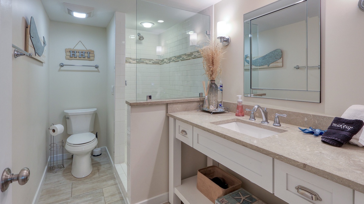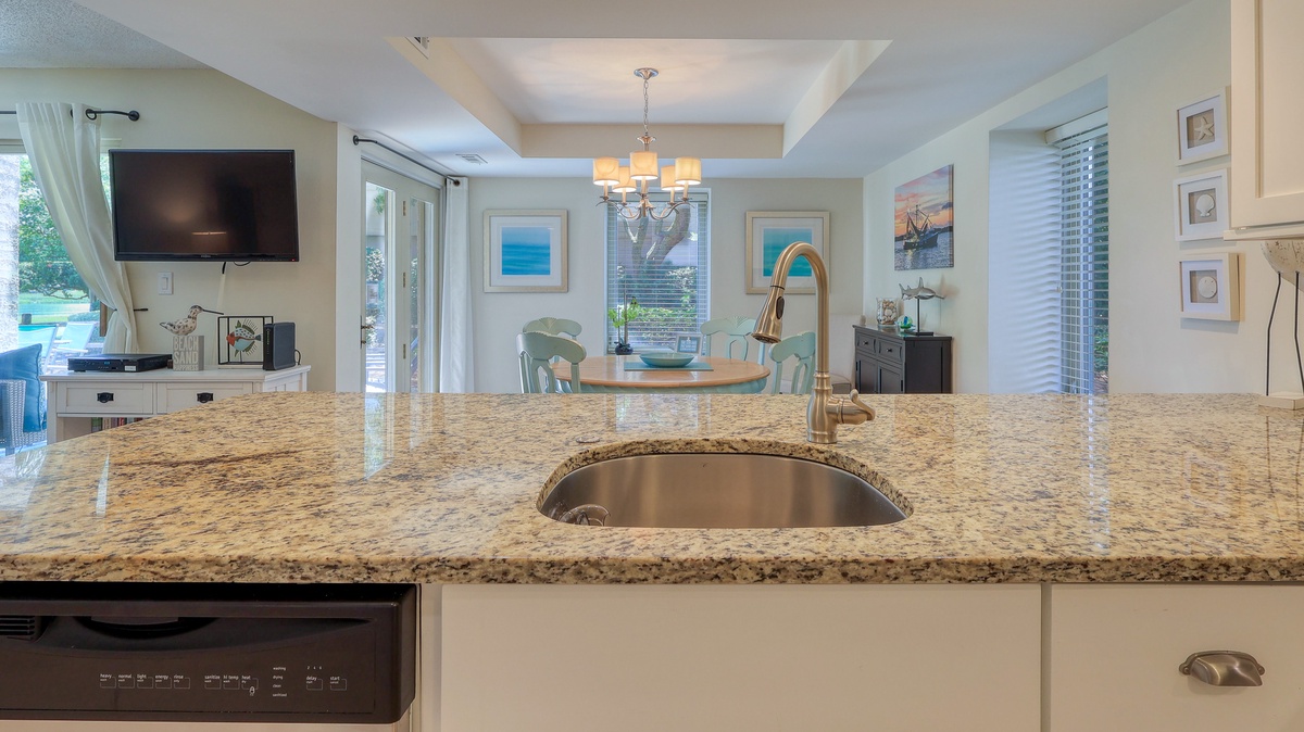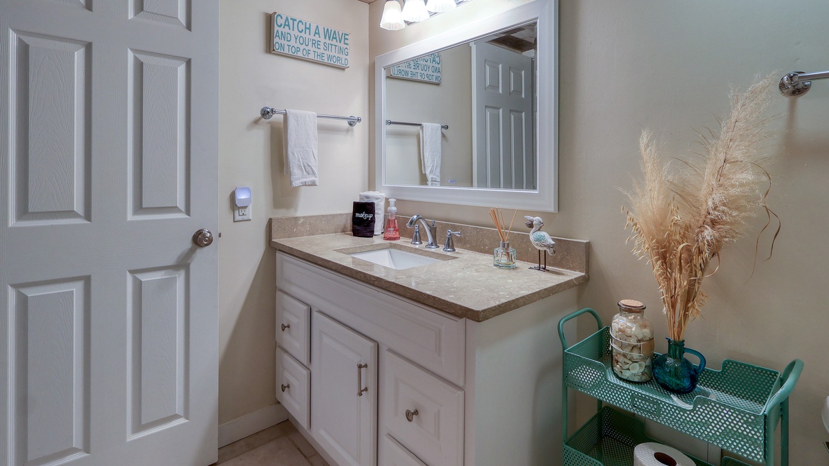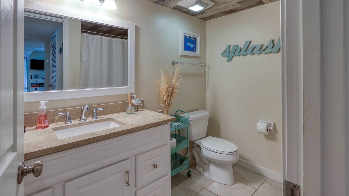 Our guests' comments make it easy to rave about 1752 Bluff Villa, a "better than fantastic" first-floor vacation home away from home that comfortably accommodates a party of 6. This 2-bedroom, 2 bathrooms completely renovated villa has a relaxing coastal feel throughout. The open floor plan allows for easy entertaining from the stunning new kitchen. Granite countertops, stainless steel appliances and new cabinets make this kitchen one you will not want to leave. Tile floors connect the whole living space with a cool, clean feeling. The comfy new sofa opens into a queen sleeper. The guest bedroom has coastal touches, a queen bed and is across the hall from an amazingly updated bathroom. The primary bedroom has a king bed and walk in shower en suite, pretty as a picture!