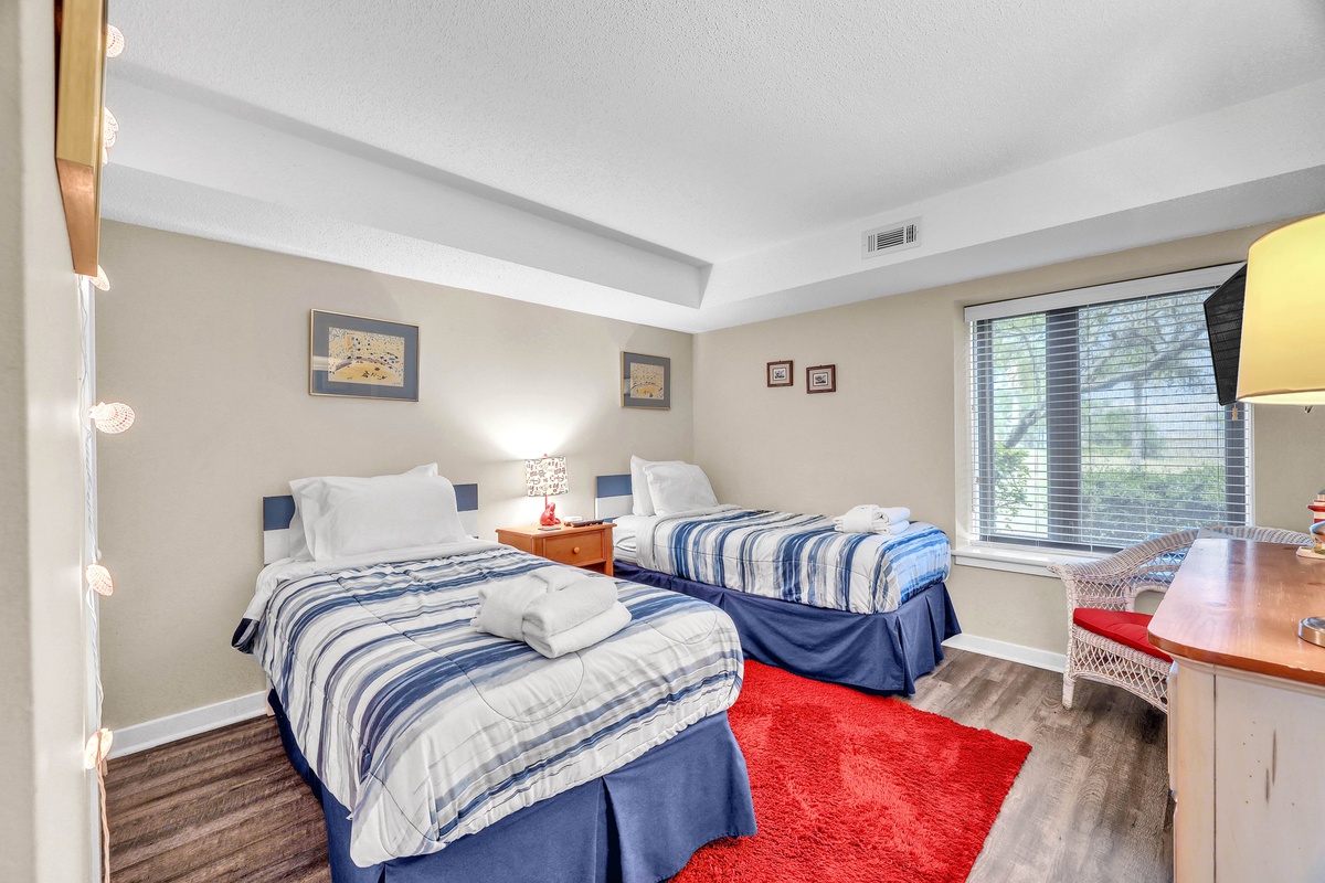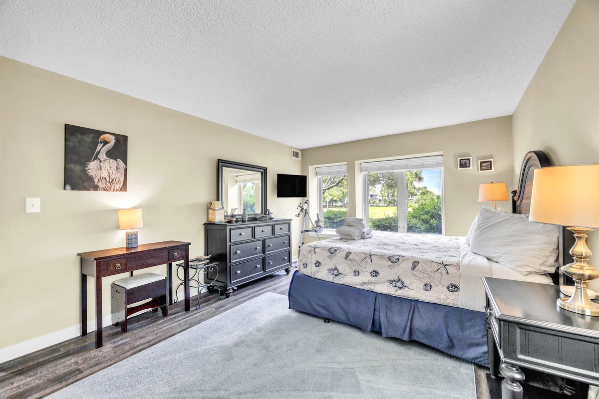 After a day of exploring the island or playing at the beach, return to fresh and clean linens on comfy cozy beds for a relaxing night's sleep. The primary bedroom is furnished with a king-size bed, and the bathroom is updated with a walk-in custom shower. The guest bedroom is furnished with a set of twin beds and the bathroom is also updated with plenty of storage space. Enjoy gorgeous views of the waters of Braddock Cove and views of the Harbor Town Lighthouse. Wake refreshed and ready for another day of fun on Hilton Head Island. "Better than fantastic! Our family really enjoyed the quiet life in this beautiful South Beach area villa. It is in a great location with the ocean, sand and sunsets just a short walk across the street. Or head in the opposite direction for tennis, swimming, bike rentals and South Beach restaurants and shops. Every room was tastefully and comfortably appointed, and the kitchen was well stocked for home cooking. We can't wait to come back!"