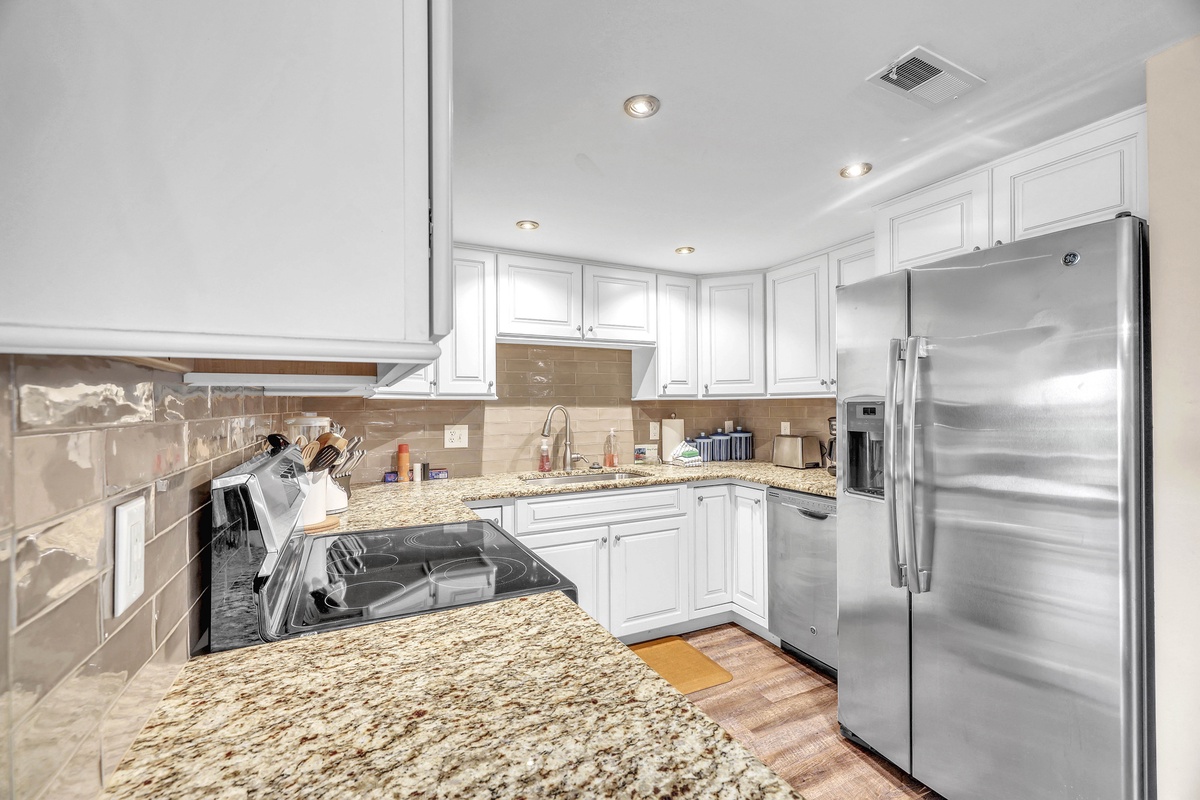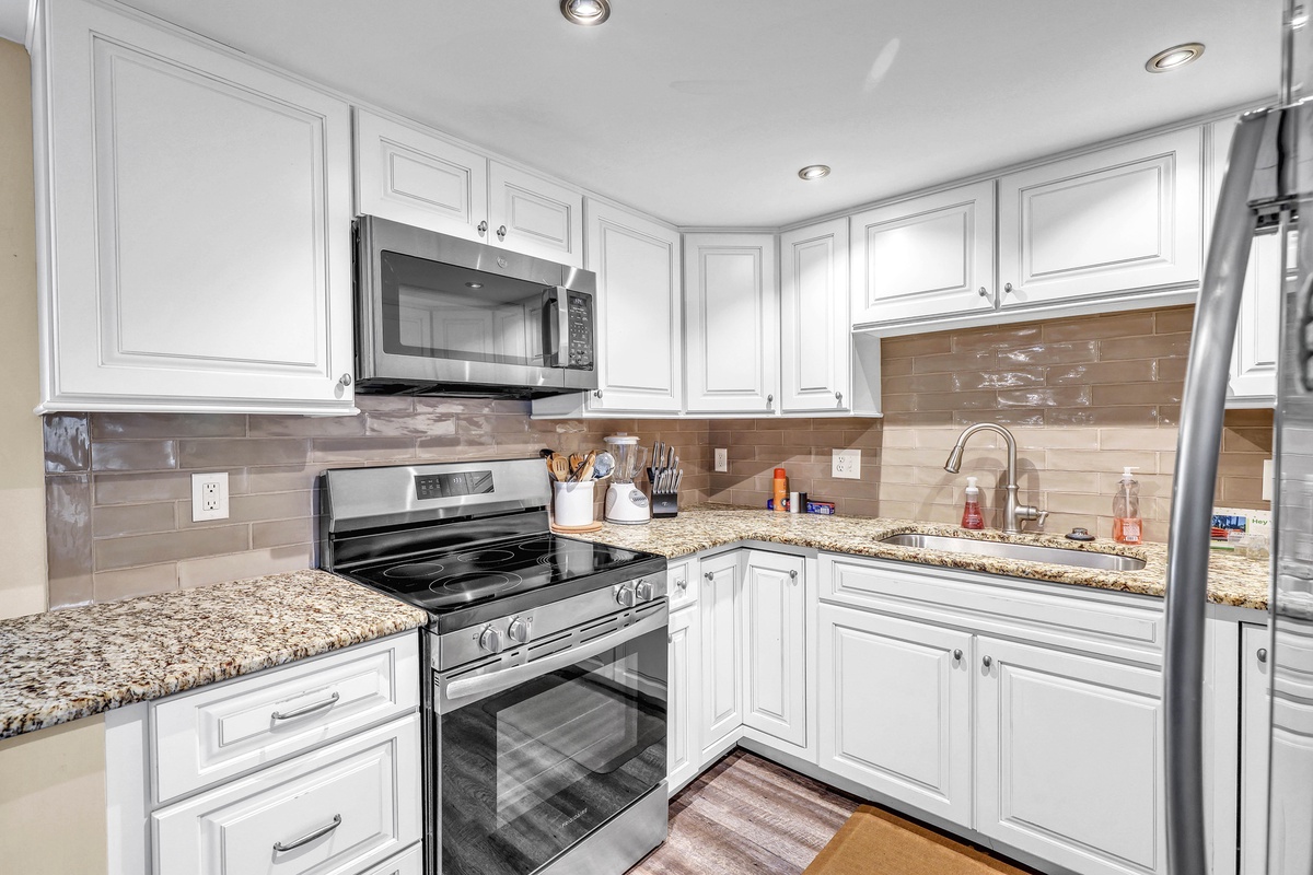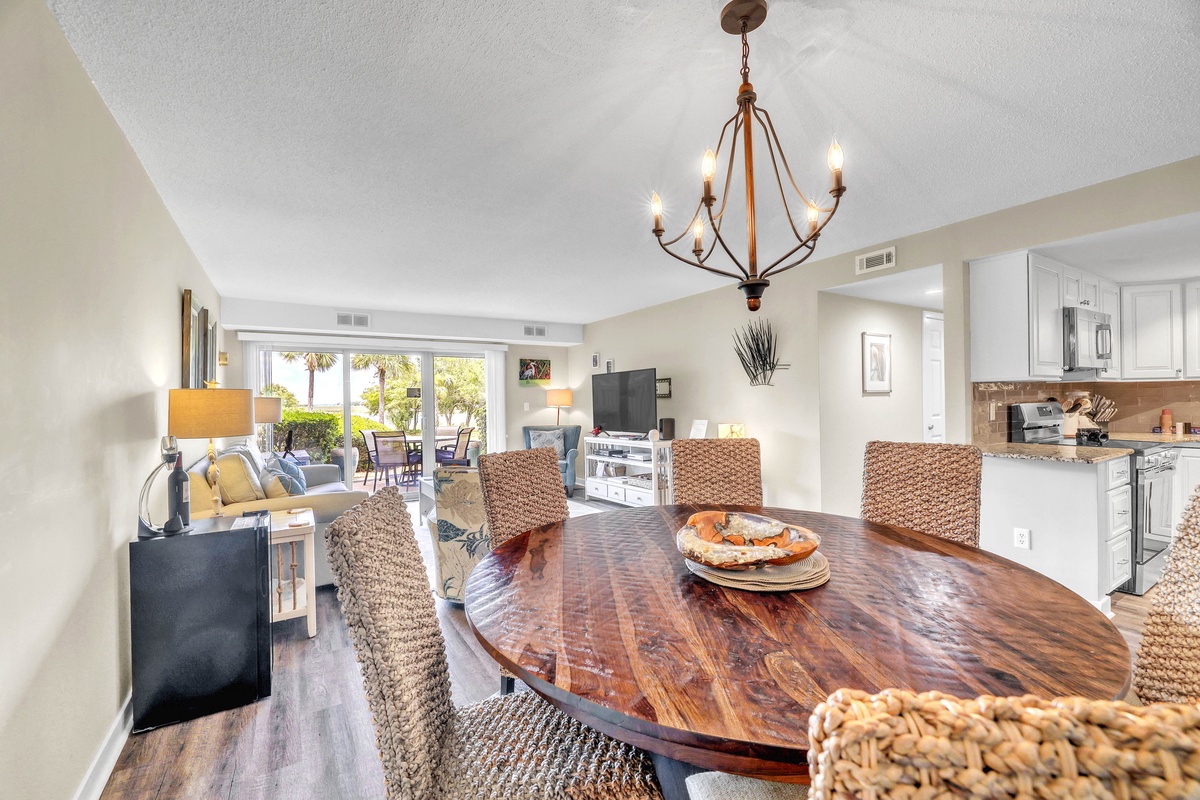 Enjoy this luxury 2-bedroom, 2-bath vacation getaway with a fully equipped and recently renovated kitchen that includes granite countertops and stainless-steel appliances. The kitchen opens into the dining room and the living room making it perfect for entertaining. Maybe host a movie or game night! For your added convenience, there is a laundry closet should you need to freshen up your beachwear. This 1st-floor villa also has a lovely private patio perfect for enjoying outdoor dining, morning coffee, or snacks.