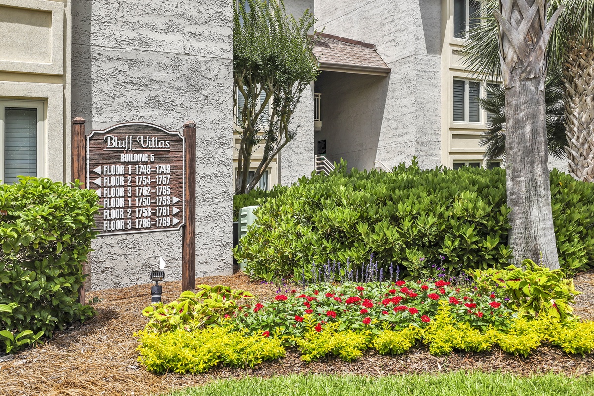 1752 Bluff Villa is located in Building 5, 1st Floor, Stairwell B. Please note: There are exterior steps in all Bluff Villa buildings to access ALL floors including first floor villas.
