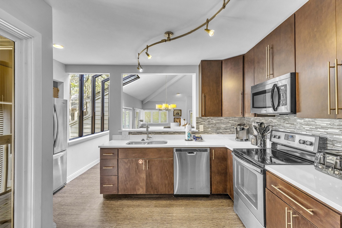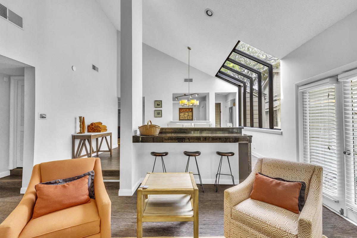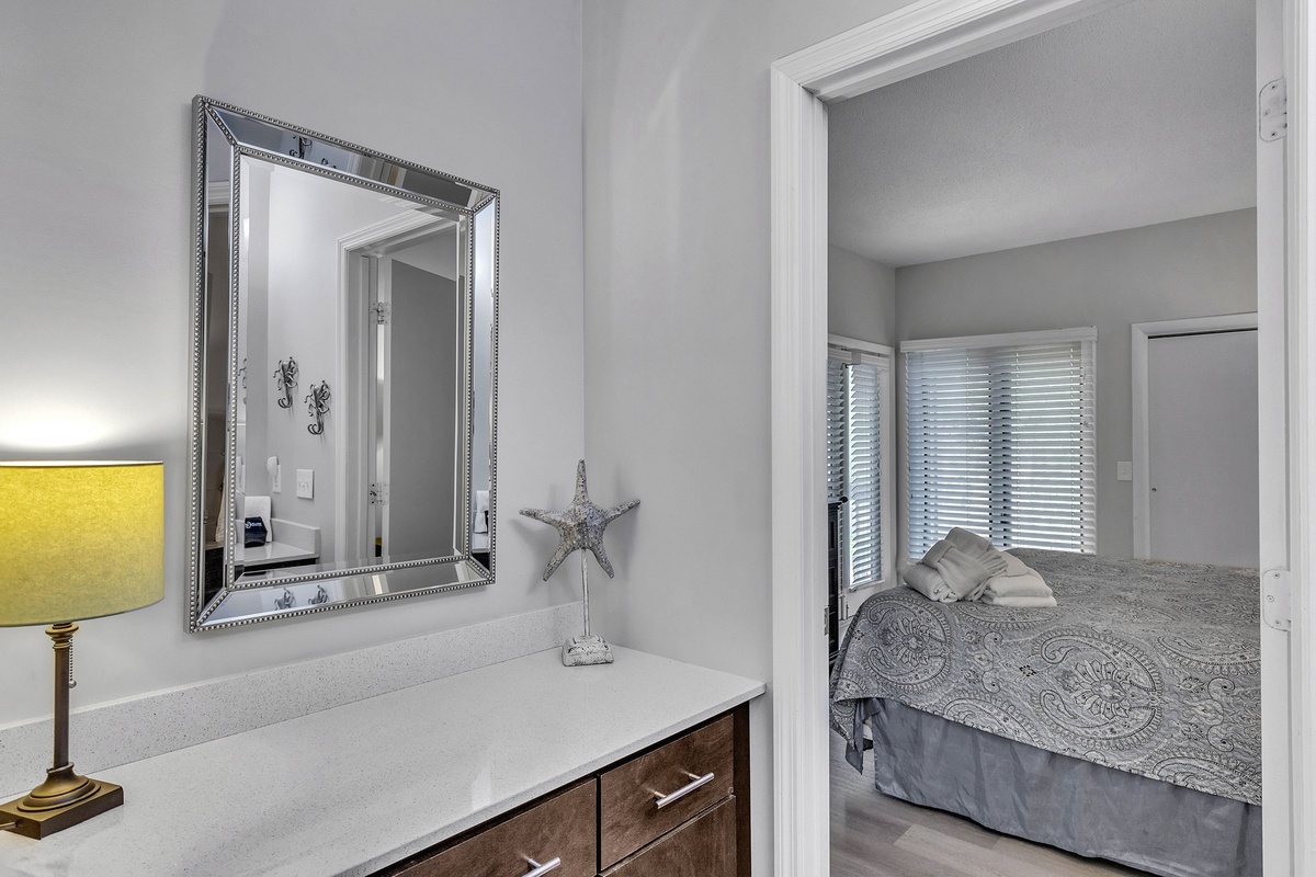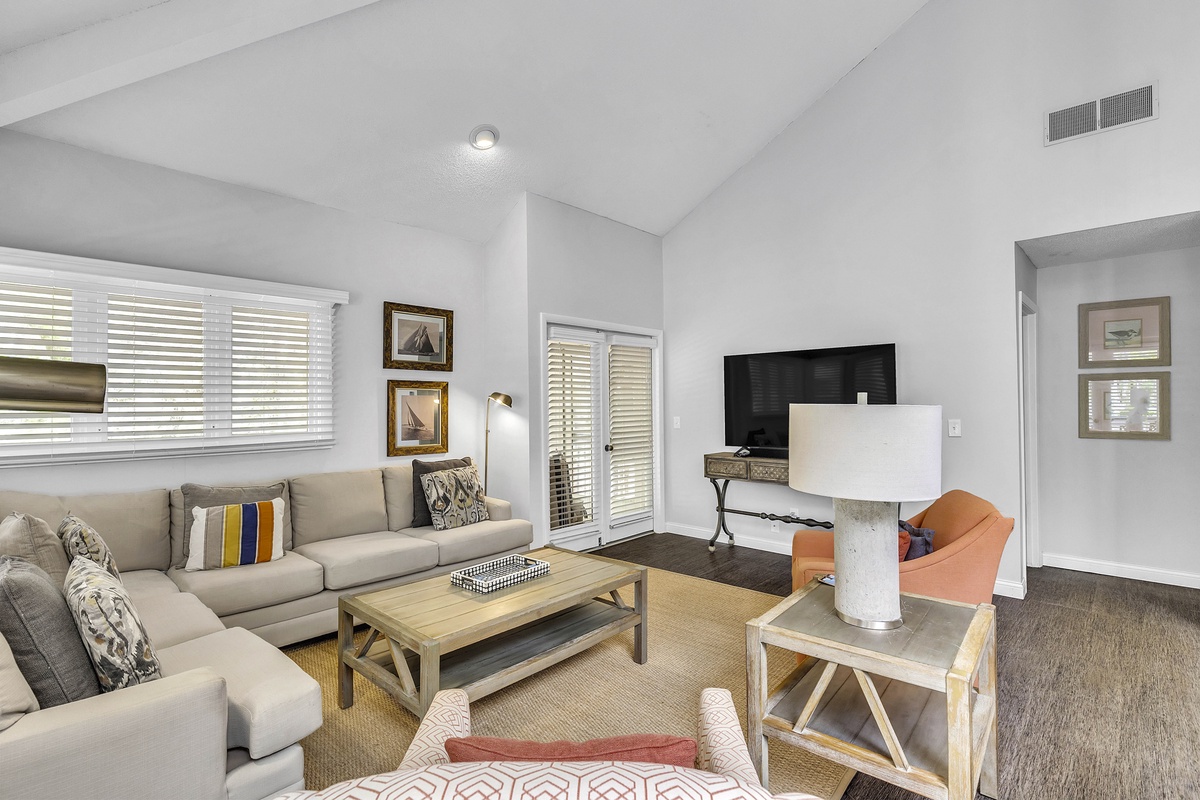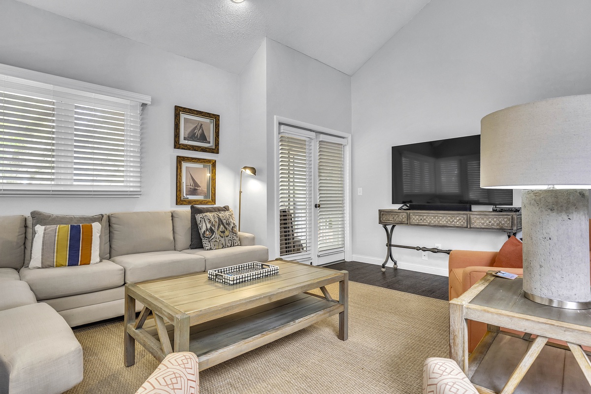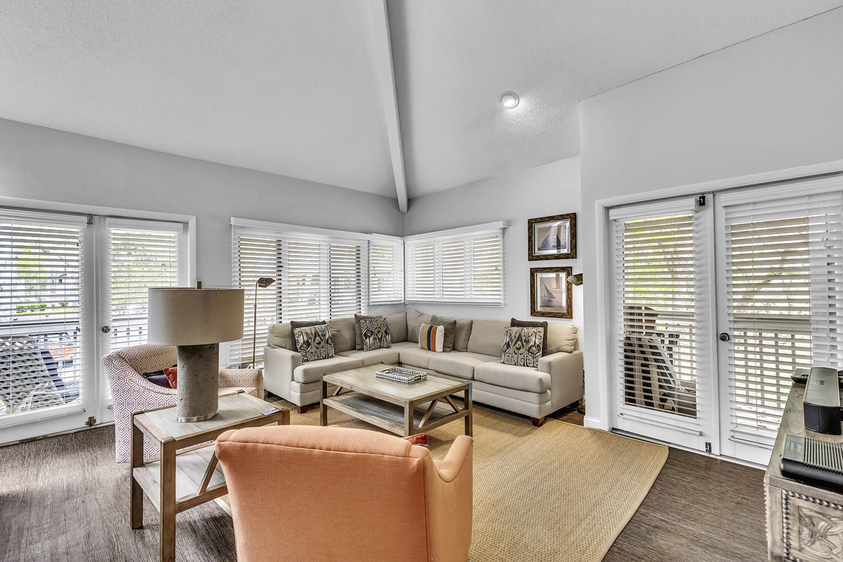 Step inside this beautifully designed 2-bedroom, 2-bathroom second-floor flat, where natural light pours in through expansive windows, creating a warm and inviting atmosphere. The spacious open-concept great room and soaring ceilings offer a relaxing retreat after a day of exploration. As an end unit, you’ll enjoy the added benefit of extra privacy and peaceful surroundings. Unwind on your private wrap-around deck, accessible from both the master bedroom and the living area and take in the breathtaking views of the lush lagoon and the scenic golf course.