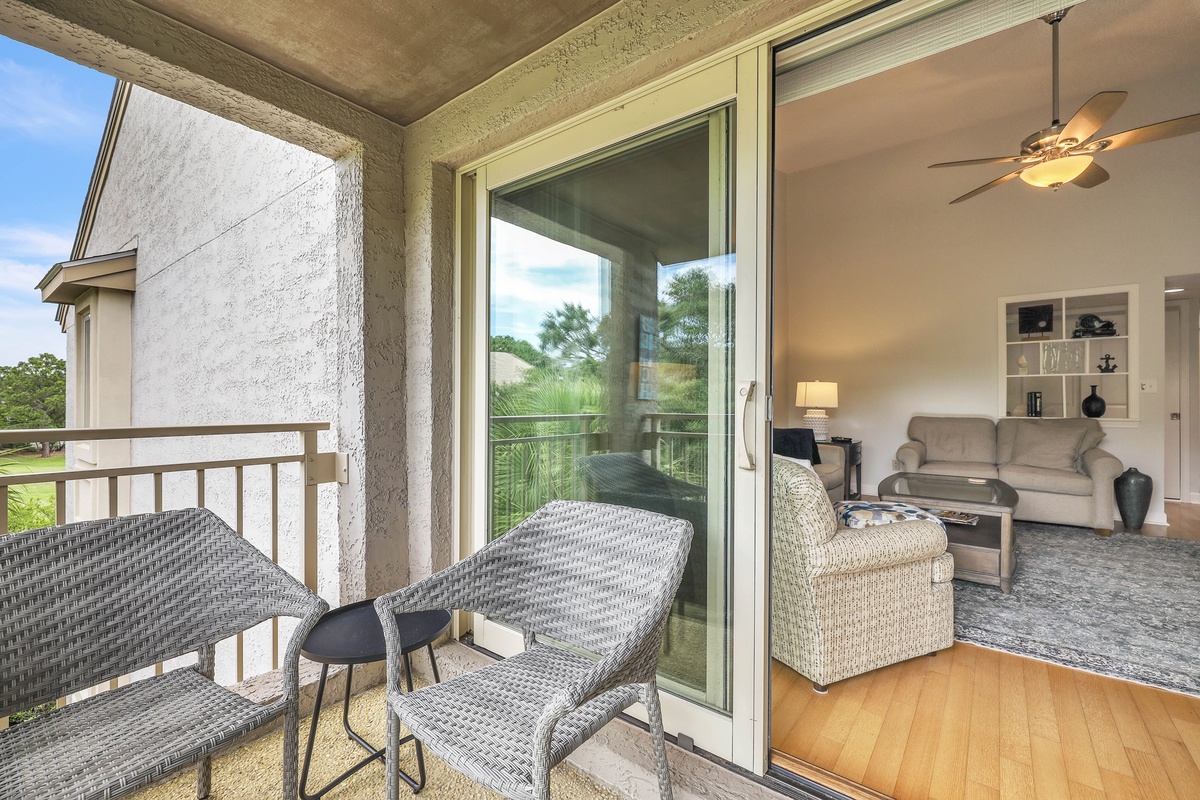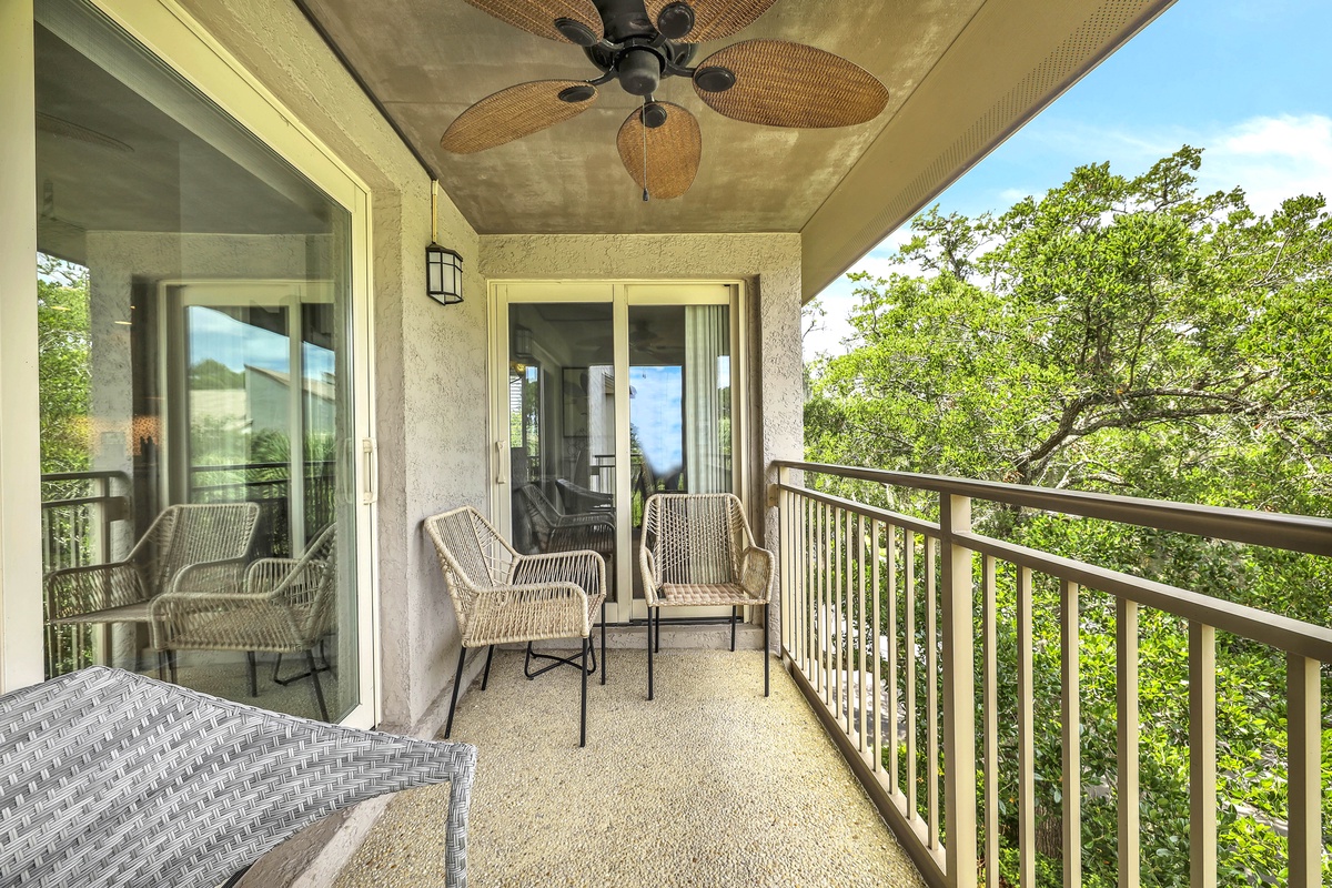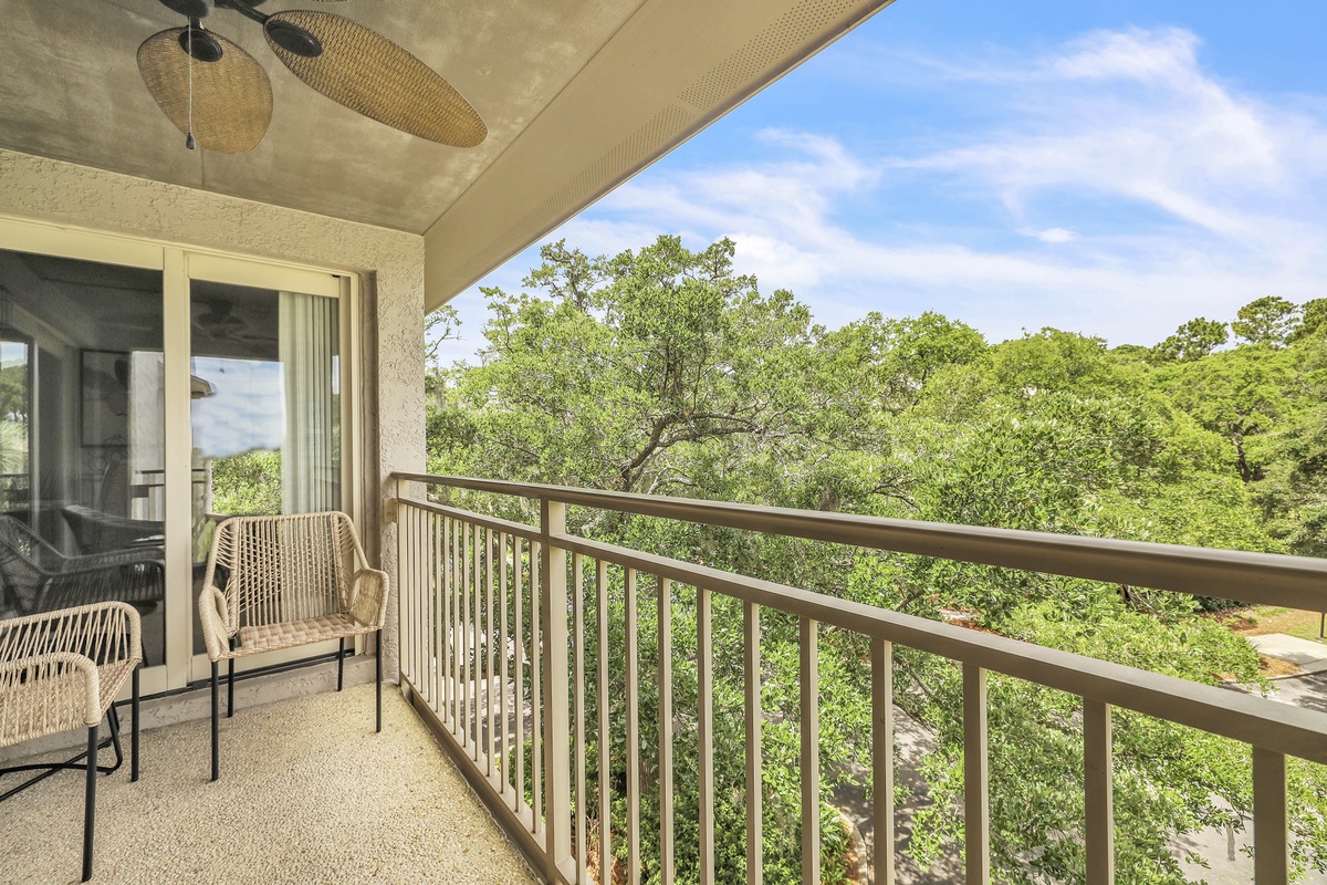 Unwind on the private covered balcony outfitted with wicker lounge chairs and a ceiling fan, perfect for your morning coffee or an evening glass of wine as you overlook the peaceful treetops. Just outside your door, enjoy easy access to all that Sea Pines has to offer—beaches, bike trails, the Salty Dog Café at South Beach Marina, tennis, golf, and much more! Enjoy a vacation reimagined with host2coast, your trusted Hilton Head Island Property Management partner.