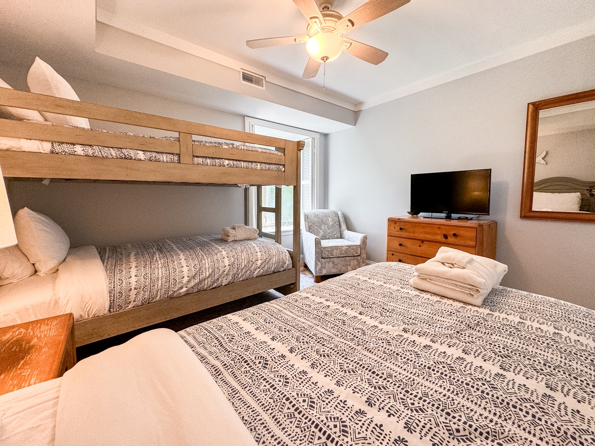 Our visit to Hilton Head was absolutely perfect, and the accommodation at your condo was ideal for our family of six. One of the highlights for us was being on the ground level, which made coming and going so much easier—especially with all of our beach gear. We thoroughly enjoyed our morning coffee on the two Adirondack chairs on the back porch; it was a delightful way to start each day. Inside the condo, the amenities were exactly what we needed to get through the week comfortably. The sleeping arrangements were great for our kids, who particularly loved the bunk bed and twin bed combo. The nicely sized laundry room also provided some extra space for our youngest to take naps without being disturbed. Overall, we highly recommend this place and look forward to being back soon!Anonymous U from Pittsburgh - Posted: 7/14/2025