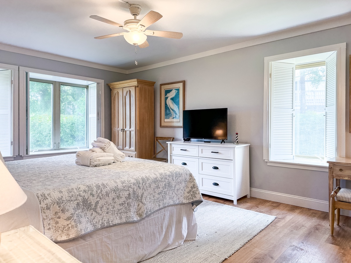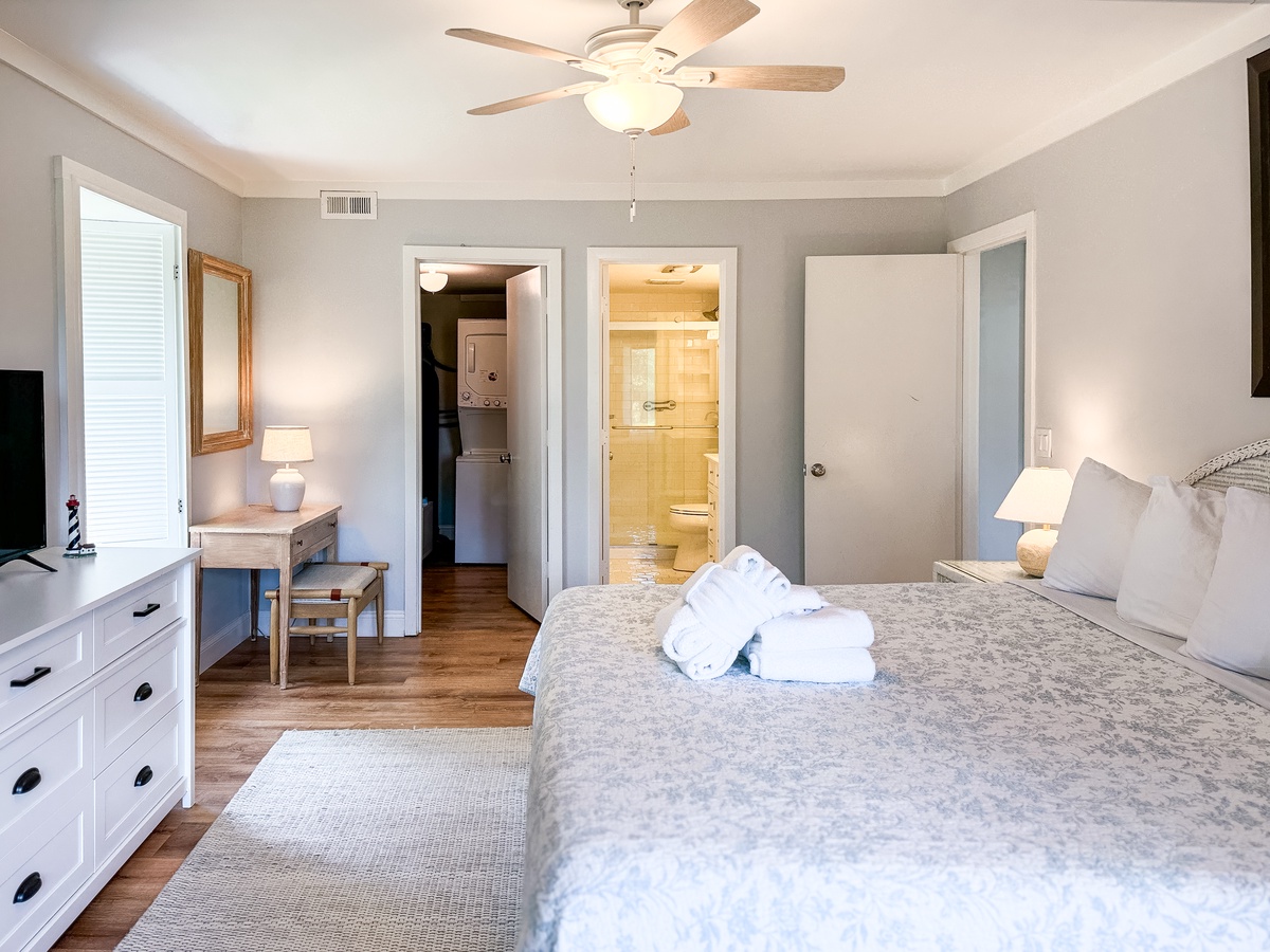 We have come to Hilton Head 6 times now and this was by far our favorite condo. It is beautifully decorated and you feel right at home at the beach. Excellent and short walk to the beach and the Salty Dog but the neighborhood is very quiet and peaceful. Awesome smart tvs, fully stocked kitchen and bathrooms (they include hand soaps!!). Everything is very comfortable and I loved the walk in closet with washer/dryer. My only suggestion would be to add a floor length mirror 😊 overall we had a wonderful stay!!!Katie S., Marion - Posted: 9/9/2023