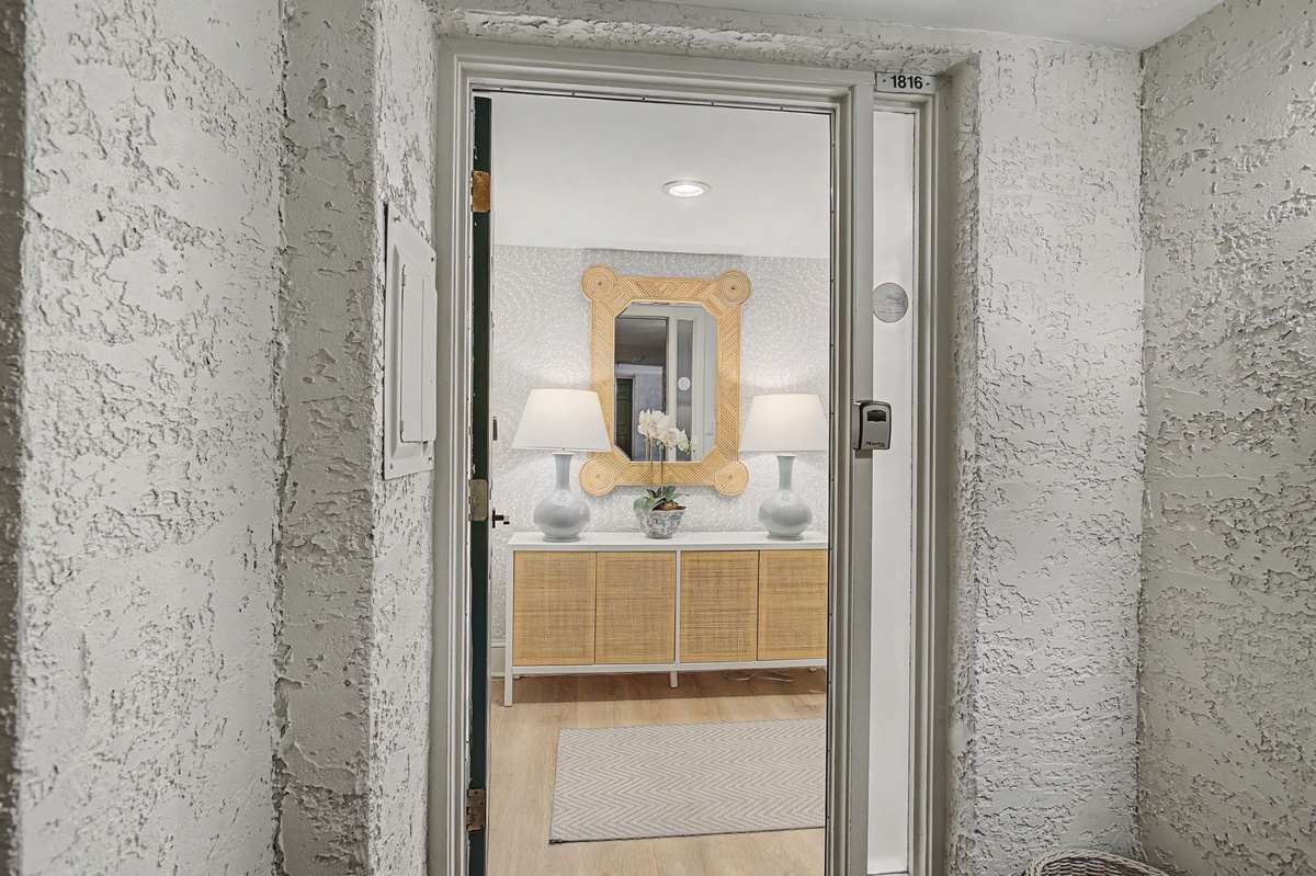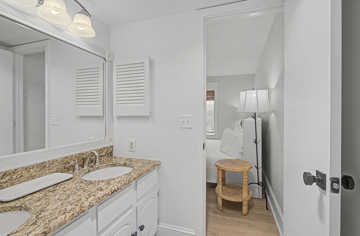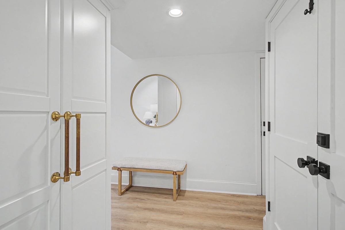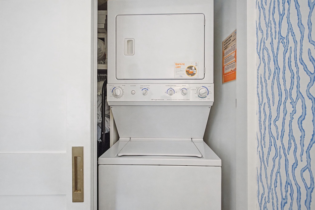 The primary suite is a calm retreat with king platform bed, spacious closets and an adjustable desk for the remote worker. The guest bedroom shines for any age, with a queen roll arm bed and full-size trundle, so there is room for everyone. Plus, the nest chair will be in high demand! There is a stacked washer and dryer in the guest closet and the bath just across the hall. The entry hall has a built-in mud room locker for all your beach gear.