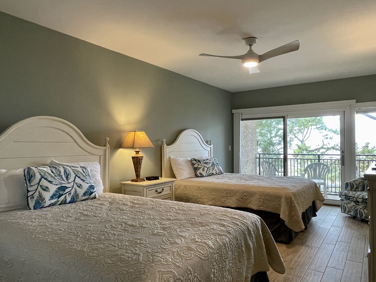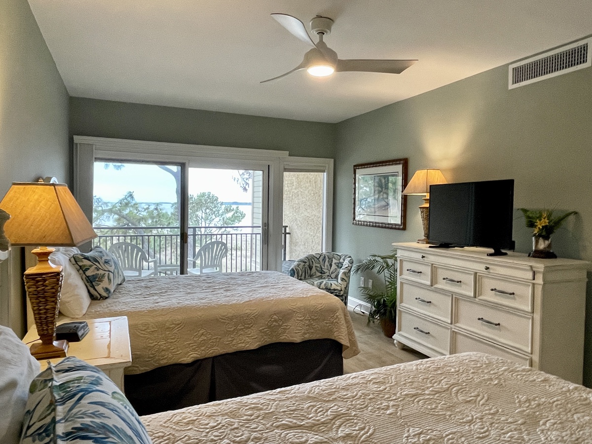A complete renovation! Who doesn’t love a gorgeous view? With this 2-bedroom, 2-bathroom villa, you get the perfect view of the Atlantic Ocean and the Calibogue Sound from the large wrap-around balcony. This will definitely become your vacation Happy Place!