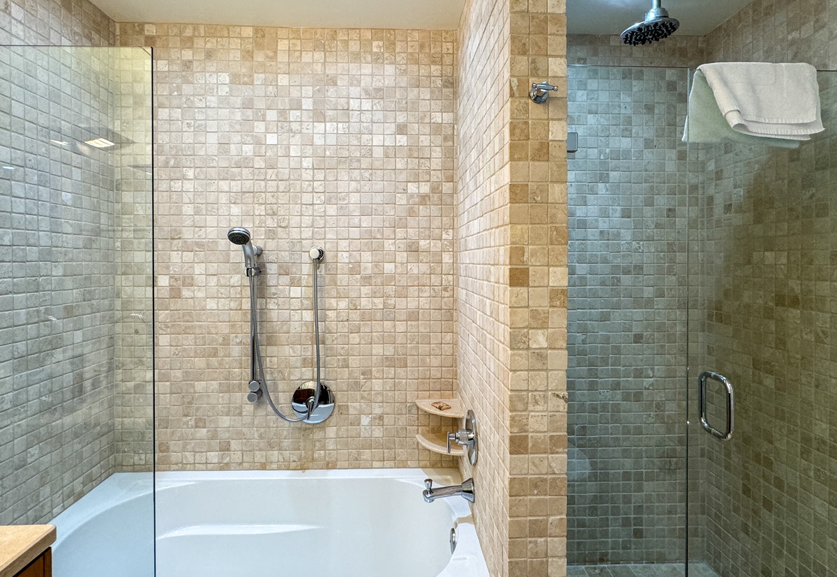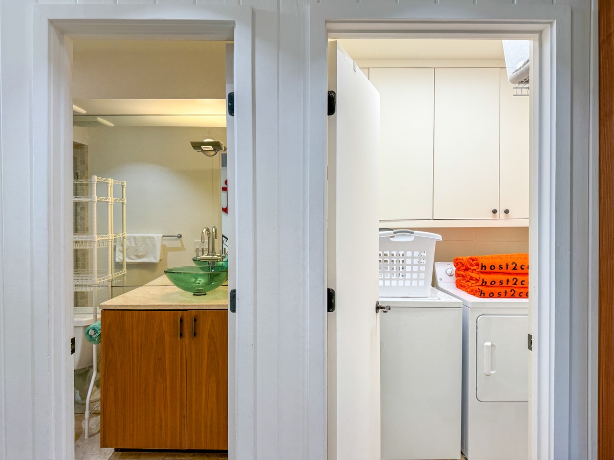 The three bedrooms are tastefully decorated and designed for comfort, with plush bedding and high-quality linens. Both upstairs bedrooms feature king beds with en-suite bathrooms. The lower level bedrooms have a set of twin bunk beds, a queen bed, and a living area with a queen sofa sleeper—ideal for kids or a second family and offer plenty of space for guests to relax and unwind.