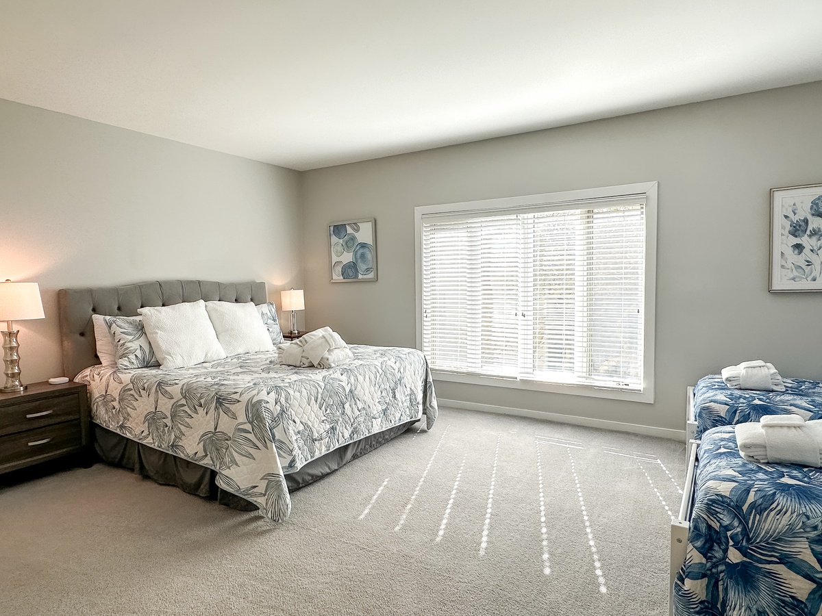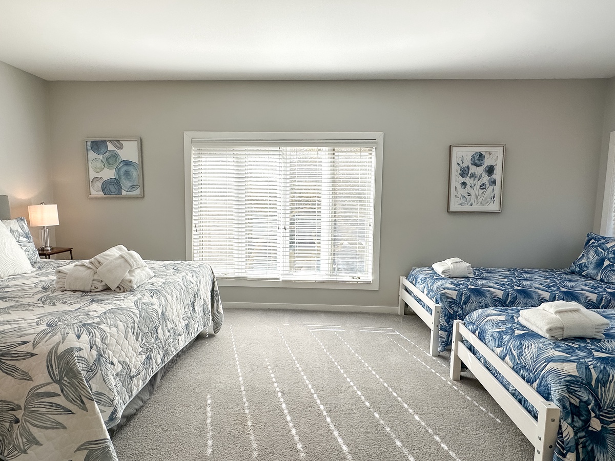 Three spacious bedrooms provide comfy sleeping arrangements for up to a party of 8, so bring the whole gang! Each bedroom has a king bed with an additional 2 single beds in bedroom 3. Bedrooms 1 and 2 have en suites and bedroom 3 has access to the full hall bath.