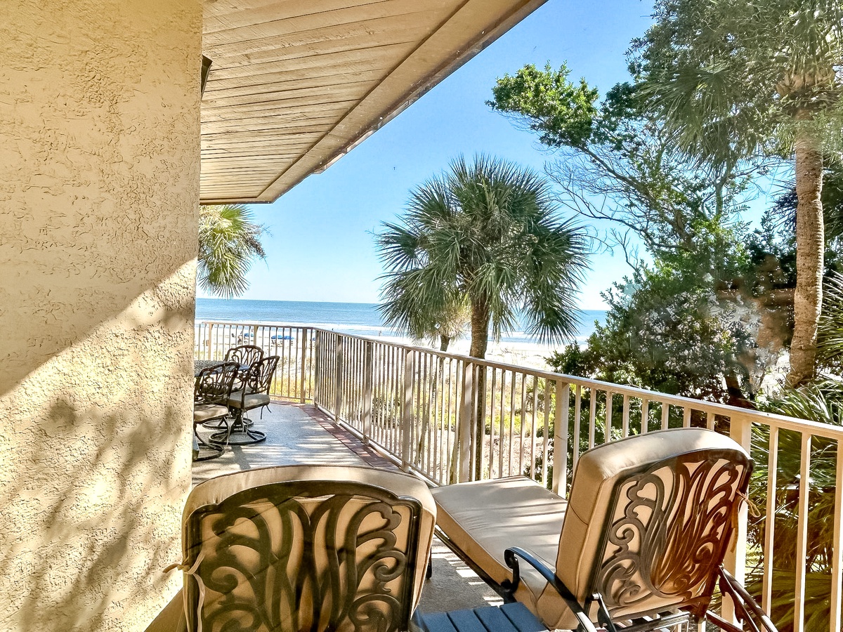 "A great beachfront condo. We found it exactly as advertised - 3 comfortable bedrooms (2 with en suite baths, plus another full bath adjacent to the third BR). Very clean and well-maintained. Really nice patio overlooking the beach for breakfast and happy hour. The location is convenient to golf, shopping and other amenities." – Jim L.