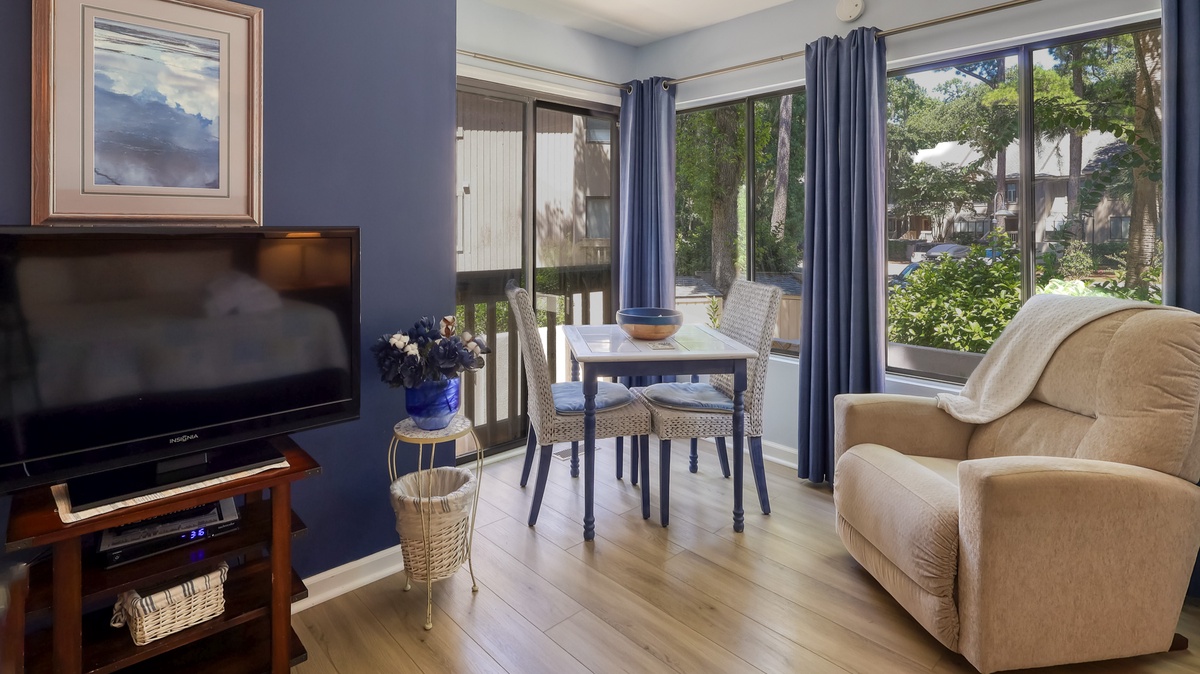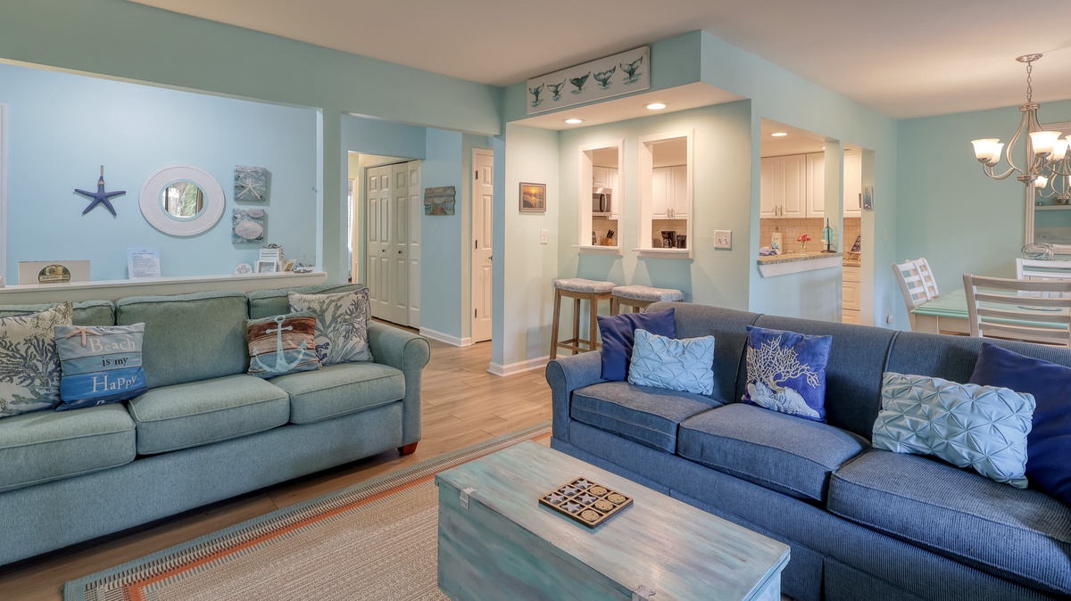 204 Beachwalk Villa has been beautifully updated to offer a carefree, fun-filled family getaway in the gated Shipyard community on Hilton Head Island. With bright aqua walls, coastal accents, and driftwood-style flooring, the villa radiates a relaxed beach vibe from the moment you step inside. The spacious open layout, combined with its unbeatable location just steps from the beach and pool, makes it the ideal spot for creating unforgettable memories. As a first-floor, one-level condo, there are no stairs to climb—just easy, breezy living. And for added comfort, the villa features a BRAND NEW HVAC system installed in June 2025, ensuring a cool and refreshing retreat no matter the season!