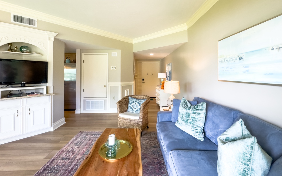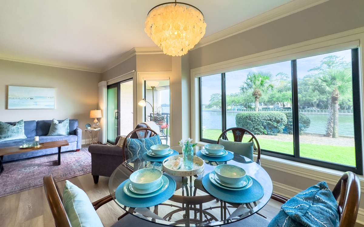 Come and relax in this spacious ground-floor villa with easy access to amenities like a pool and hot tub with amazing sunset views overlooking Broad Creek! This 1-bedroom villa is fully equipped with a kitchen, living room with a comfortable queen sleeper sofa, and dining area with gorgeous water views, both inside and out, all to yourself! You can sit at the dining table or relax on the balcony and experience a breathtaking sunset overlooking the Broad Creek deepwater channel and Intercostal Waterway. You can also enjoy front-row views of the Harbourfest fireworks on summer nights! You'll be mesmerized by the views of water life and boating activity, and you can watch the dolphins, manatees, and water birds from inside picture windows or out on the balcony!