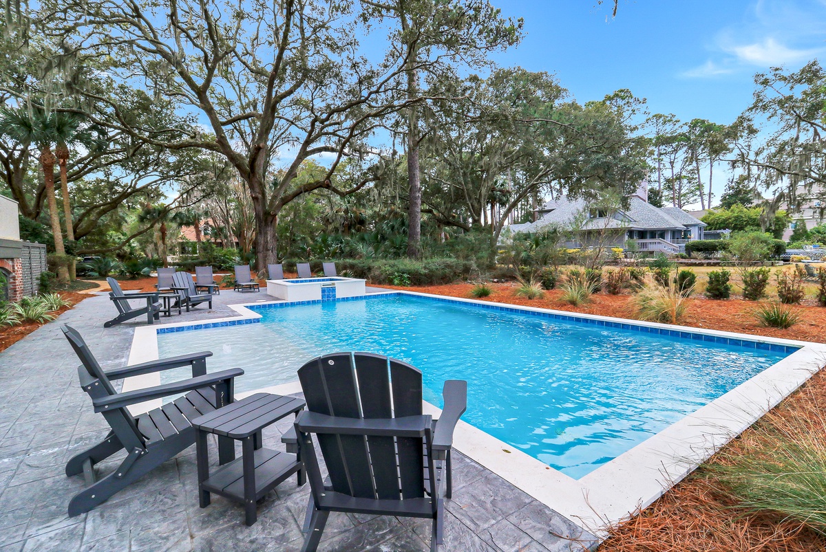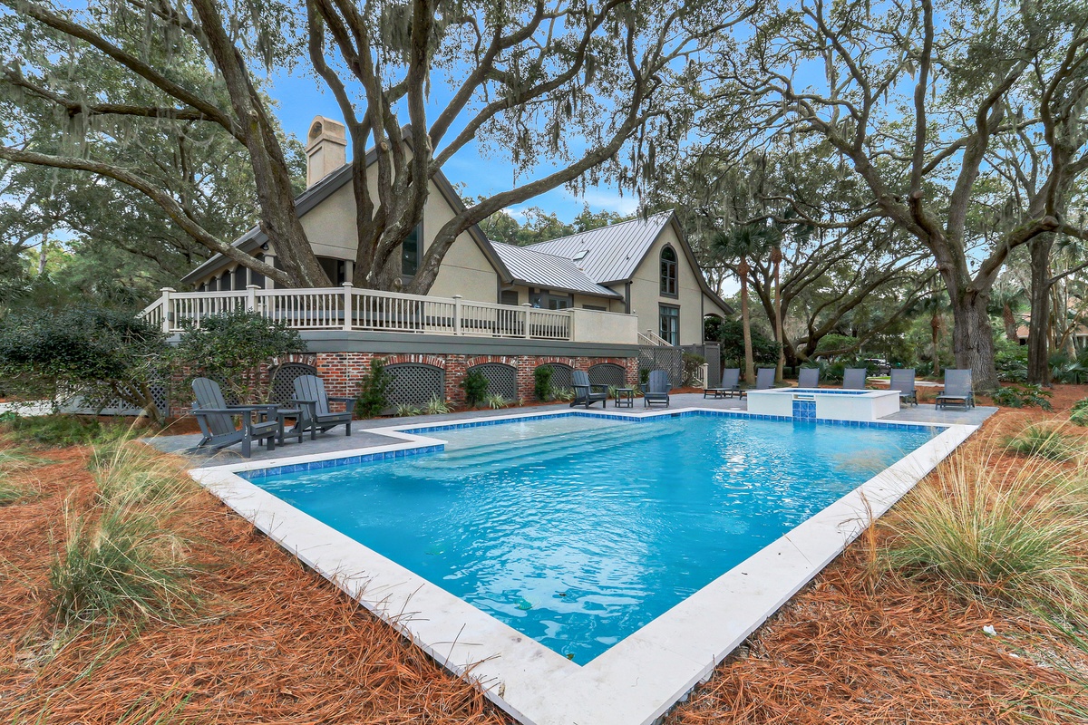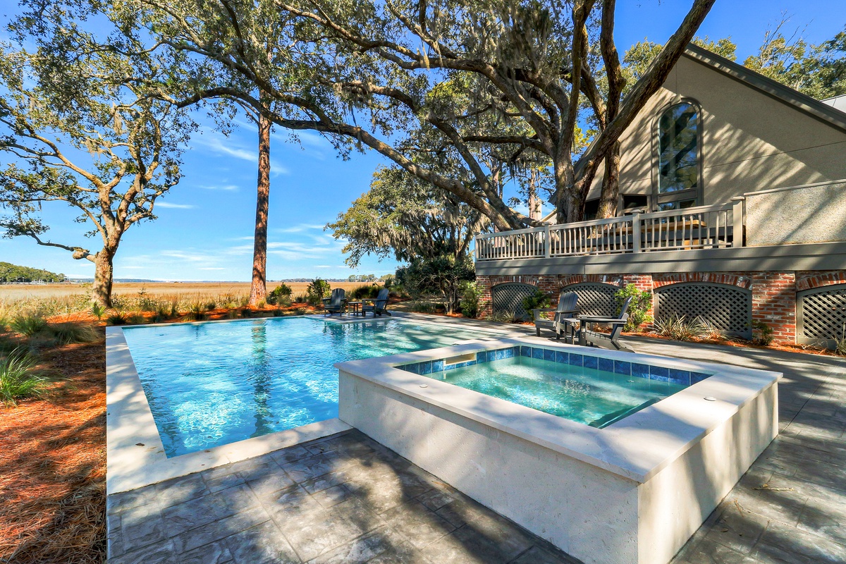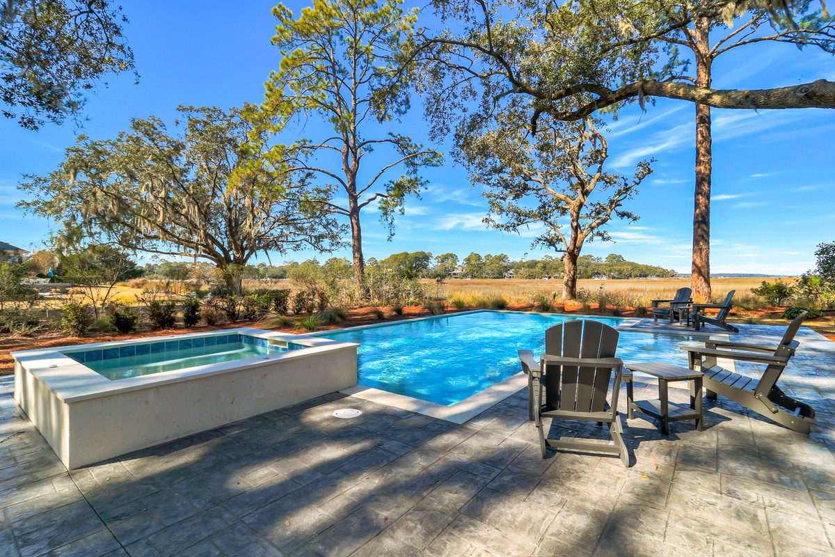 Outdoor living is a highlight, with multiple spaces designed to soak in the scenery and evening sunsets. Enjoy the screened-in porch, spacious back patio, or unwind in the brand-new oversized pool and spa overlooking the marsh. The peaceful surroundings and expansive grounds offer a sense of seclusion while still being within Sea Pines. Whether hosting sunset cocktails or enjoying a quiet morning coffee, every moment feels elevated.