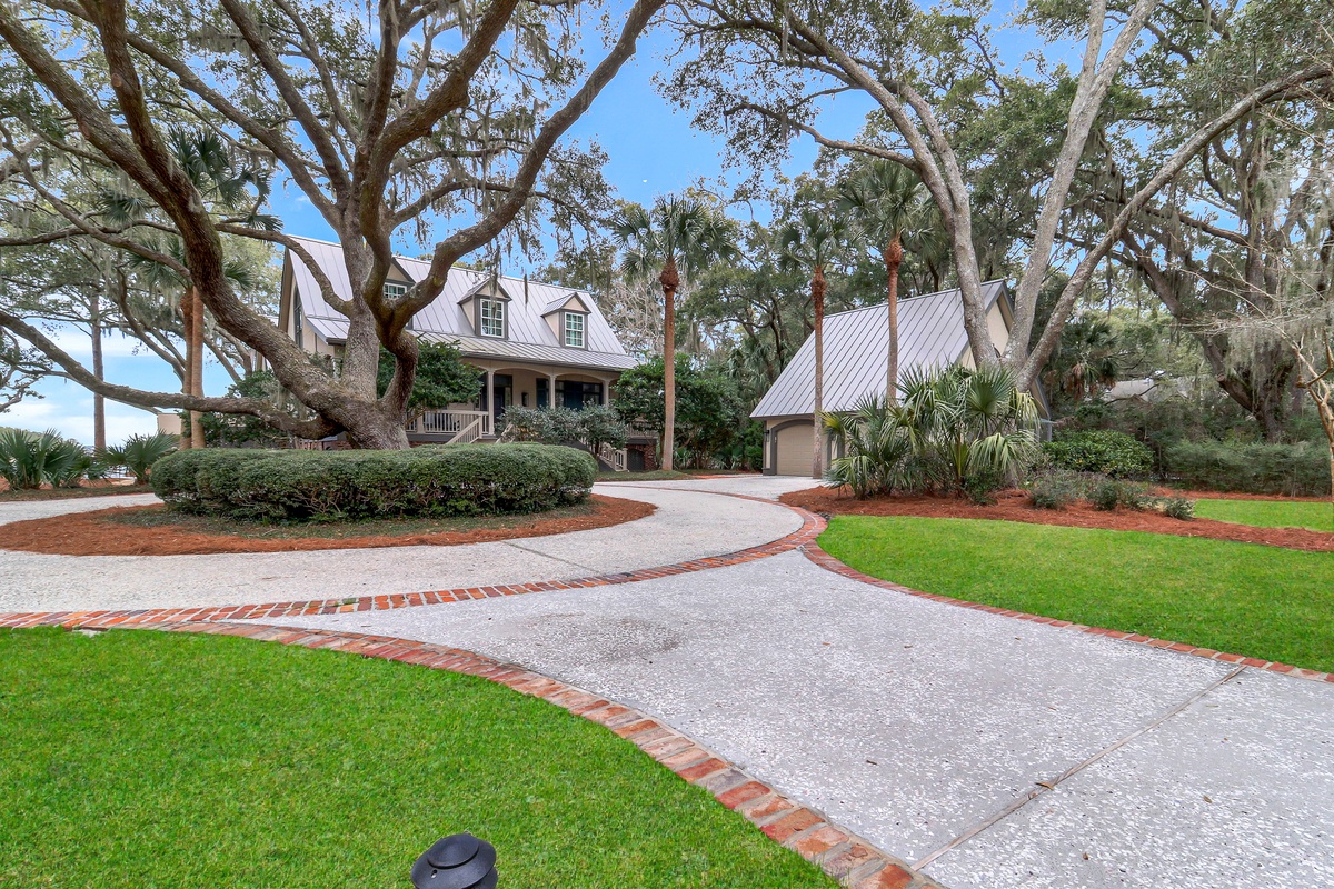 Welcome to 22 Oyster Landing, a classic Lowcountry home set on a quiet street in Sea Pines Resort with breathtaking views of the marsh and Calibogue Sound. Nestled on more than an acre beneath moss-draped oak trees, this property immediately captures your attention with its privacy, scale, and natural beauty. The sweeping vistas create a true sense of coastal serenity rarely found on the island. From sunrise to sunset, the setting alone makes this home unforgettable.