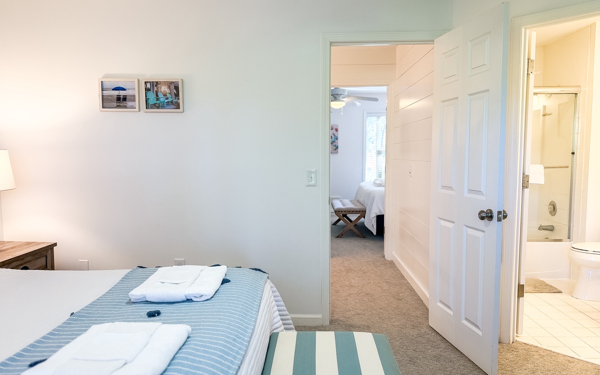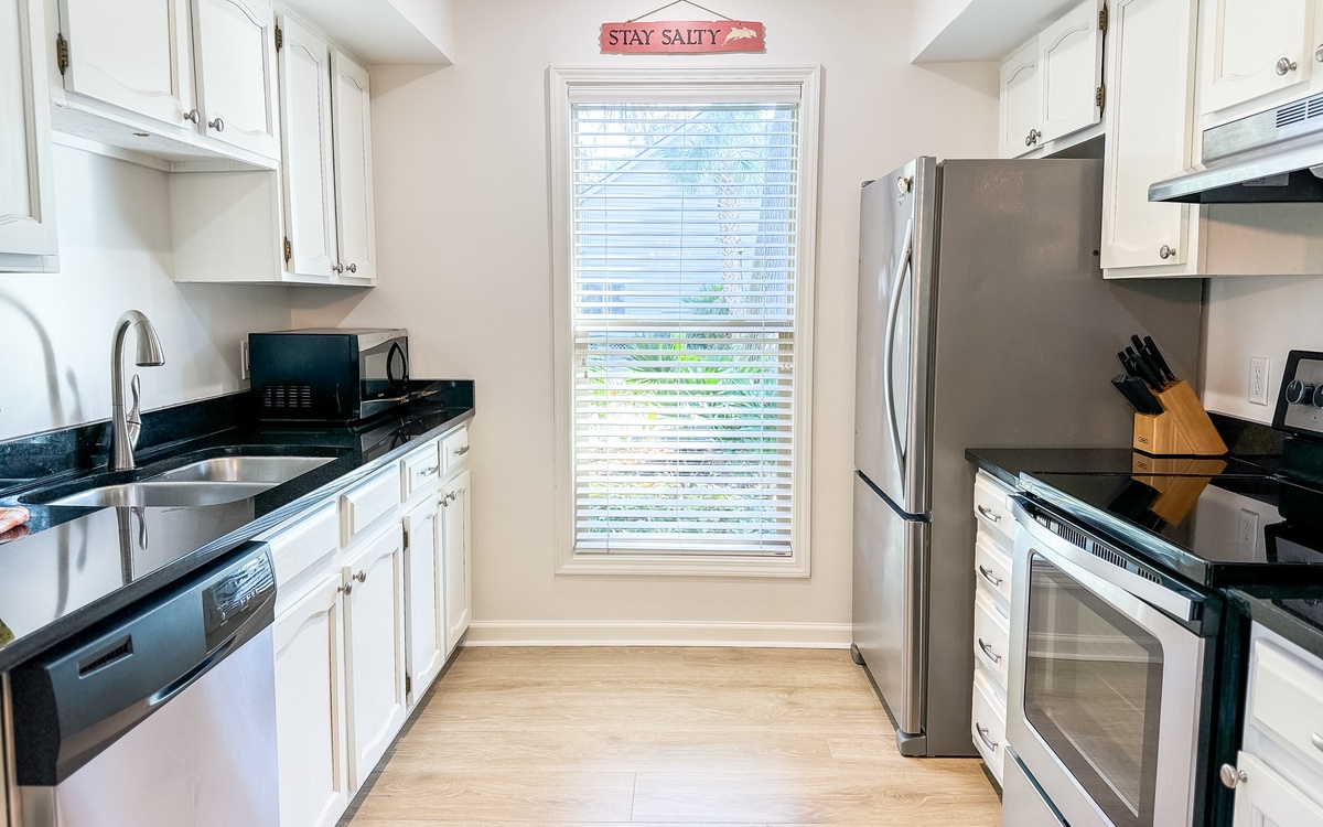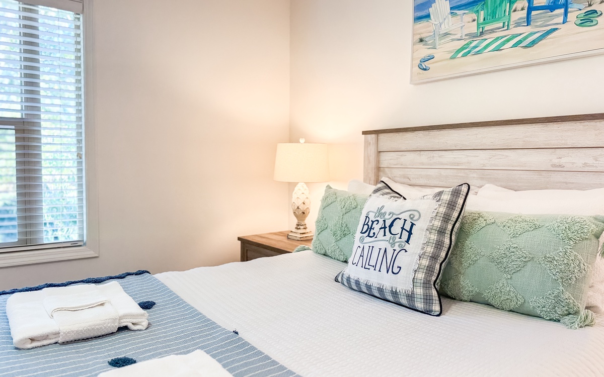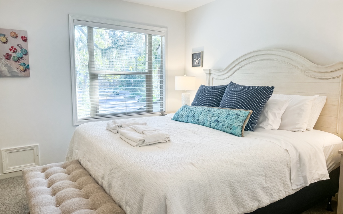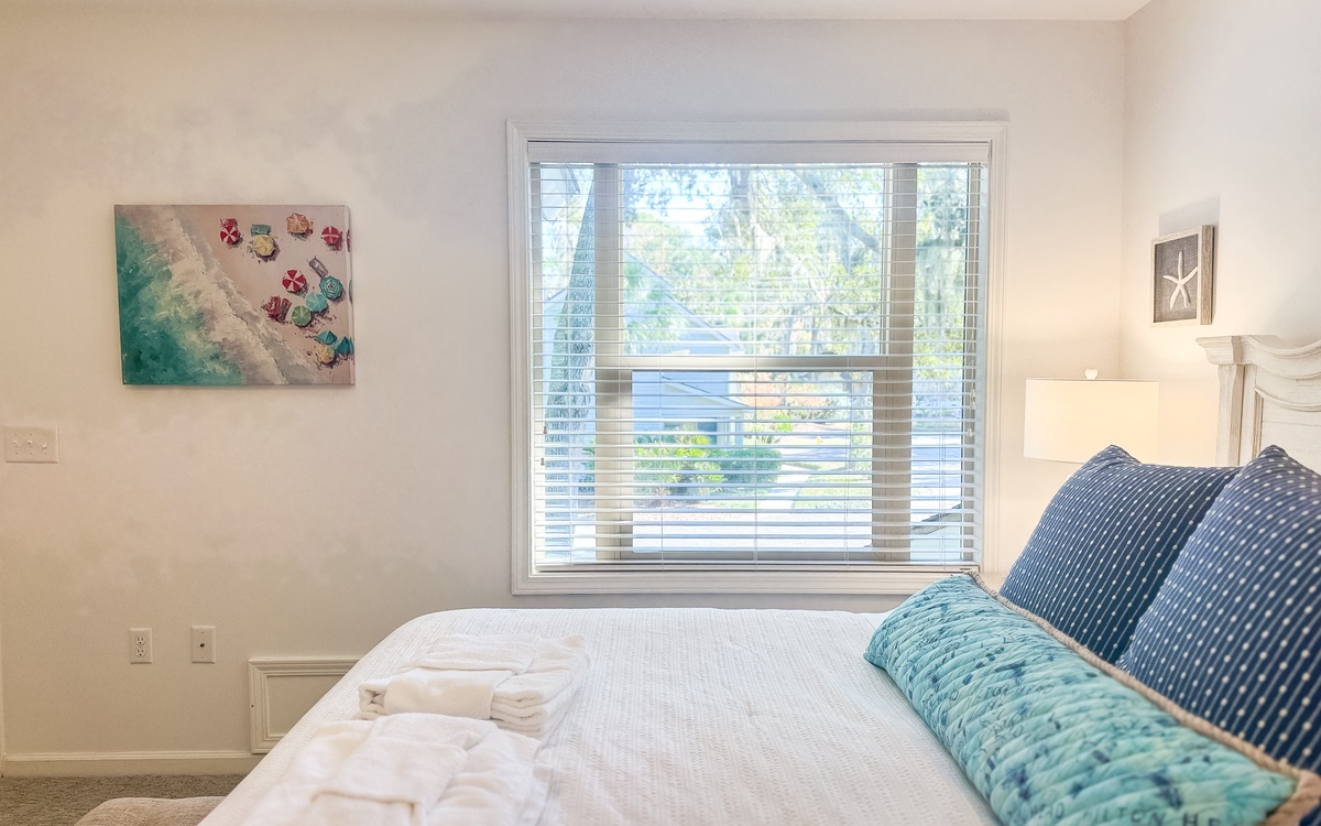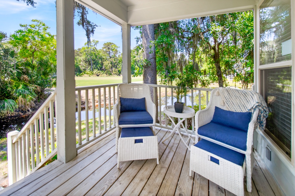 This villa was renovated in 2022 with new flooring and furniture, and the fully equipped kitchen has granite countertops. The living space is spacious, with a new queen sleeper sofa and a Smart Fire TV. The Master bedroom has a TV and a new King bed with an ensuite bath with a walk-in shower. The Guest bedroom has a TV, Queen bed, and ensuite bath. Imagine waking up to breathtaking views of the golf course! This end unit affords privacy and special views of the golf course and landscaping. It has the perfect porch to enjoy your morning coffee. You'll absolutely love your coastal vacation experience here and can't wait to plan your next visit! Book today and experience a vacation reimagined! Enjoy a vacation reimagined with host2coast, your trusted Hilton Head Island Property Management partner.