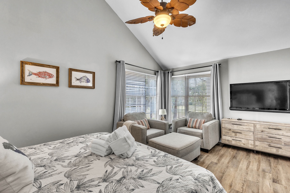 Our stay was wonderful. This unit is extremely clean and current. Good beds and lots of linens. Great kitchen and dining area. Biked everywhere. Had trouble getting cable channels which was the only set back and bbq listed but not available on second floor unit. We could overlook these issues as the unit was very comfortable. Had a great holiday.Patti - Posted: 4/20/2024
