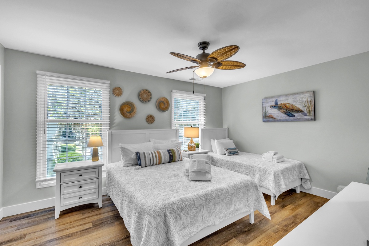- Bedroom 2: 1 Full bed and 1 Twin bed, with closet and on-suite bathroom