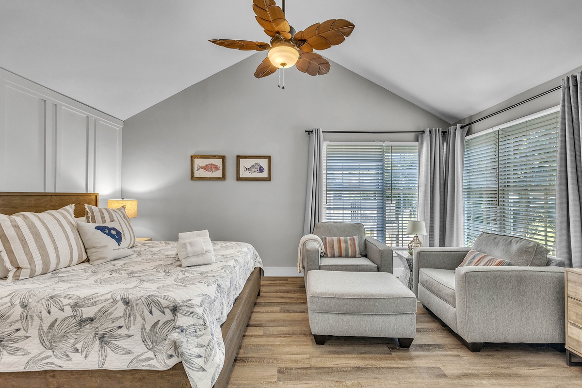 Welcome to 231 Evian—a newly remodeled 2-bedroom, 2-bath villa, with a balcony overlooking one of Shipyard’s golf courses and steps from the beach and pool.
