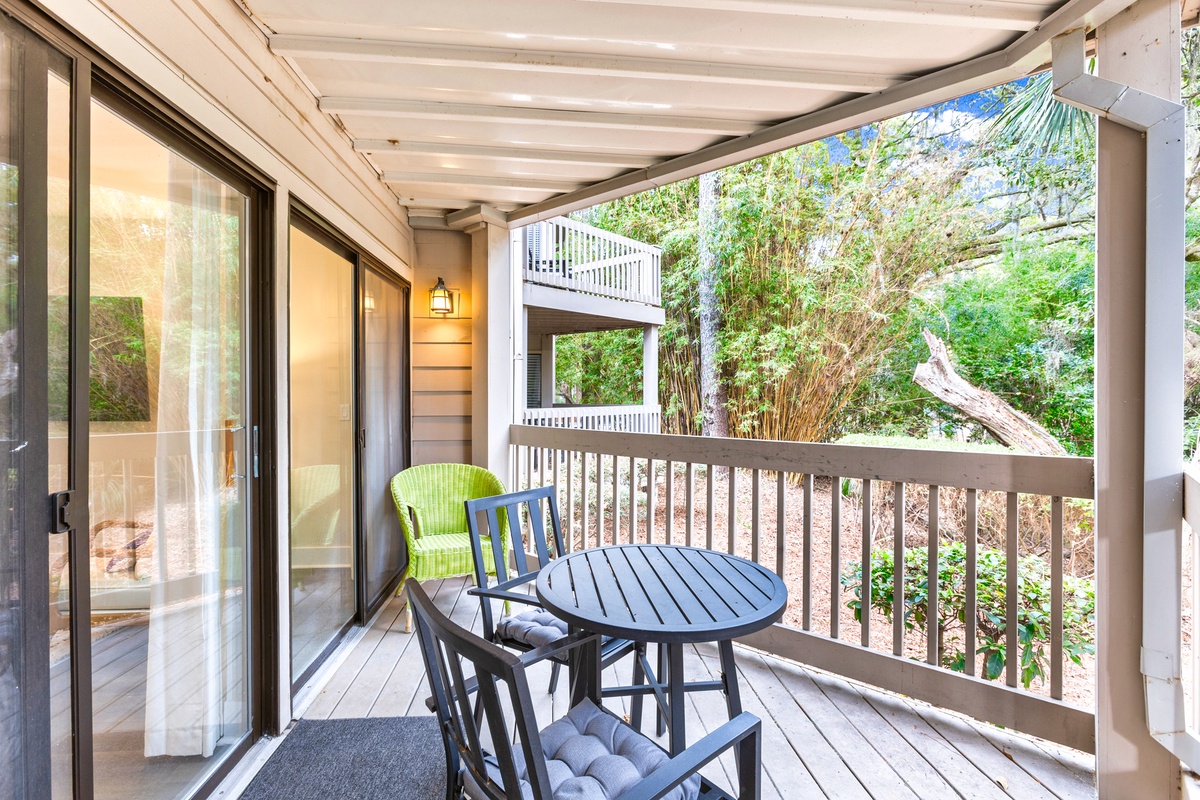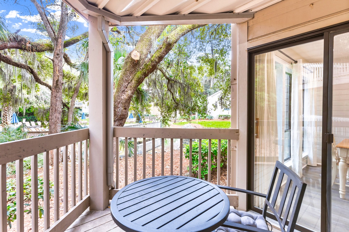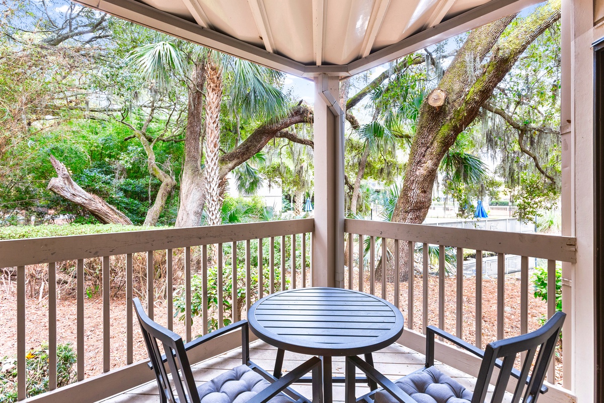 Step outside onto the private balcony and enjoy tranquil views of the surrounding Lowcountry landscape, with glimpses of the community pool adding to the vacation feel. Whether you start your morning with coffee under the trees or end the evening with a quiet moment in the coastal breeze, this space enhances every stay. 2376 Lighthouse Tennis Villas offers the perfect blend of location, comfort, and charm for a memorable stay! Enjoy a vacation reimagined with host2coast, your trusted Hilton Head Island Property Management partner.