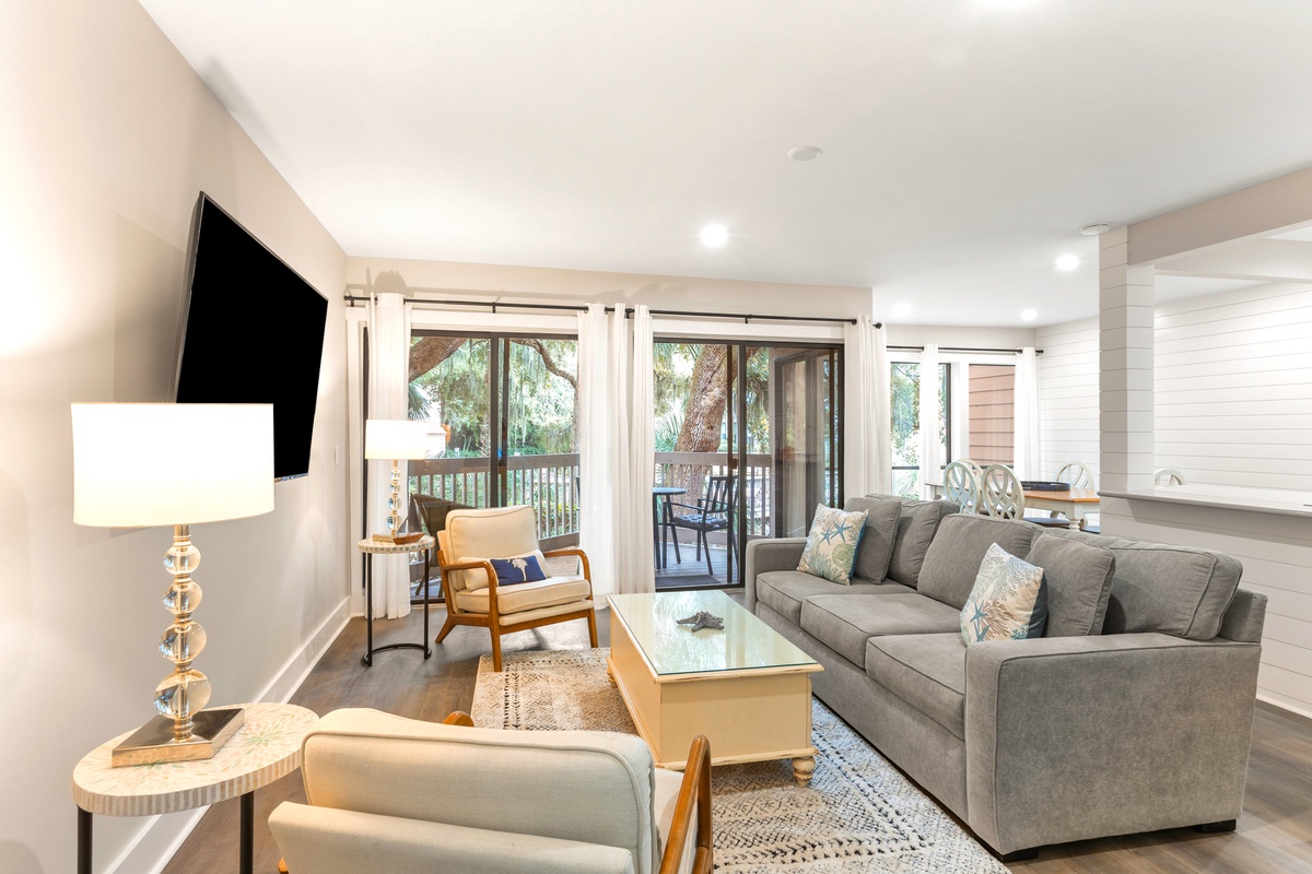 Tucked beneath sweeping live oaks and classic Lowcountry palms, 2376 Lighthouse Tennis Villas immediately draws you in with its serene setting and coastal charm. This beautifully updated villa offers a welcoming first impression, from the private covered balcony surrounded by greenery to the bright interiors filled with natural light. The community pool nearby adds to the resort style atmosphere, inviting you to slow down and settle into vacation mode. Located in the heart of Hilton Head Island, this short term rental places you close to everything while still feeling peaceful and private!